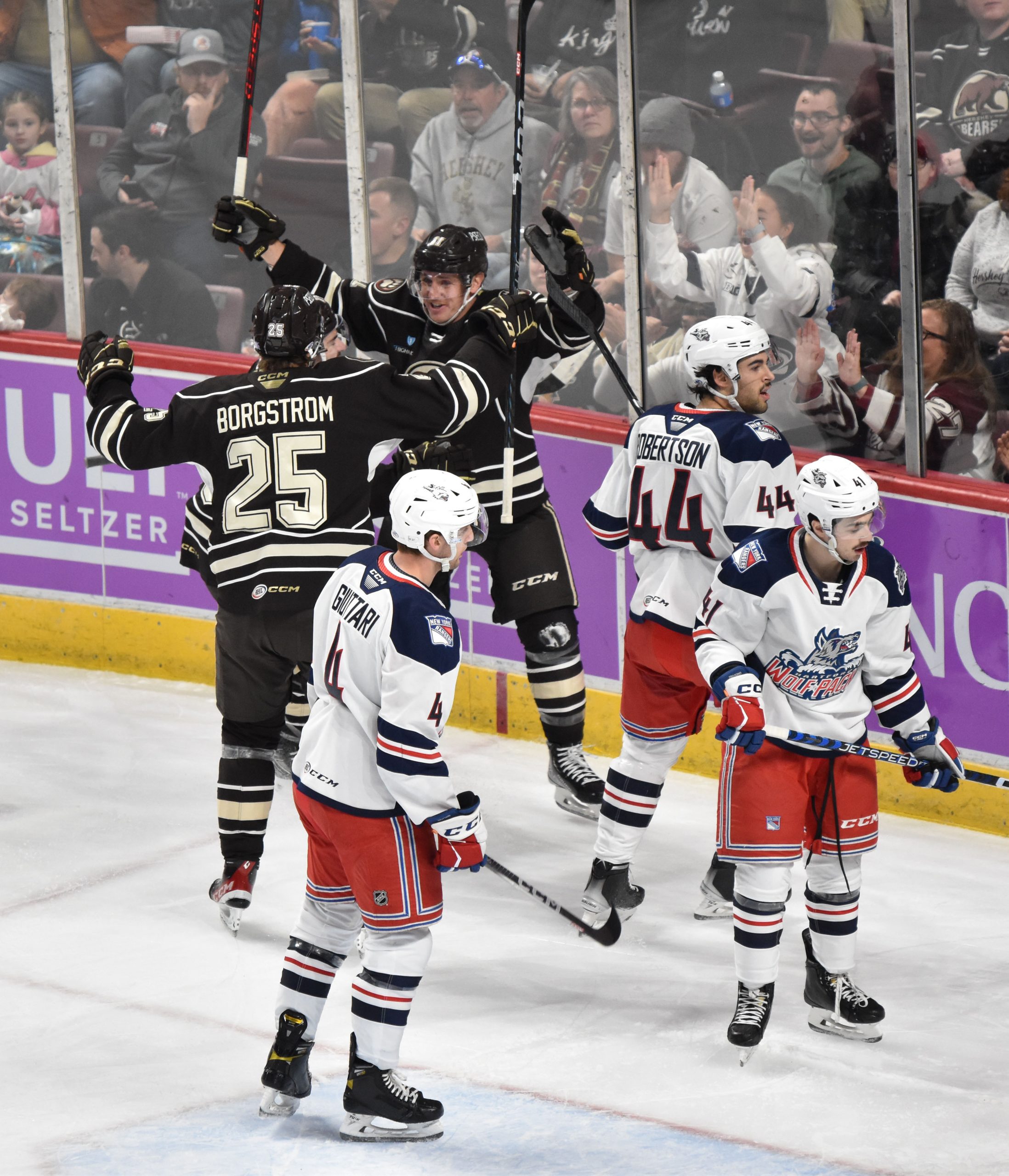 The line of Mason Morelli, Henrik Borgstrom and Garrett Pilon drove the offense for the Hershey Bears (9-3-2-0) in the first period on Saturday night, as each forward scored a goal and assist in the opening frame, while Sam Anas celebrated his 100th pro goal with a strike in the second period as the Chocolate and White established a new season-high for goals in an eventual 6-1 victory over the Hartford Wolf Pack (4-5-1-3) at GIANT Center.