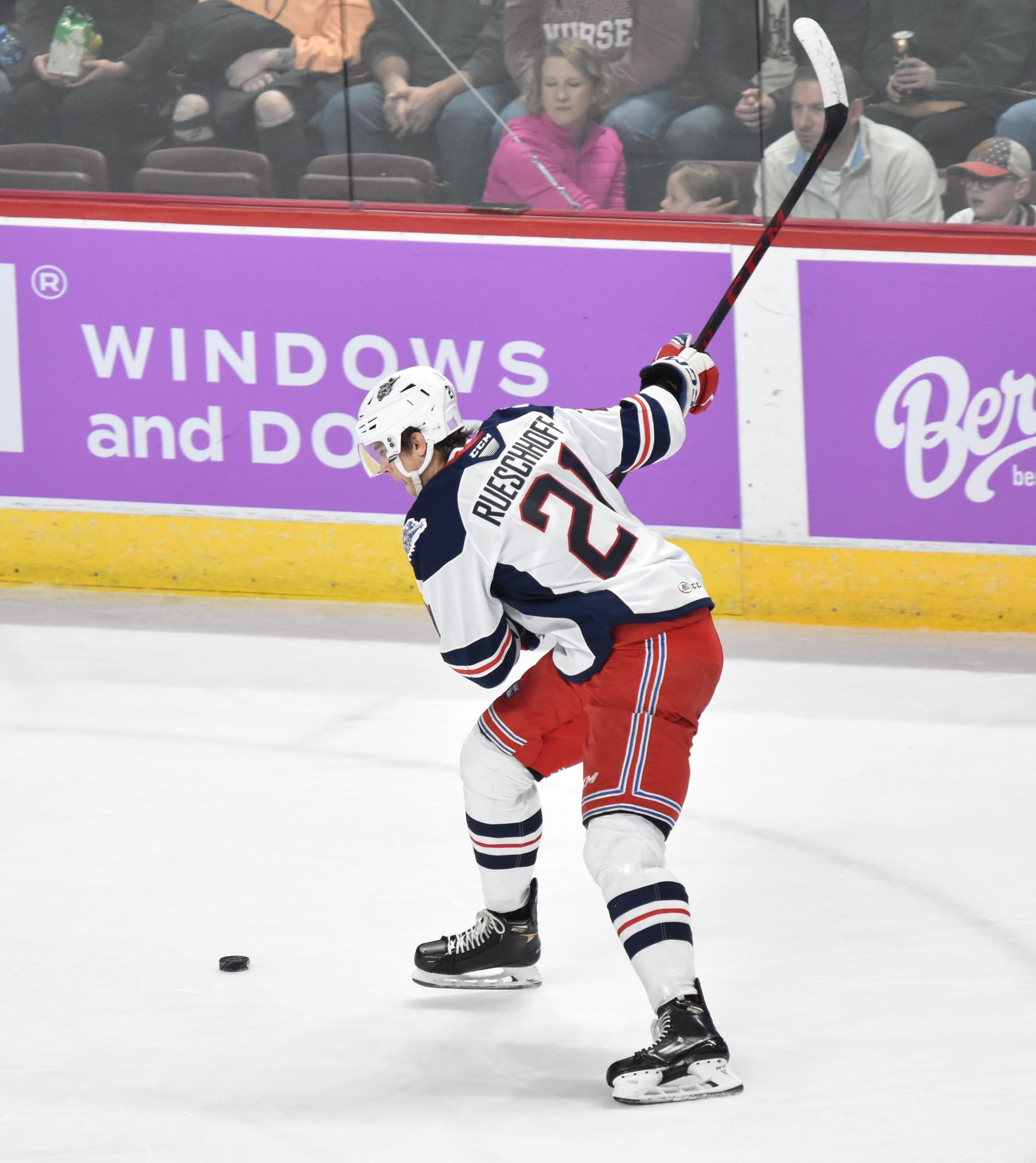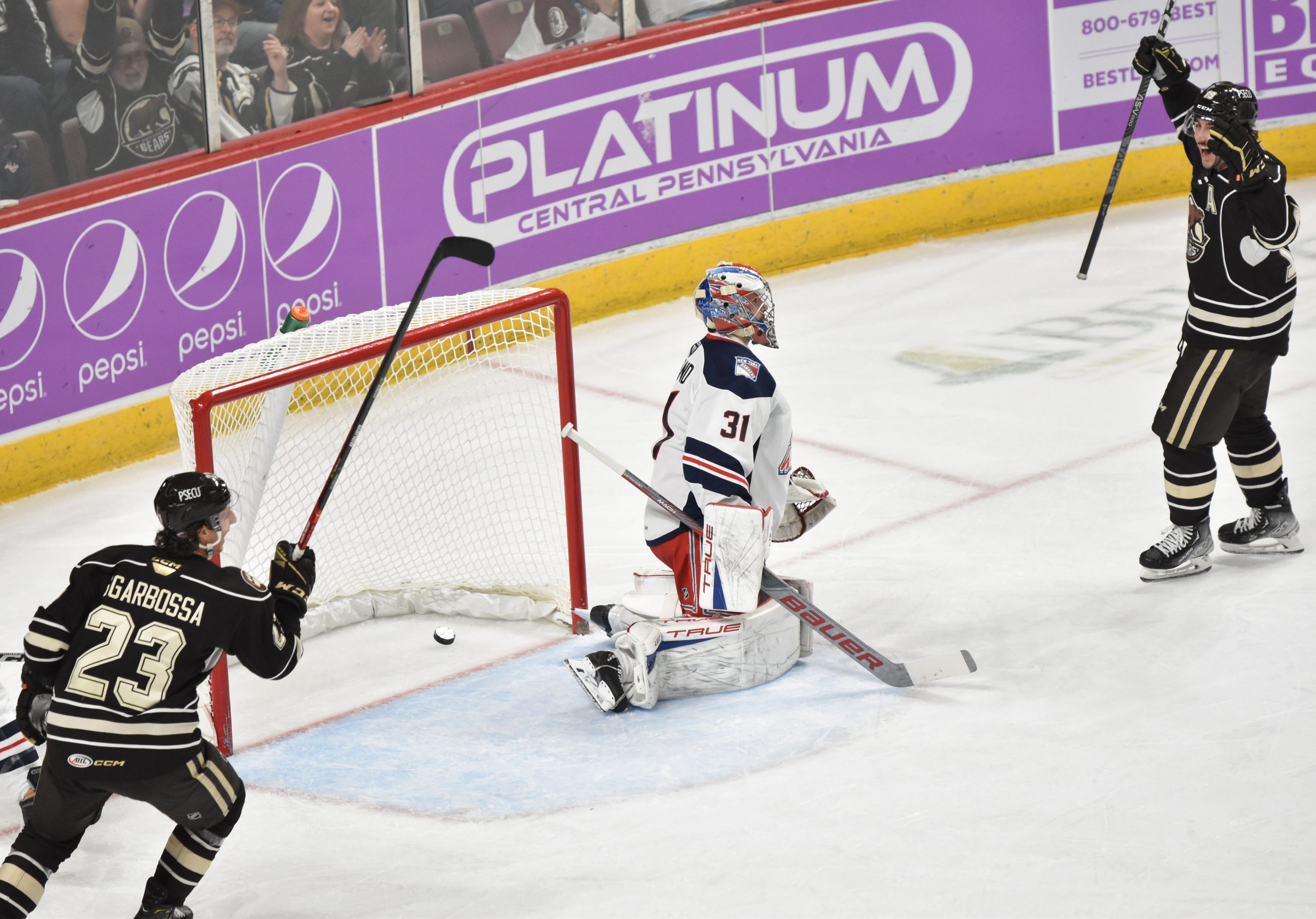The Bears made it 6-1 at 19:46 when Hendrix Lapierre buried a Dylan McIlrath rebound that briefly went to video review when it appeared Garand got a piece of Lapierre’s shot with the paddle of his goalie stick, but it was confirmed that the puck had fully crossed the goal line, giving the Bears rookie his fourth of the season. Shane Gersich added the secondary helper.