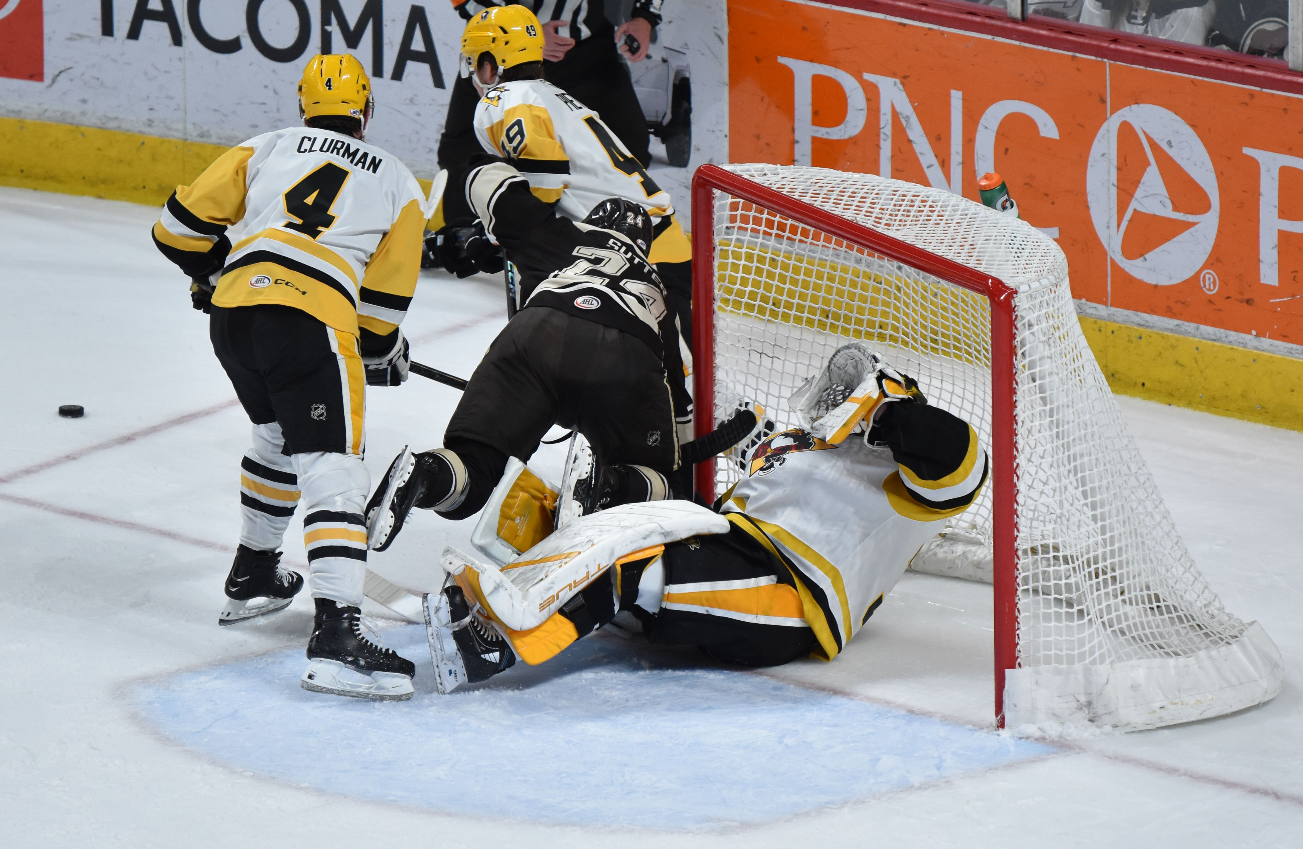 The Penguins maintained pressure in the offensive zone with their goalie pulled for an extra attacker, but after a handful of key shot blocks, Hershey’s Matt Strome fluttered a backhander into the empty cage to conclude the night’s scoring.