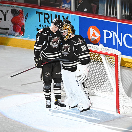 A pair of goals late in the second period propelled the Hershey Bears to a 2-0 victory over the Rochester Americans in Game 2 of the Eastern Conference Finals on Thursday night at Giant Center.