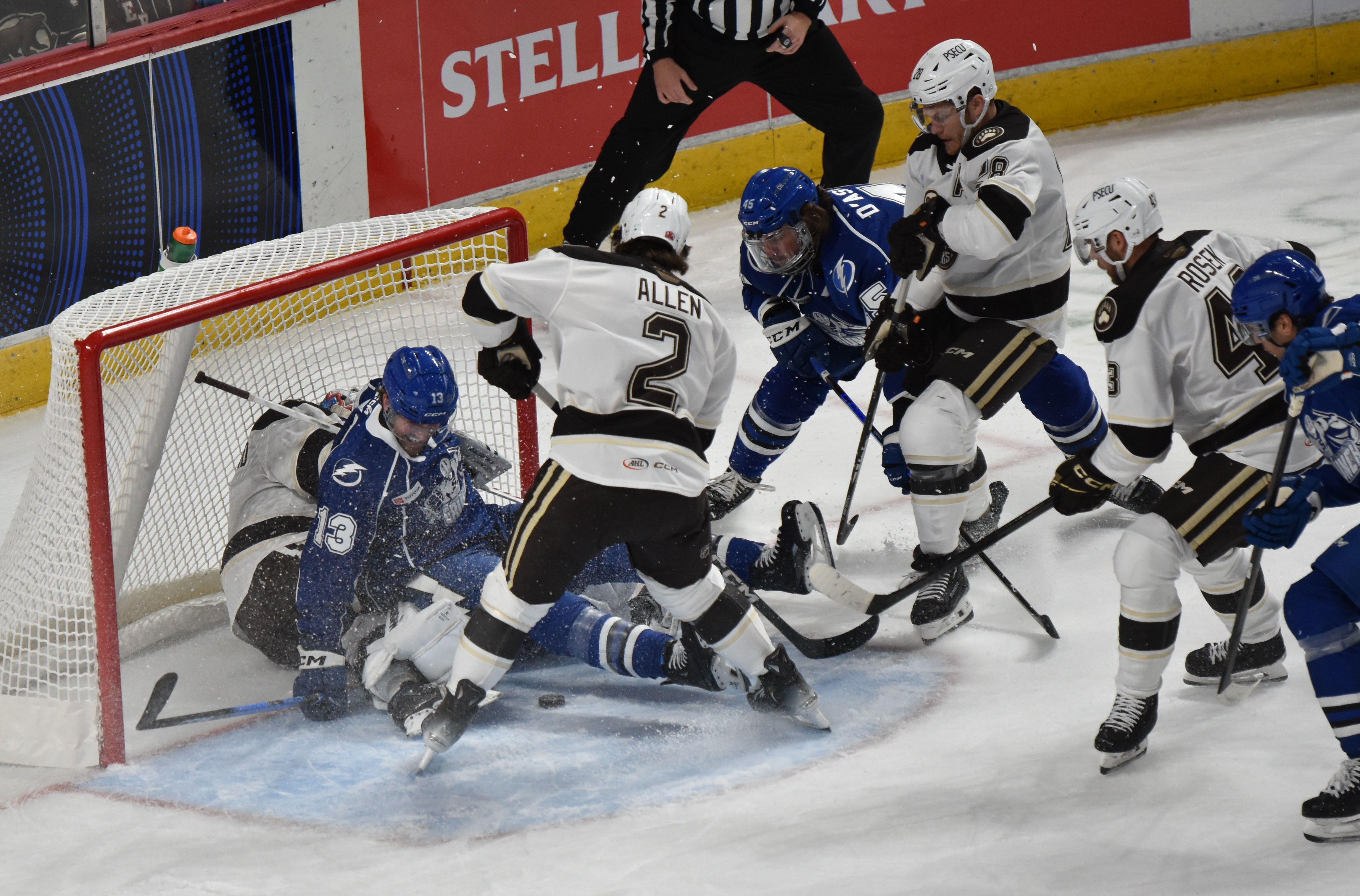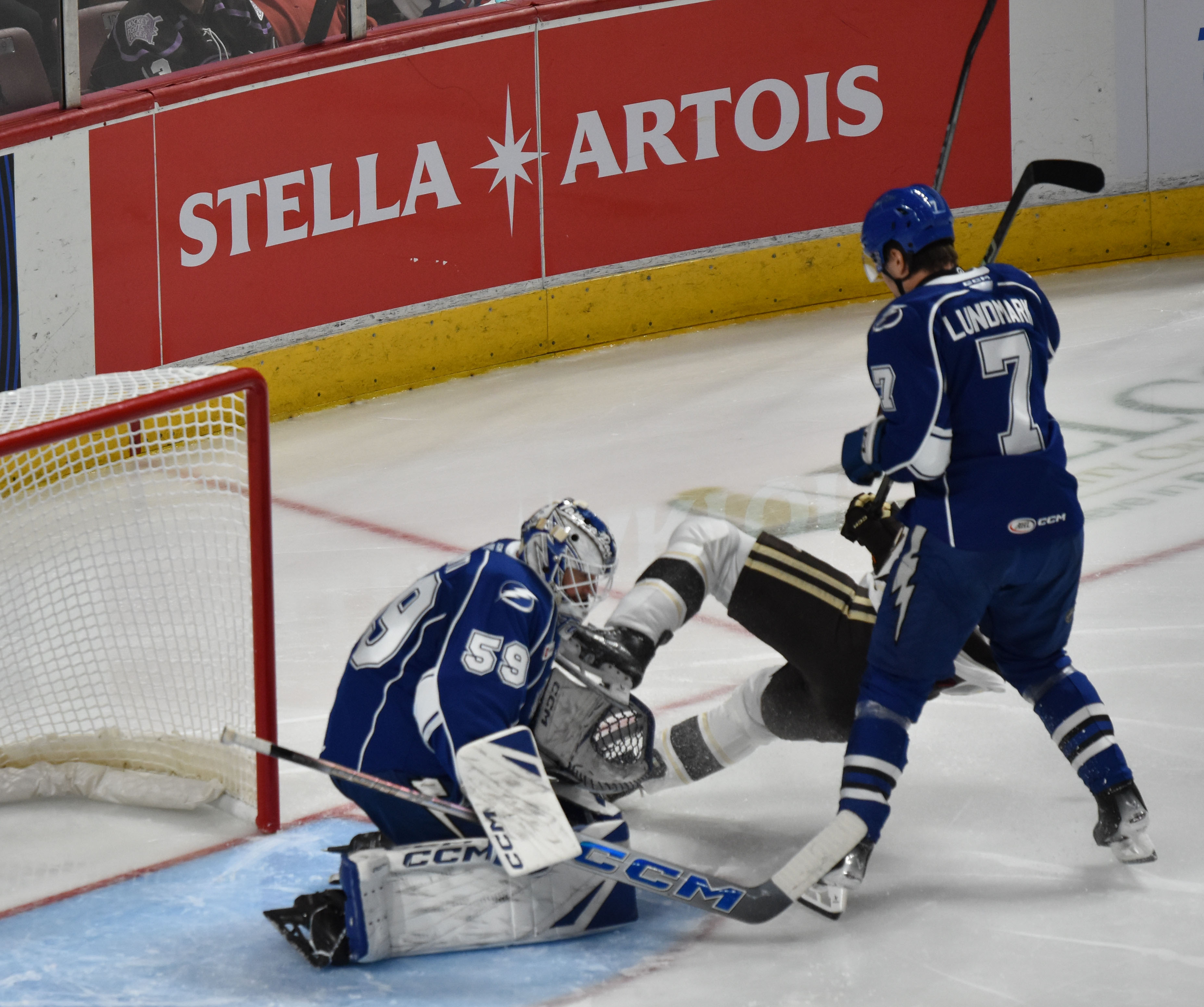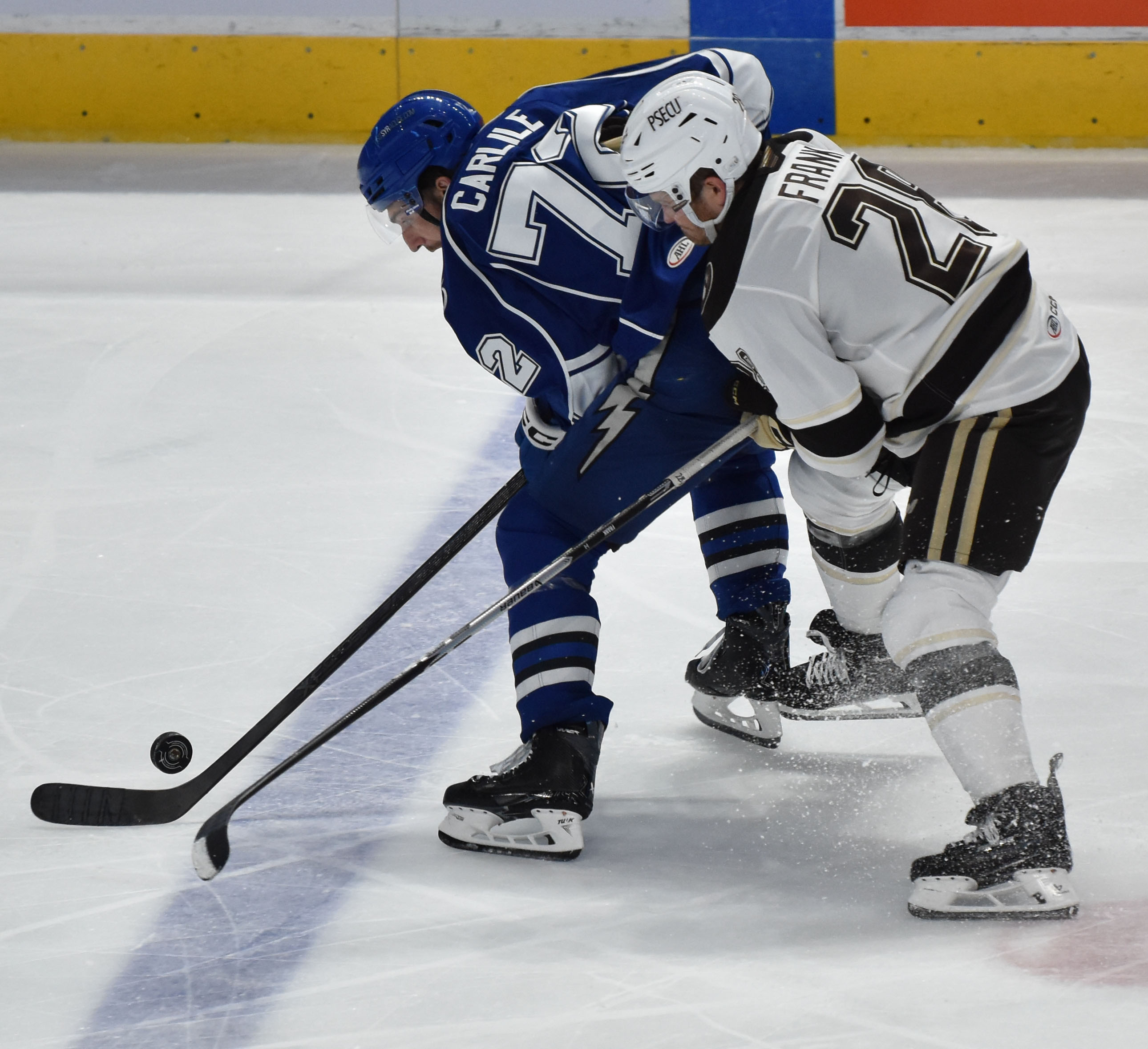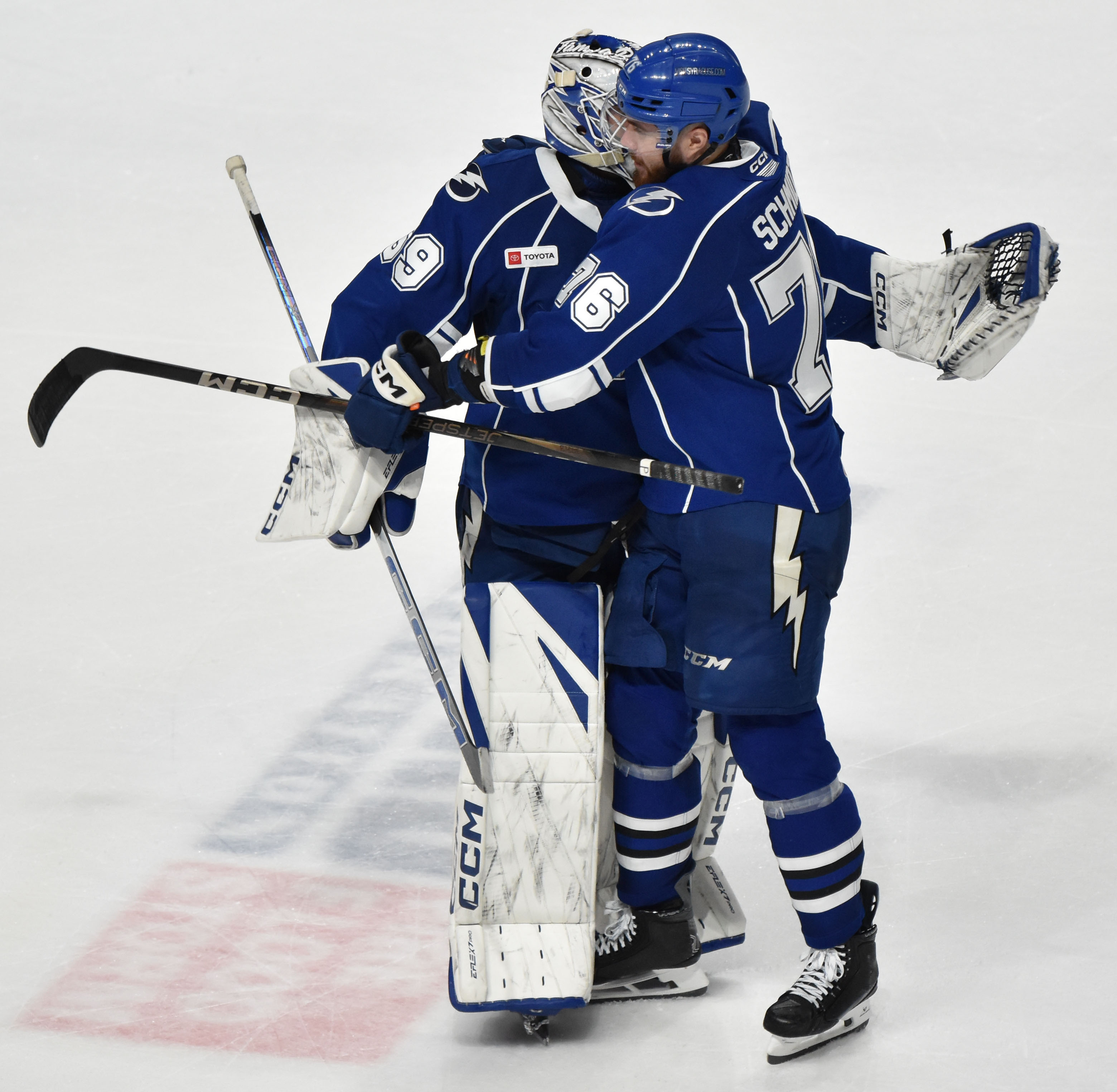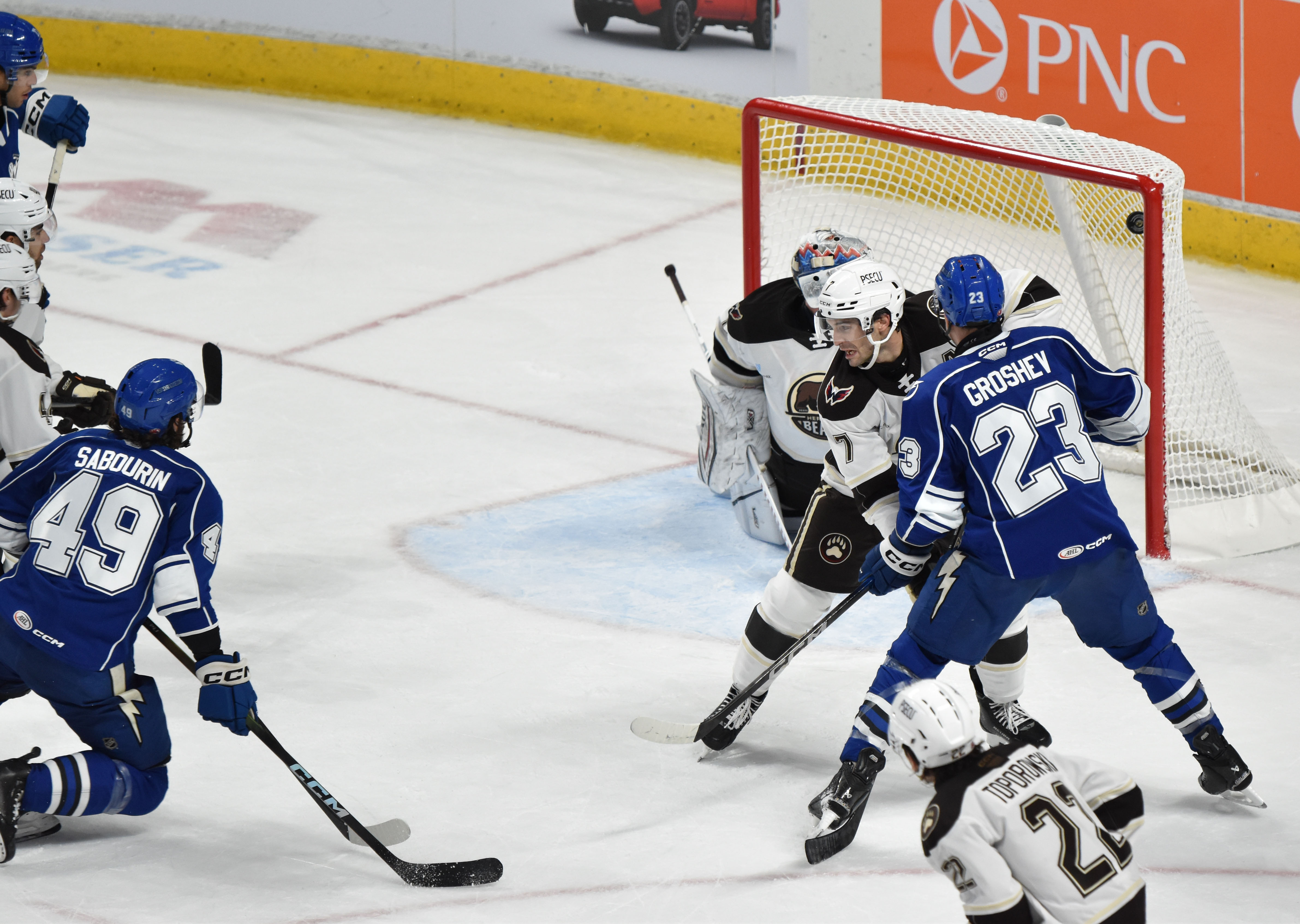 - Syracuse’s Scott Sabourin cut Hershey’s 2-0 lead in half at 14:52, and Declan Carlile knotted the game at 2-2 at 16:46 of the third to force the game to overtime. Dominic James scored at 1:17 of overtime to give the Crunch the win.