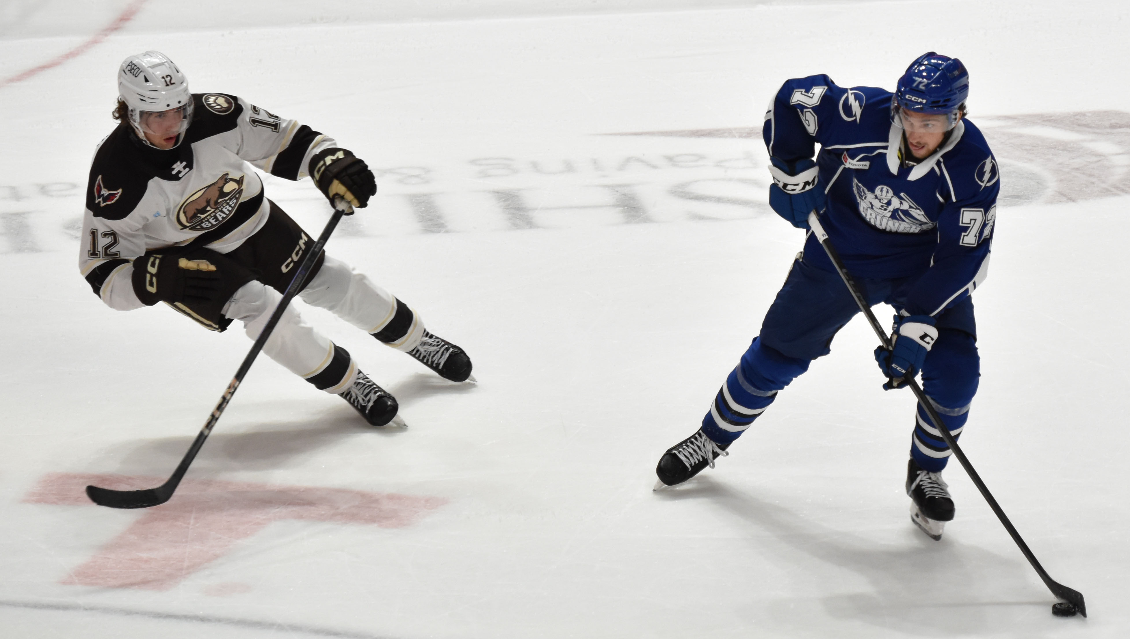 Bogdan Trineyev and Graeme Clarke scored, but the Hershey Bears (0-1-1-0) saw a 2-0 lead erased in regulation and fell 3-2 in overtime to the Syracuse Crunch (2-0-0-0) on Sunday evening at GIANT Center.