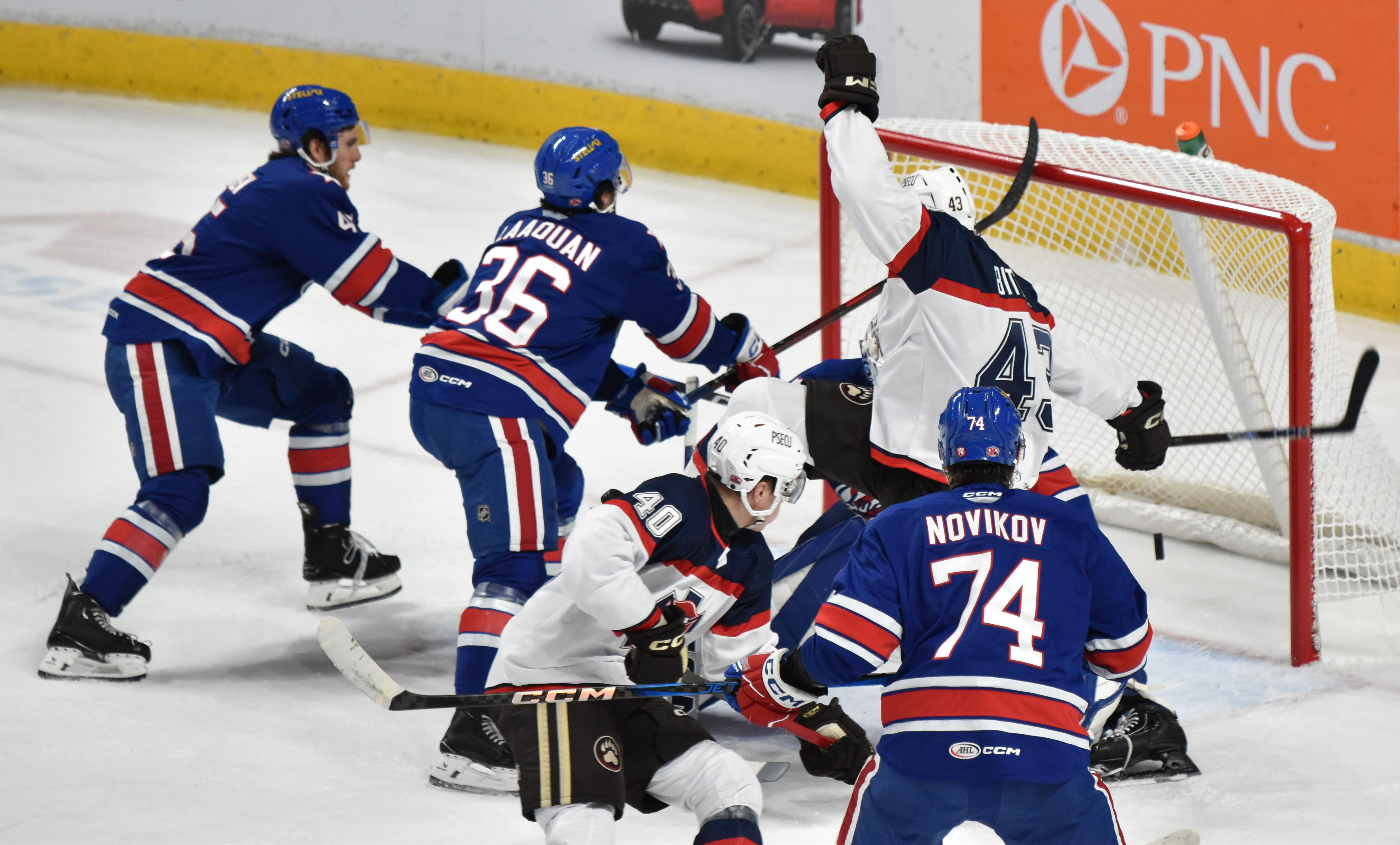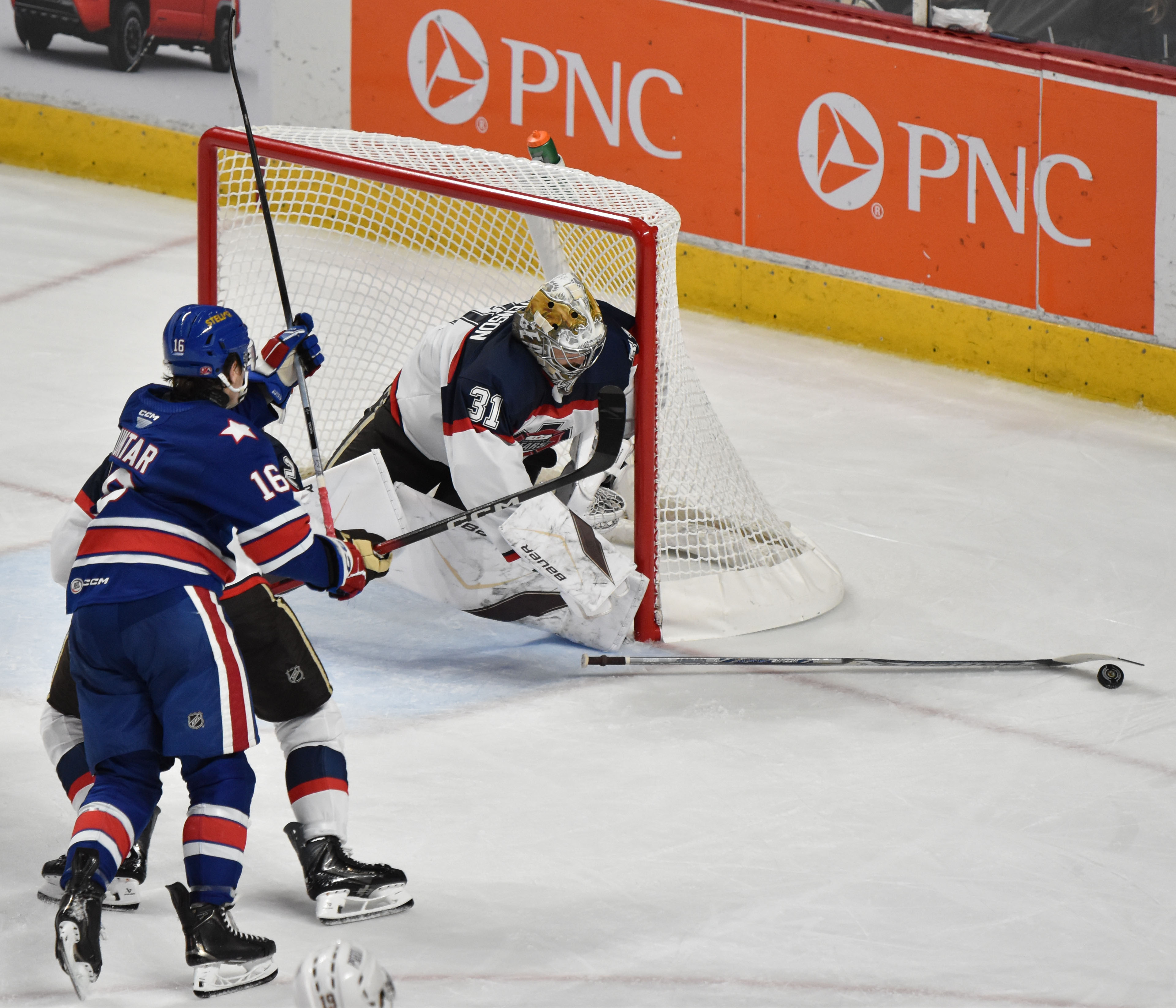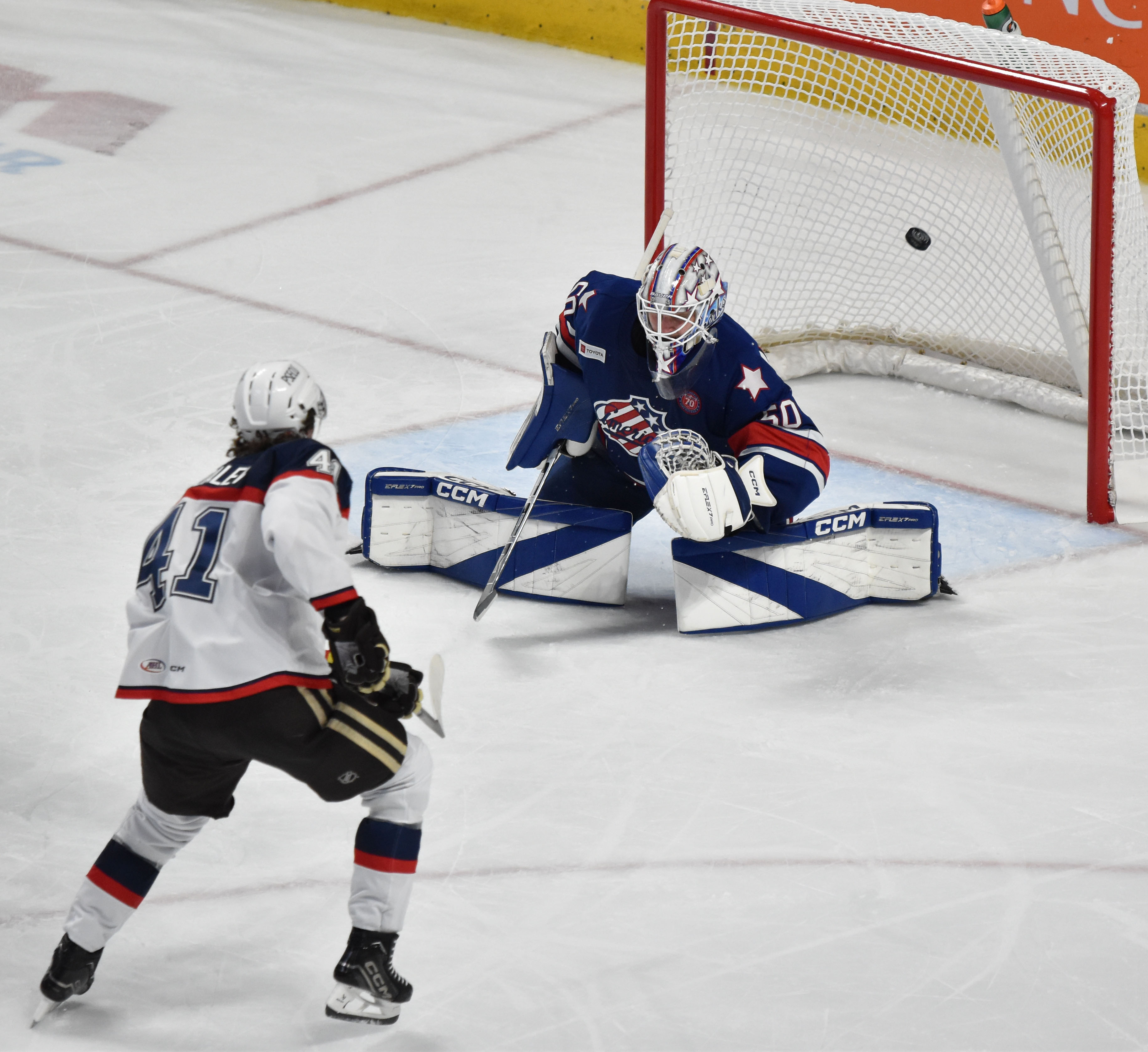 GOALTENDING: HER – Clay Stevenson, 22-for-23; ROC – Topias Leinonen, 19-for-21