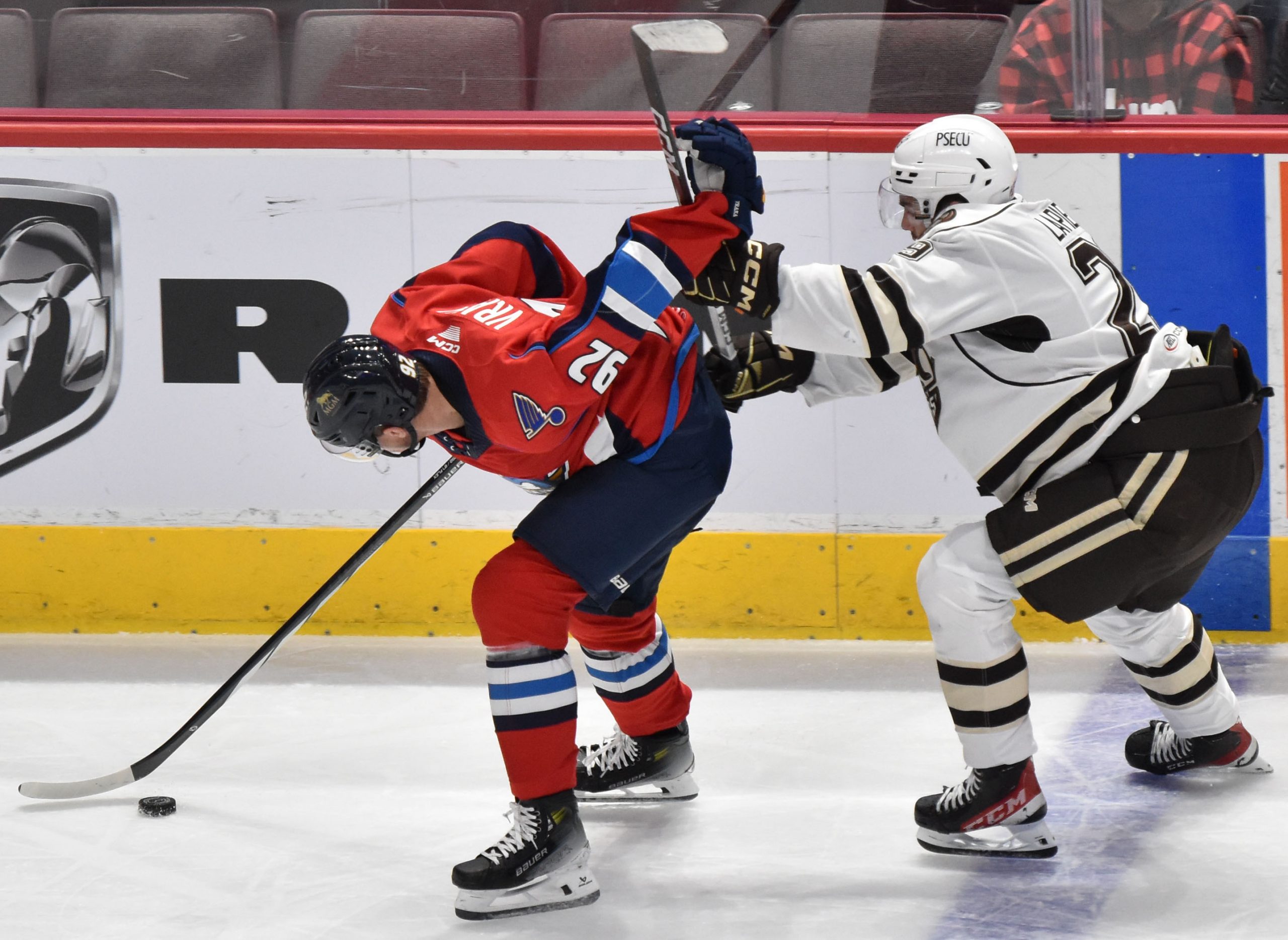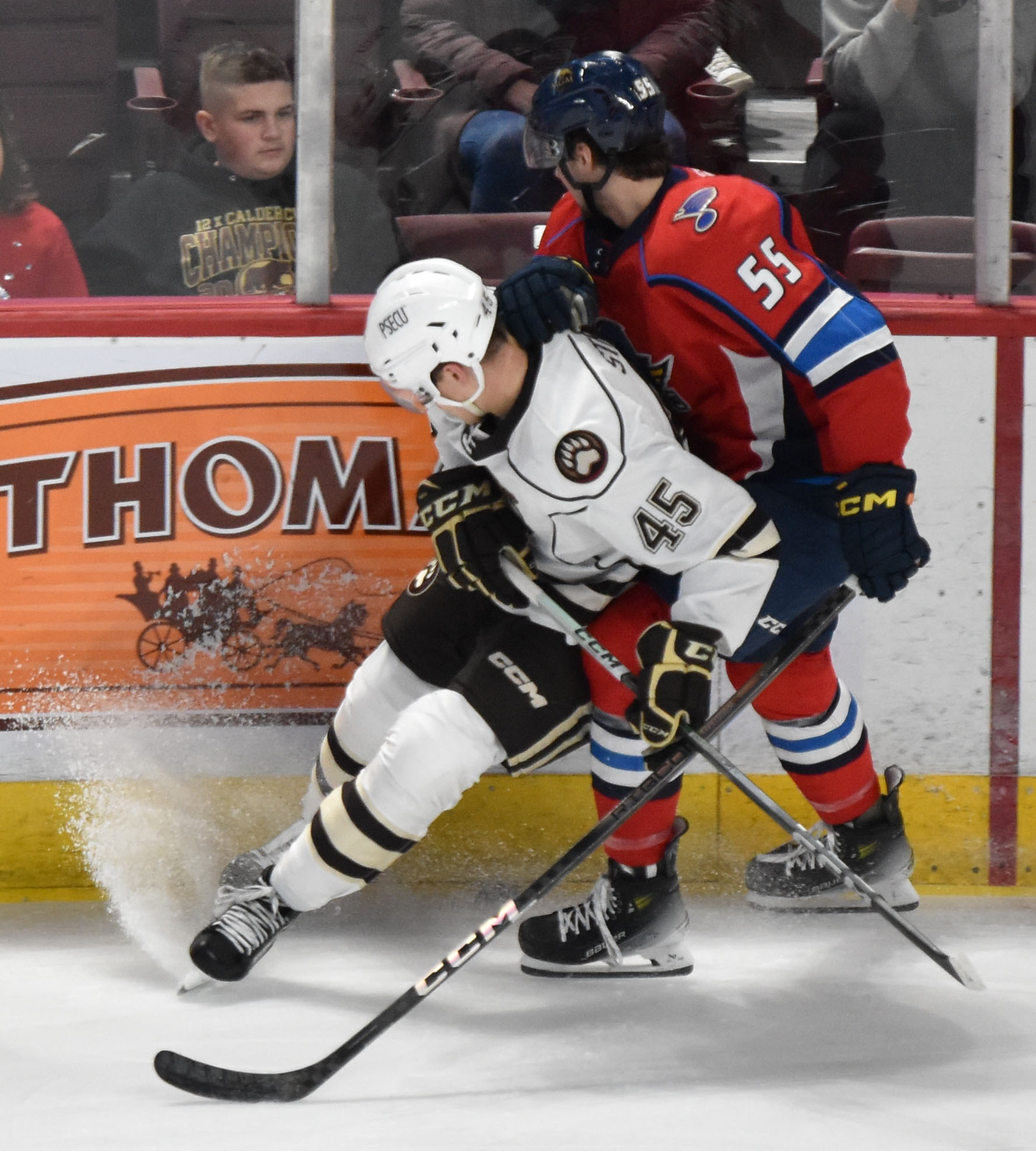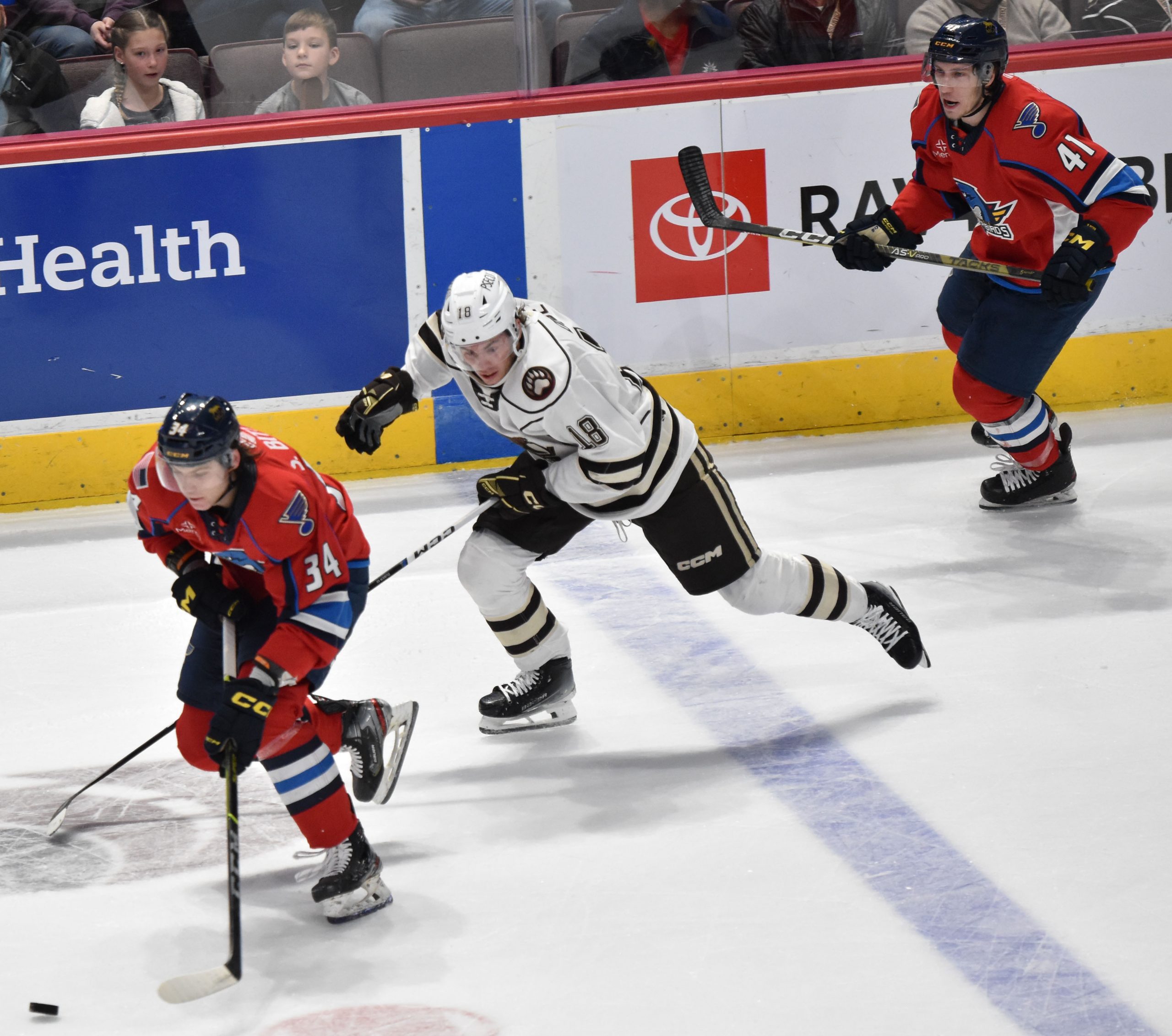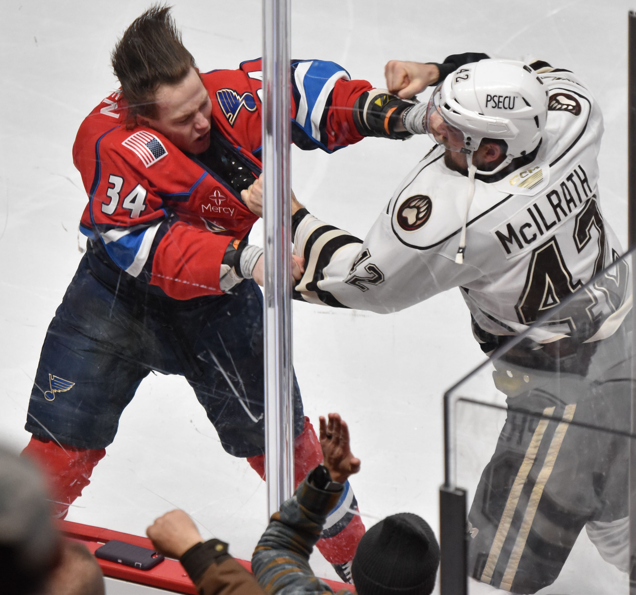 The first period began with a spirited bout between Bears captain Dylan McIlrath and Thunderbirds forward Sam Bitten at 3:21 that lasted for over half a minute before McIlrath knocked Bitten down to the left of the Hershey bench.