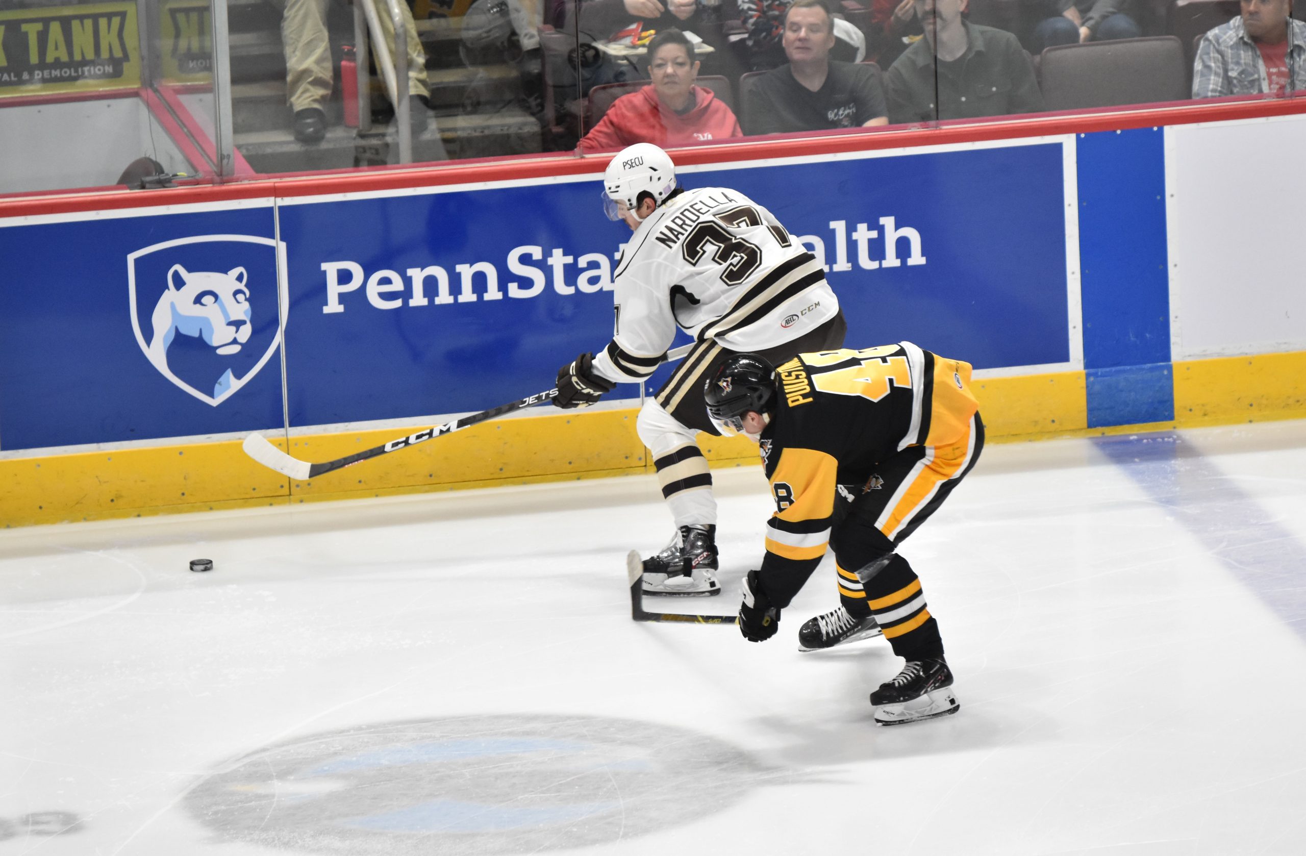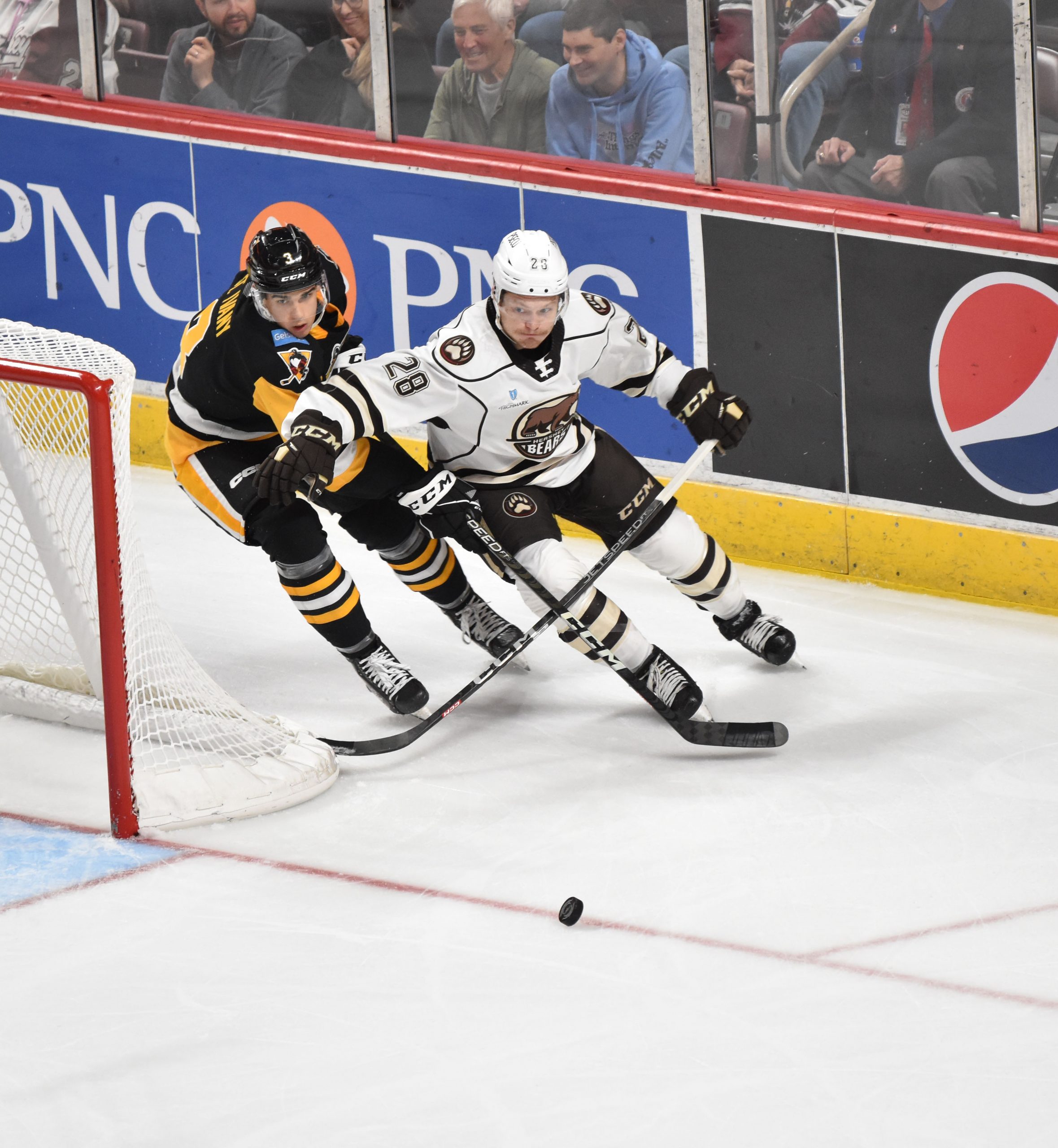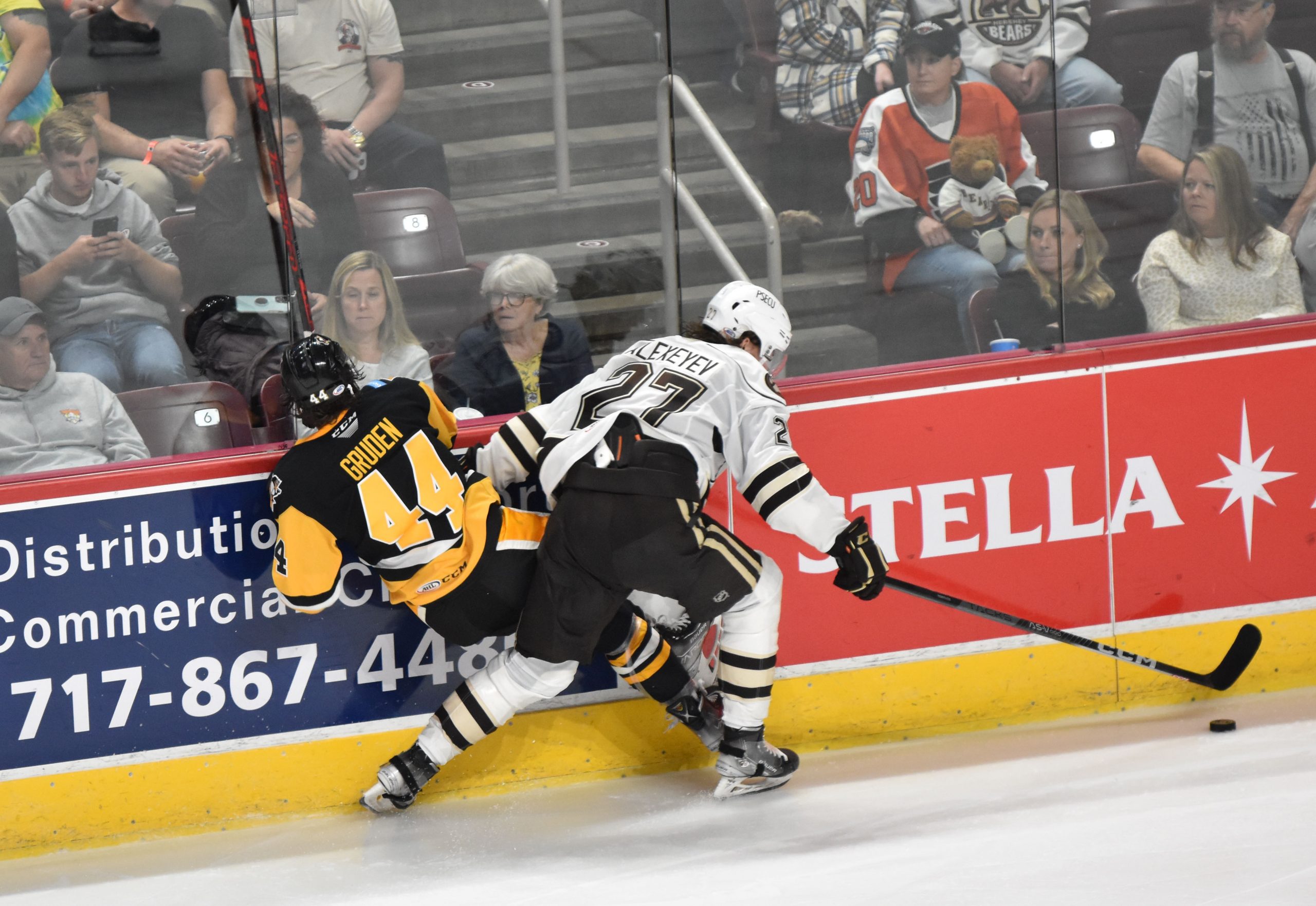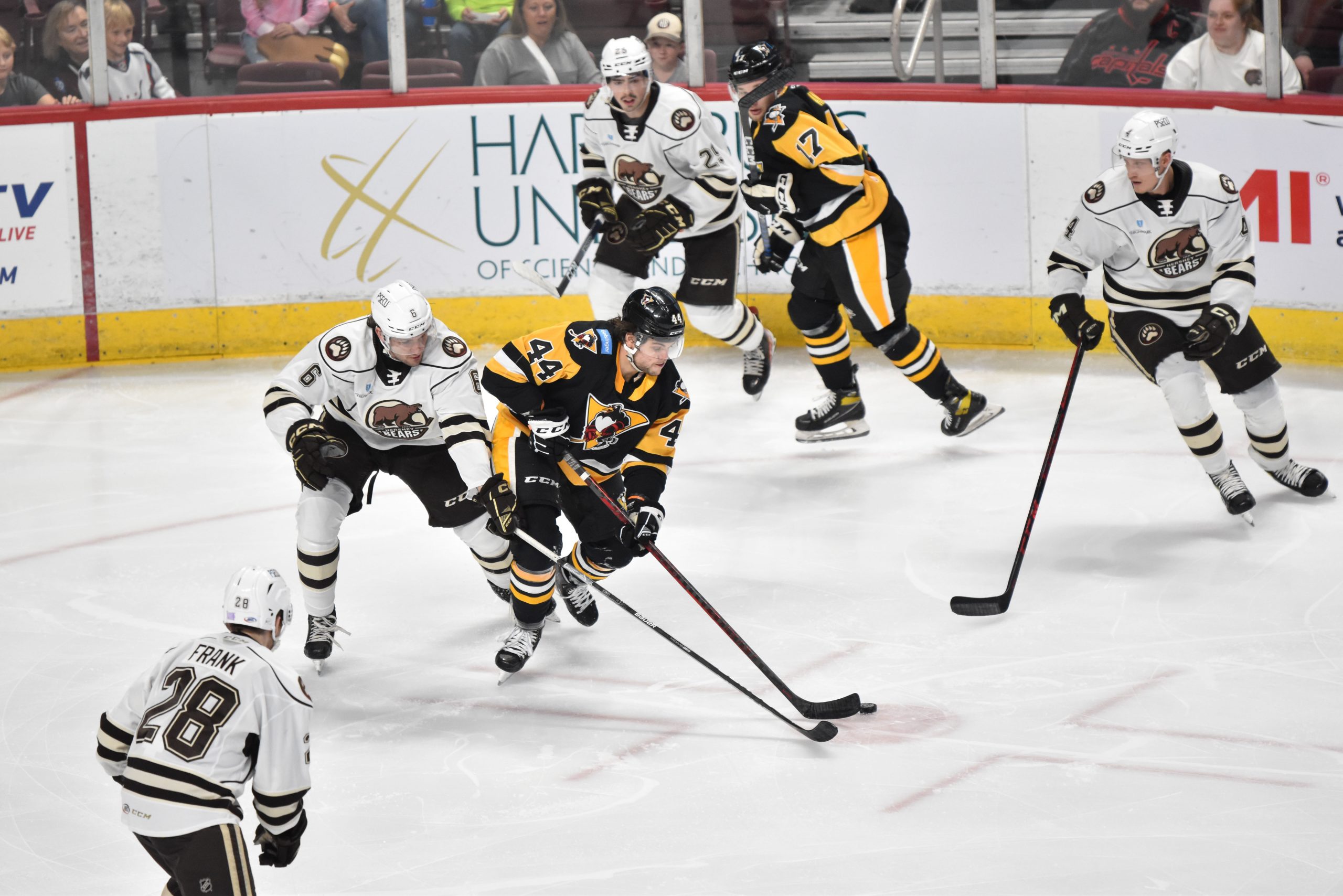The Bears drew first blood in the opening period when Shane Gersich intercepted a pass in the Wilkes-Barre/Scranton zone and snapped the puck past Filip Lindberg at 12:54 for his first of the season.
