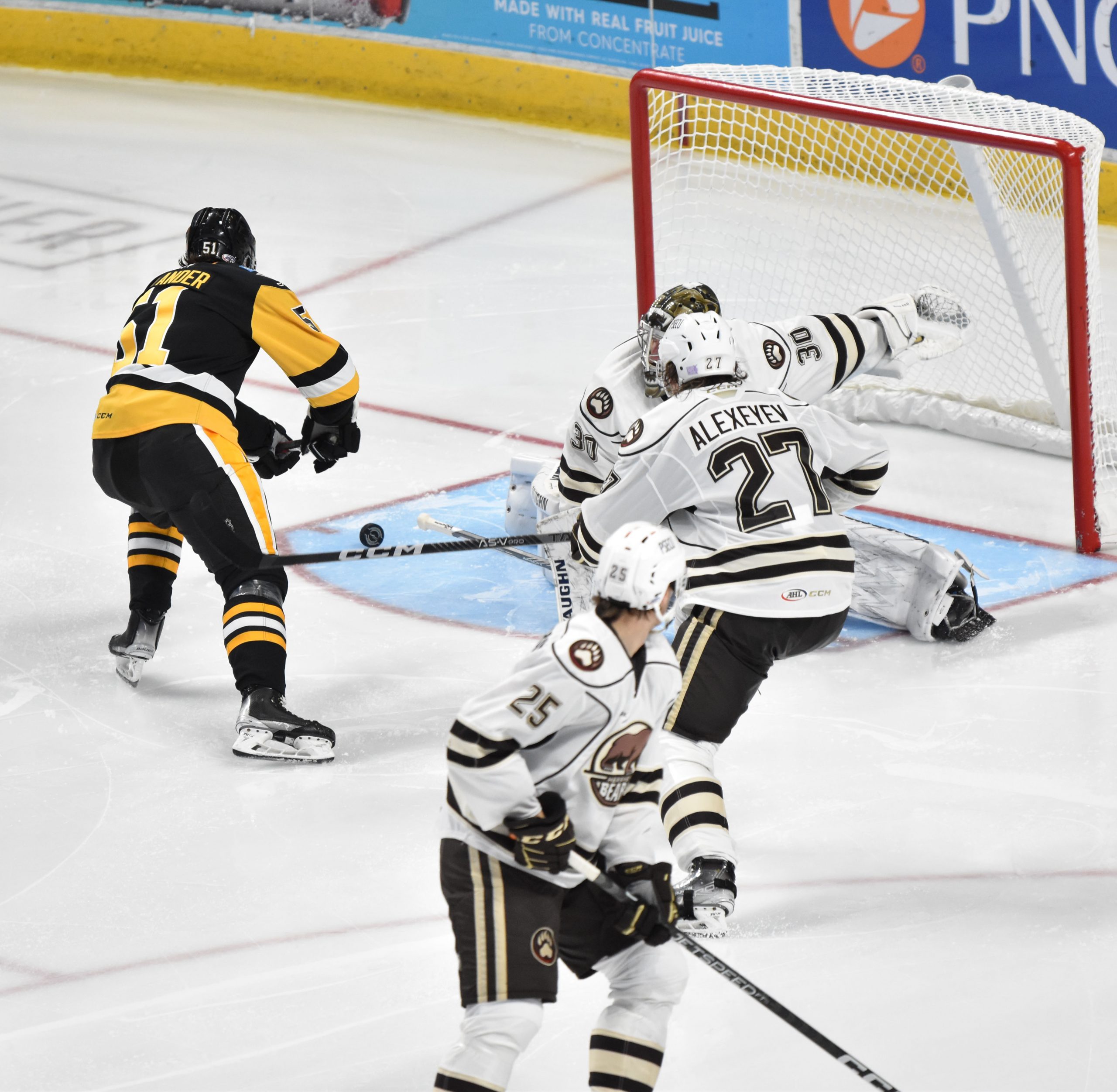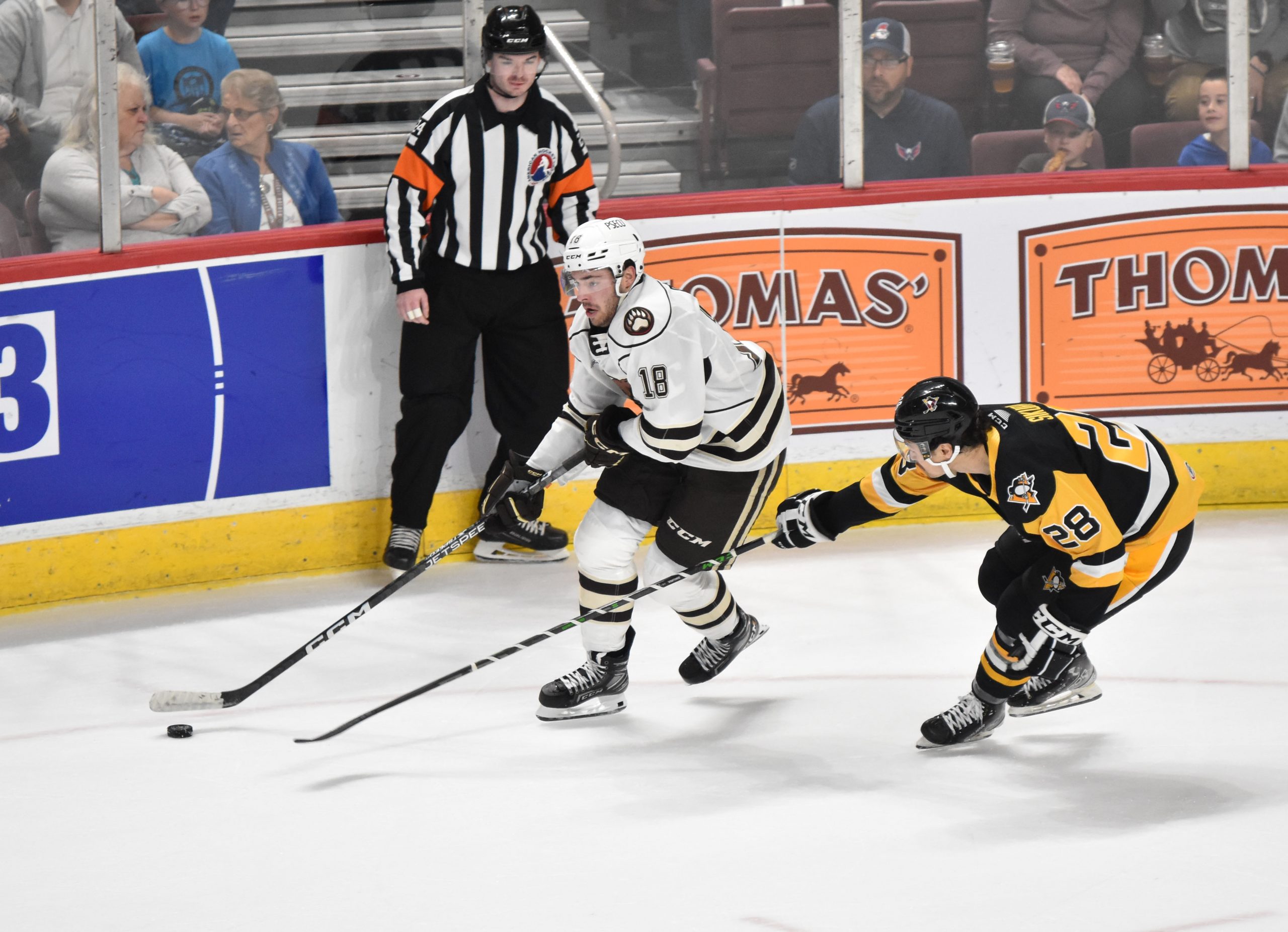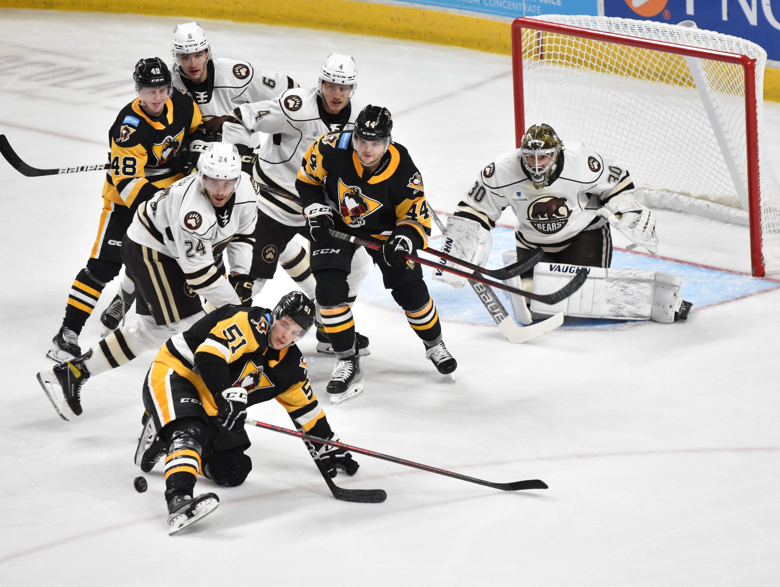 With a late power play and Lindberg pulled to create a 6-on-4 man advantage for the Penguins, Hallander netted his second of the evening and collected his third point of the night after knocking in a rebound from Valtteri Puustinen at 18:38 to bring the Penguins to within one of the Bears, who ultimately held on for the win.