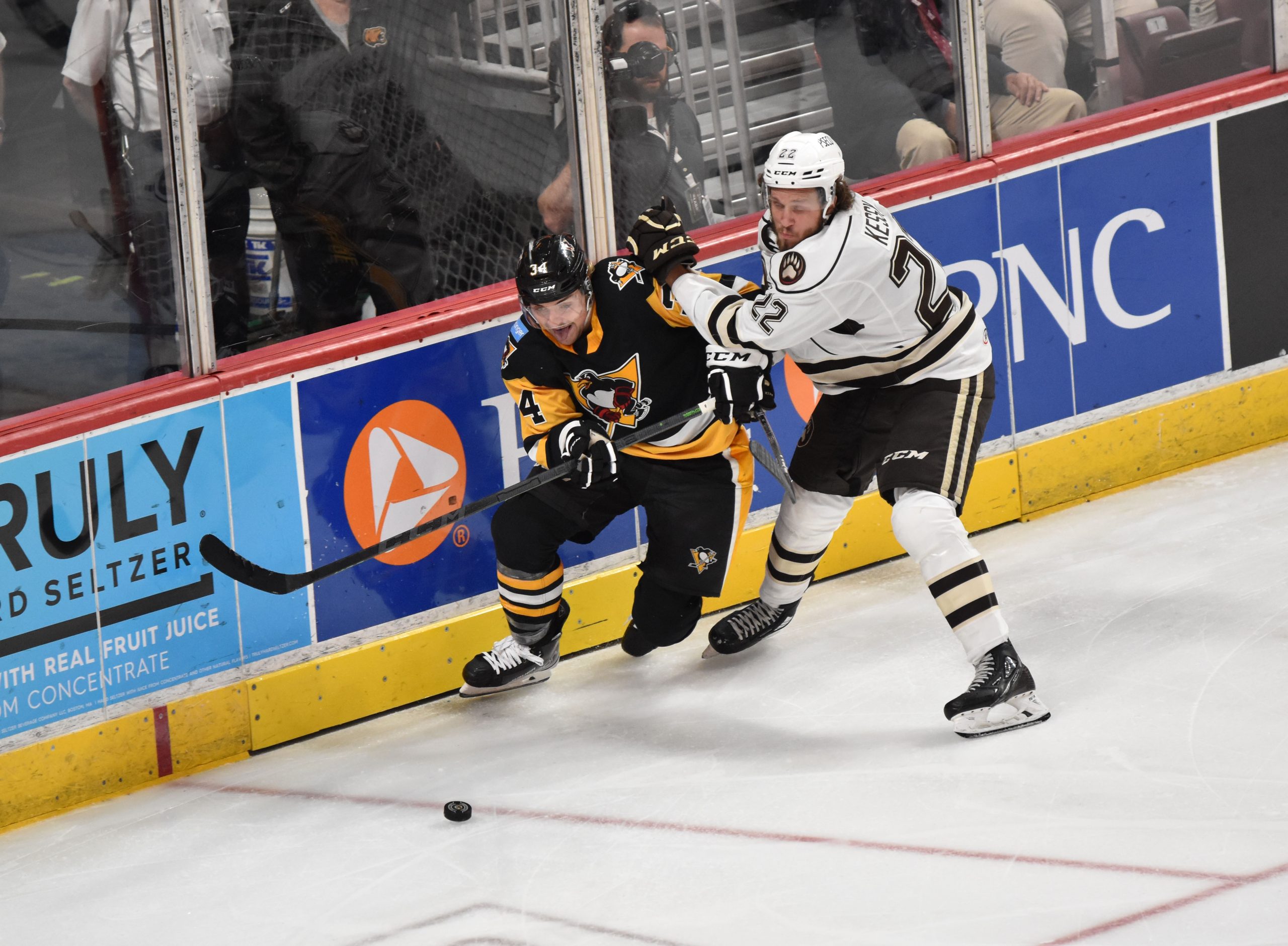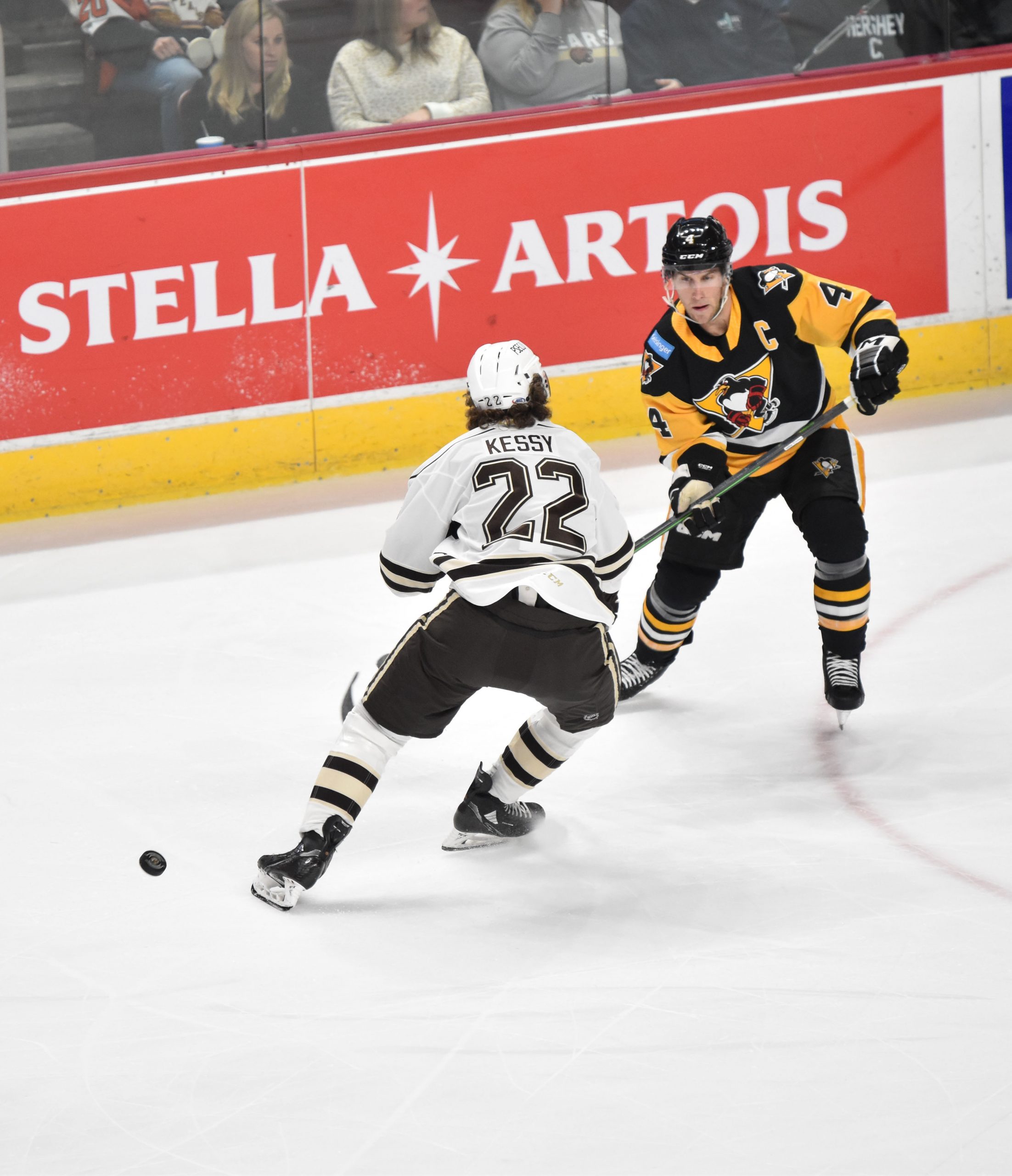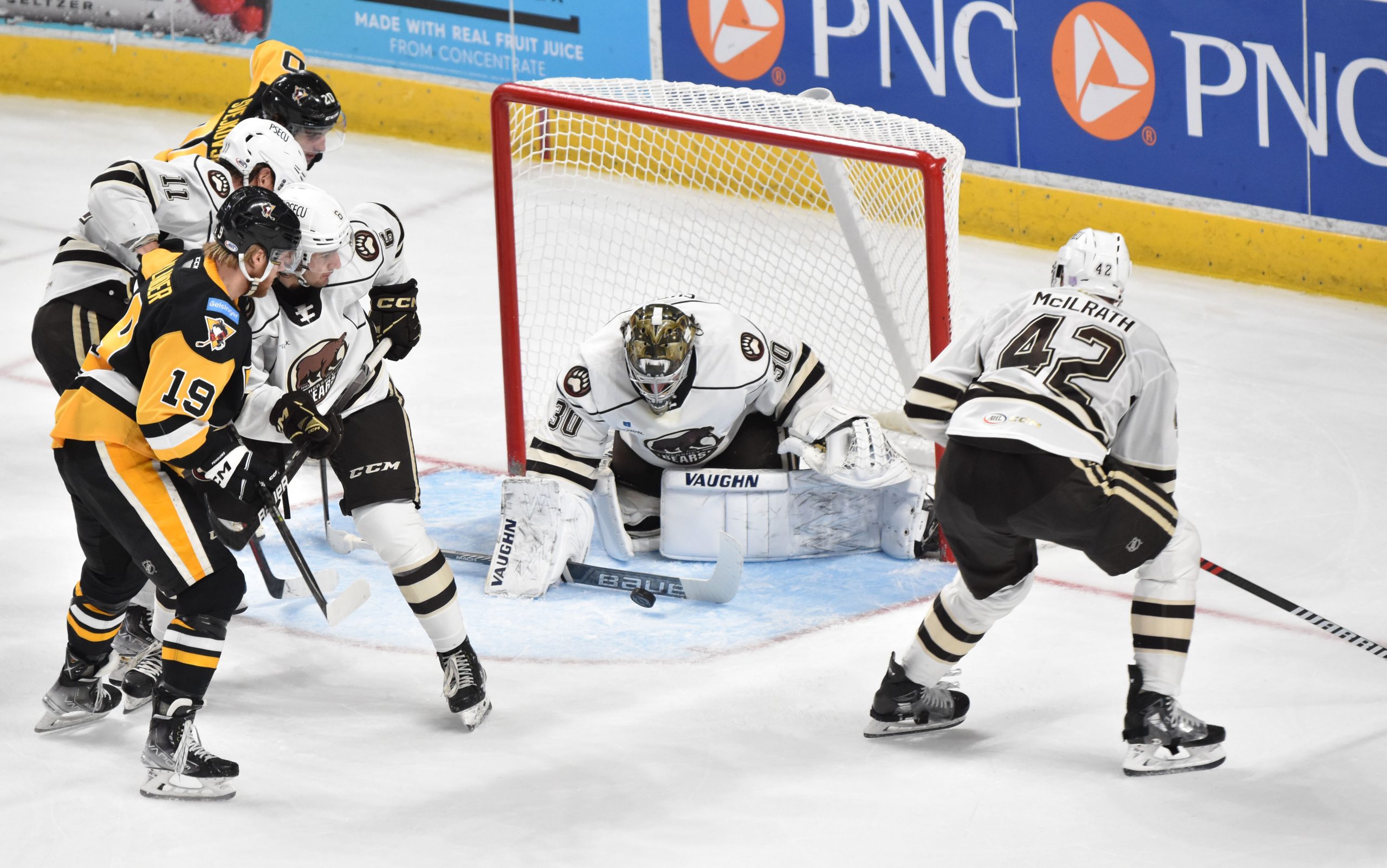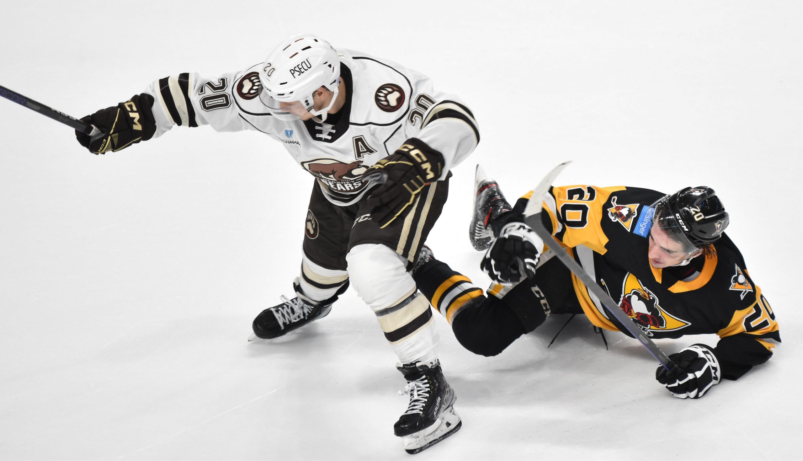 With a late power play and Lindberg pulled to create a 6-on-4 man advantage for the Penguins, Hallander netted his second of the evening and collected his third point of the night after knocking in a rebound from Valtteri Puustinen at 18:38 to bring the Penguins to within one of the Bears, who ultimately held on for the win.