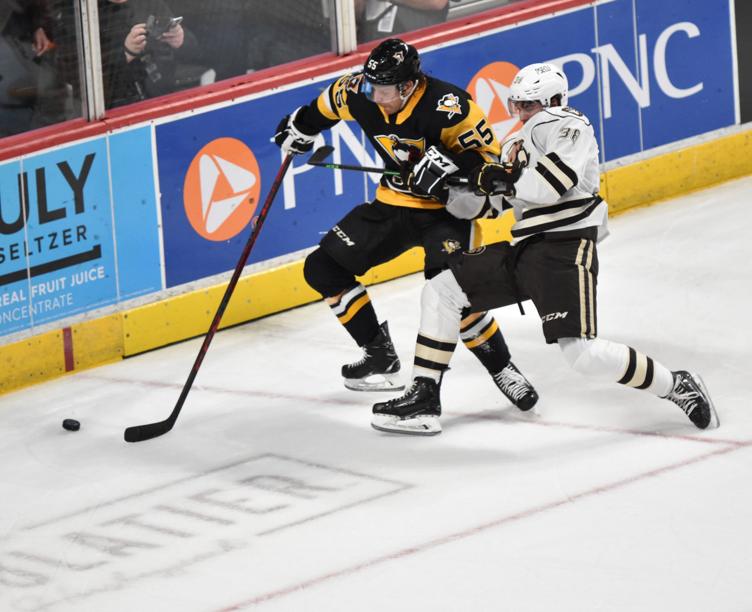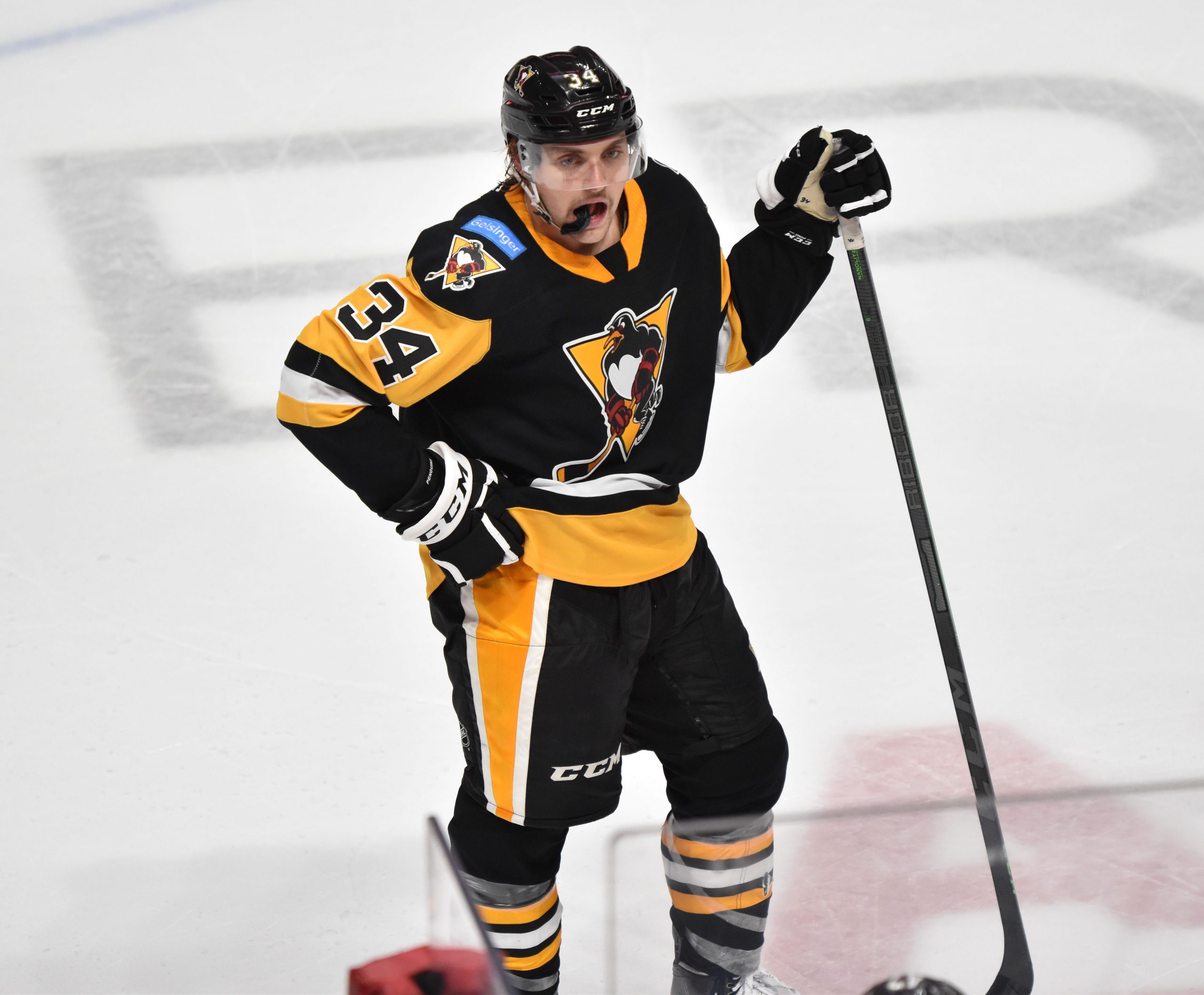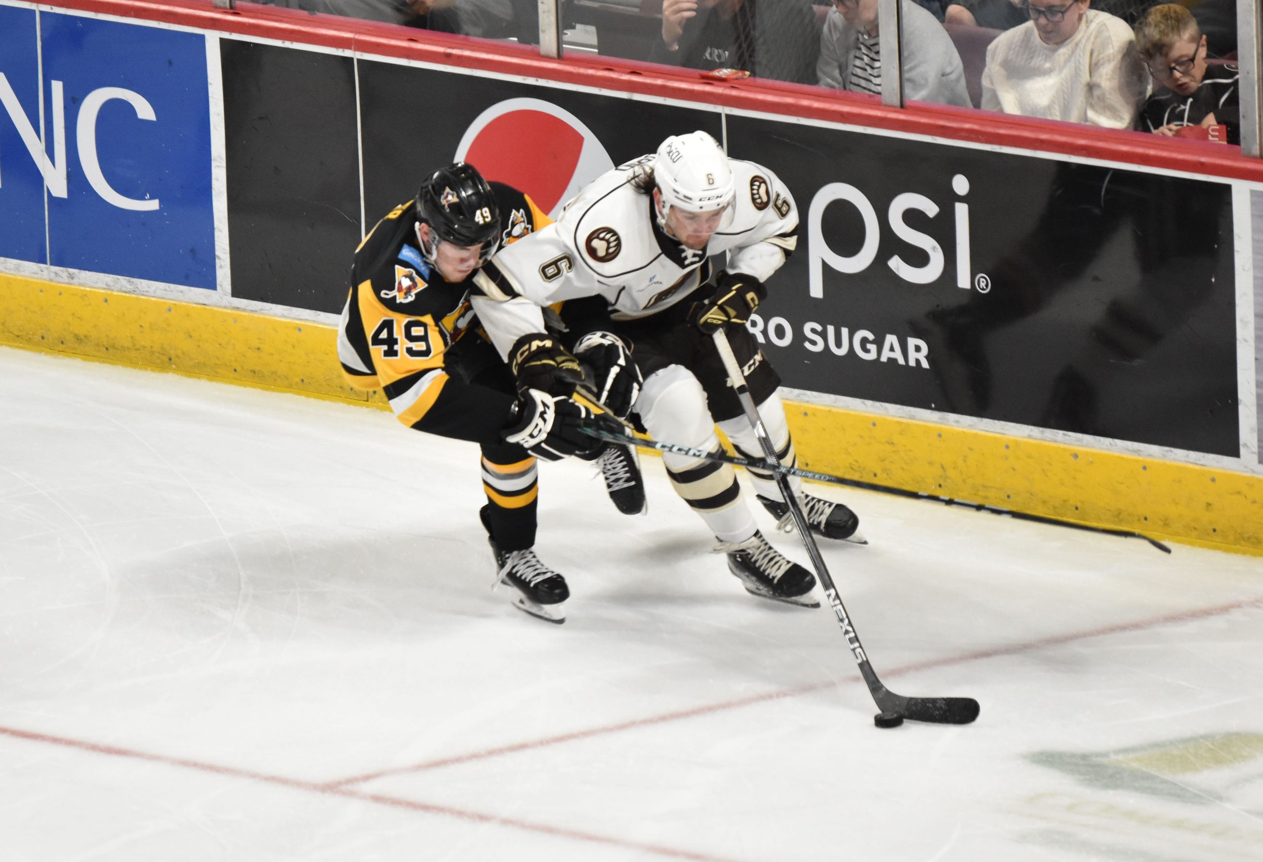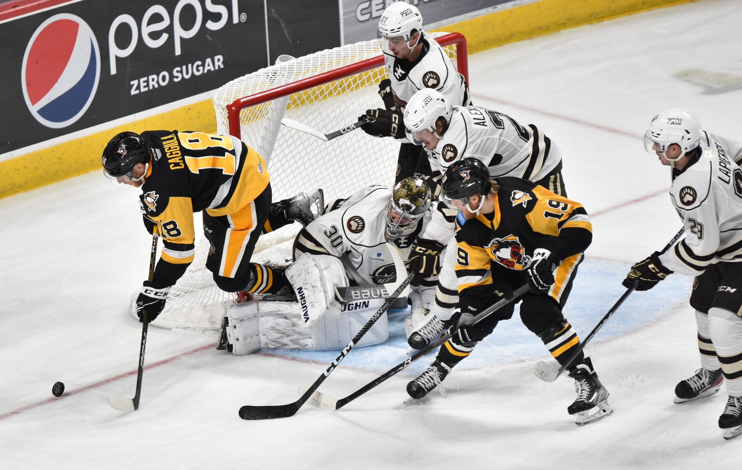 Jonathan Gruden got the Penguins on the board just 13 seconds into the third as Filip Hallander fed the Wilkes-Barre/Scranton forward from beneath the goal line, and Gruden managed to beat Hunter Shepard above the blocker.