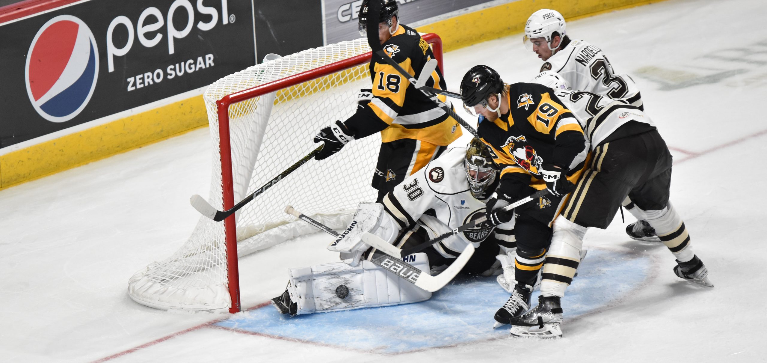 Shots finished 33-29 favoring the Penguins. Shepard finished the night 30-for-33 for the Bears for his first victory of the season, while Lindberg was 25-for-29. Hershey was 0-for-2 on the power play, while Wilkes-Barre/Scranton went 1-for-4.