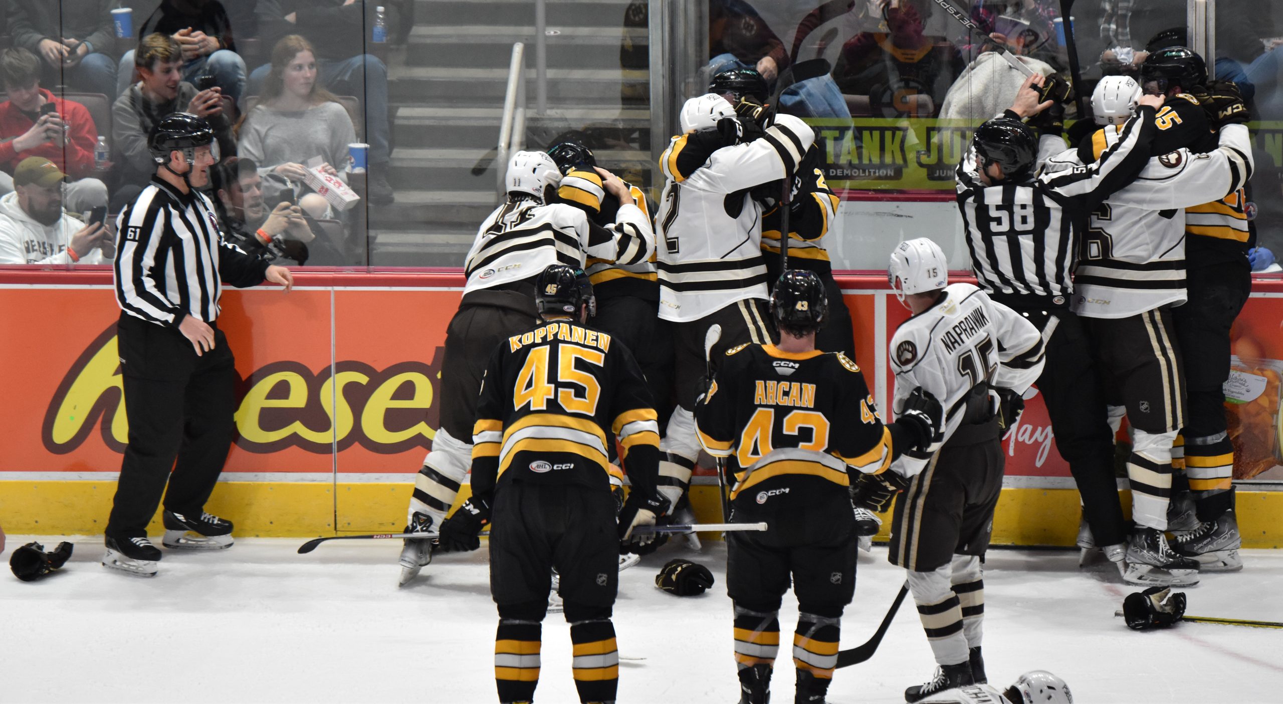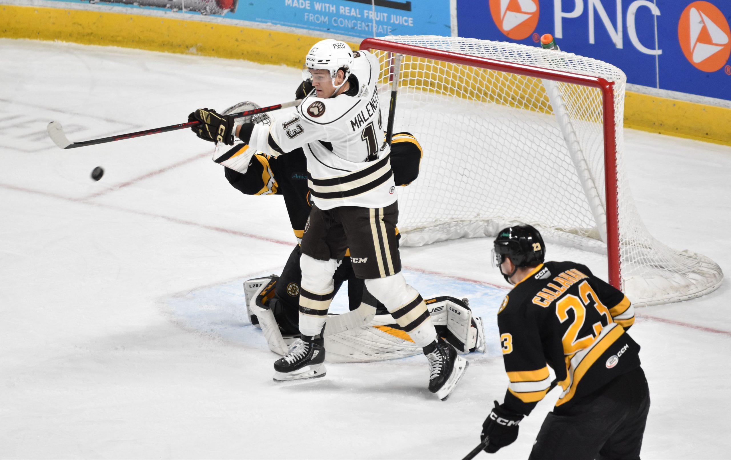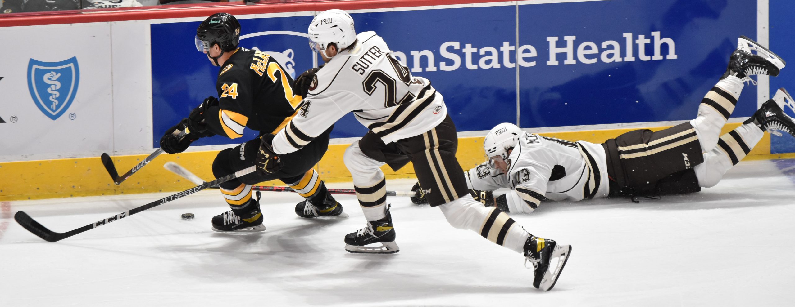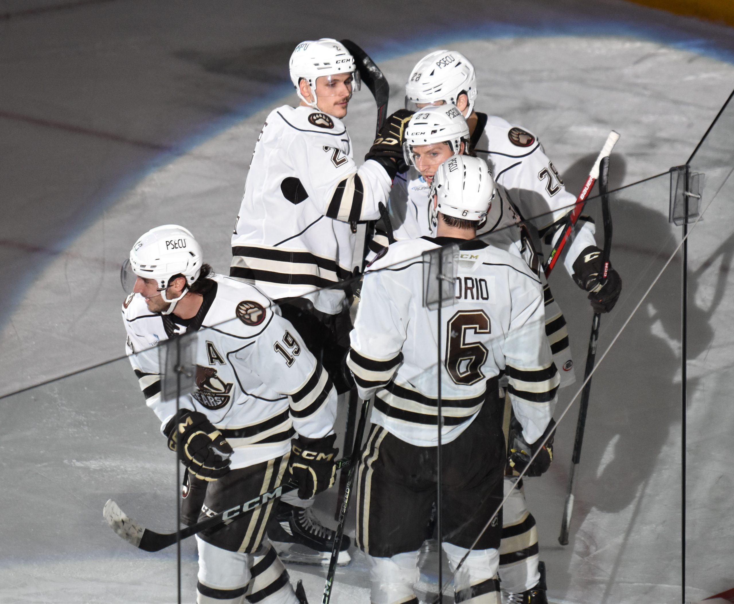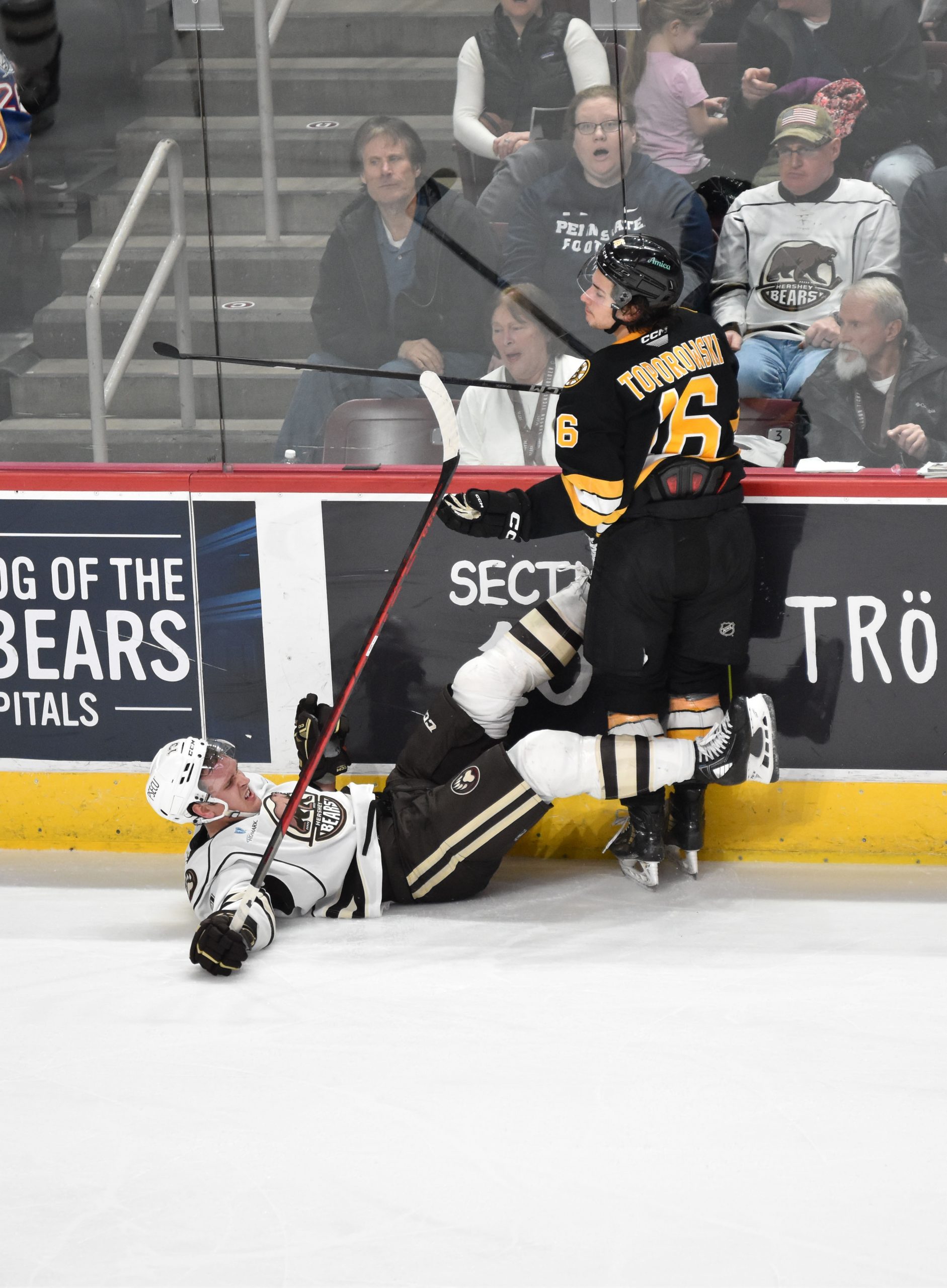 Hershey took a 1-0 lead 12:59 into the first period when Jake Massie found Vecchione in the slot, and the forward wristed the puck past the glove of Brandon Bussi into the top-right corner of the net for his team-leading 12th of the season. Vincent Iorio received credit on the secondary assist.