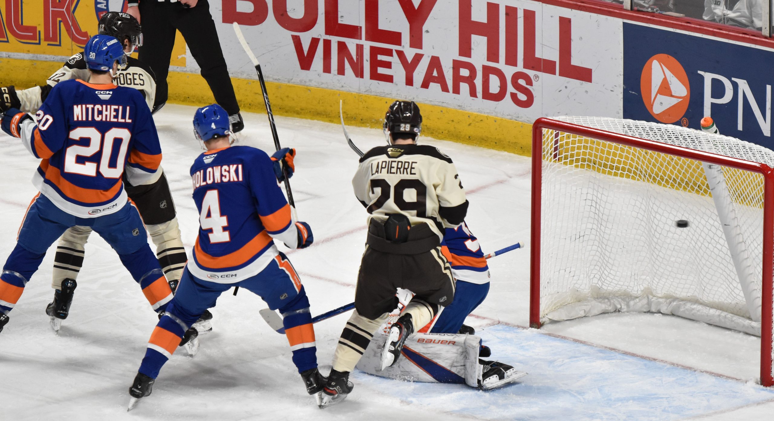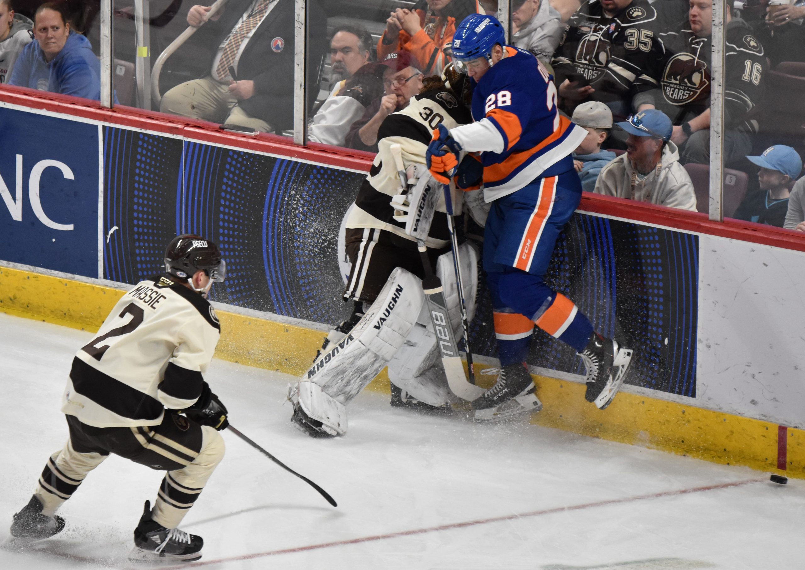 Hershey Bears vs the Bridgeport Islanders. The Bears won by a score of 4-0 over the Islanders.