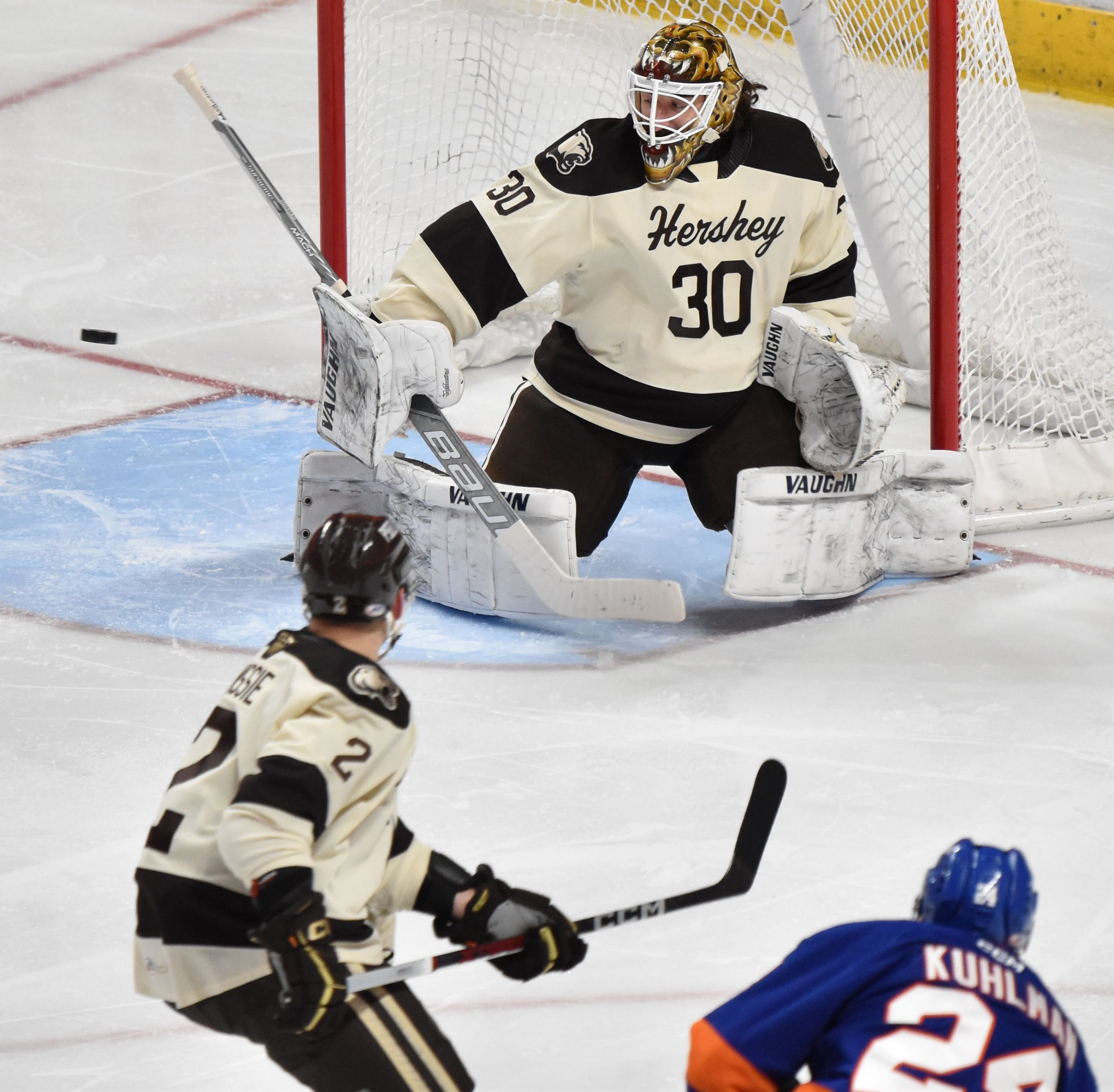 Two early first-period goals and Hunter Shepard’s second shutout performance of the season helped power the Hershey Bears (36-8-0-2) to an eventual 4-0 win over the Bridgeport Islanders (13-25-5-0) in front of a Saturday night crowd of 10,583 at GIANT Center. The Bears head into the American Hockey League’s All-Star break atop the league standings, with a 13-point lead on the second-place Providence Bruins.