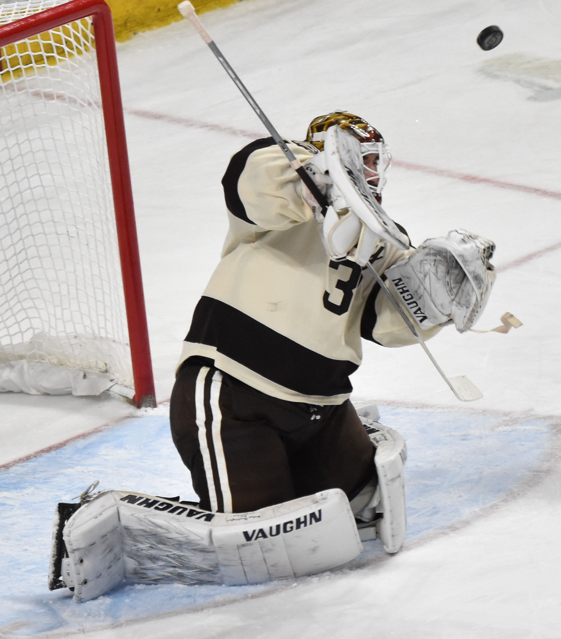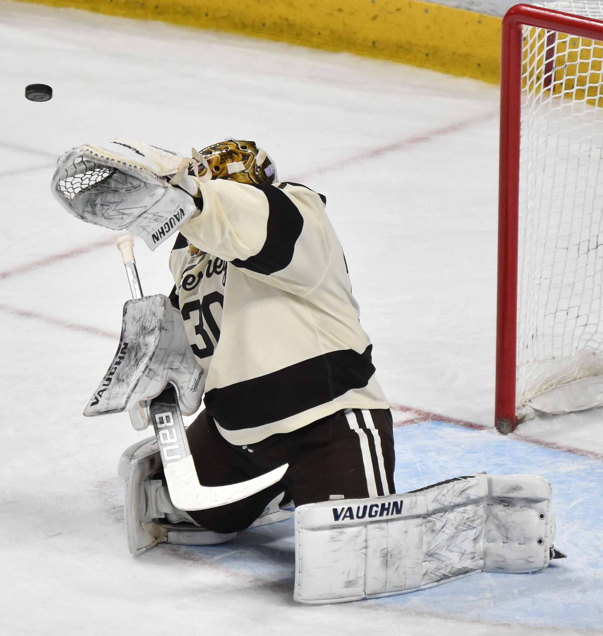 Mike Vecchione beat Appleby with a shot through the five-hole for his 14th of the season at 4:02 of the second period to make it 3-0 off a pass from Mike Sgarbossa; Jake Massie earned a secondary assist.