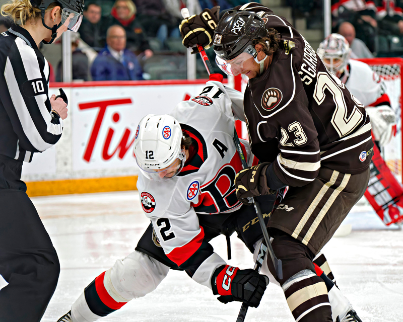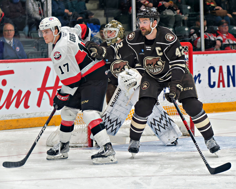 Down 2-0 in the third period, the Hershey Bears (26-8-4-1) stormed back with a four-goal frame to top the Belleville Senators (15-20-3-1) by a 4-2 score on Saturday night at CAA Arena. The win extended Hershey’s overall point streak to six games at 4-0-2-0, and its road point streak to five games at 4-0-1-0.