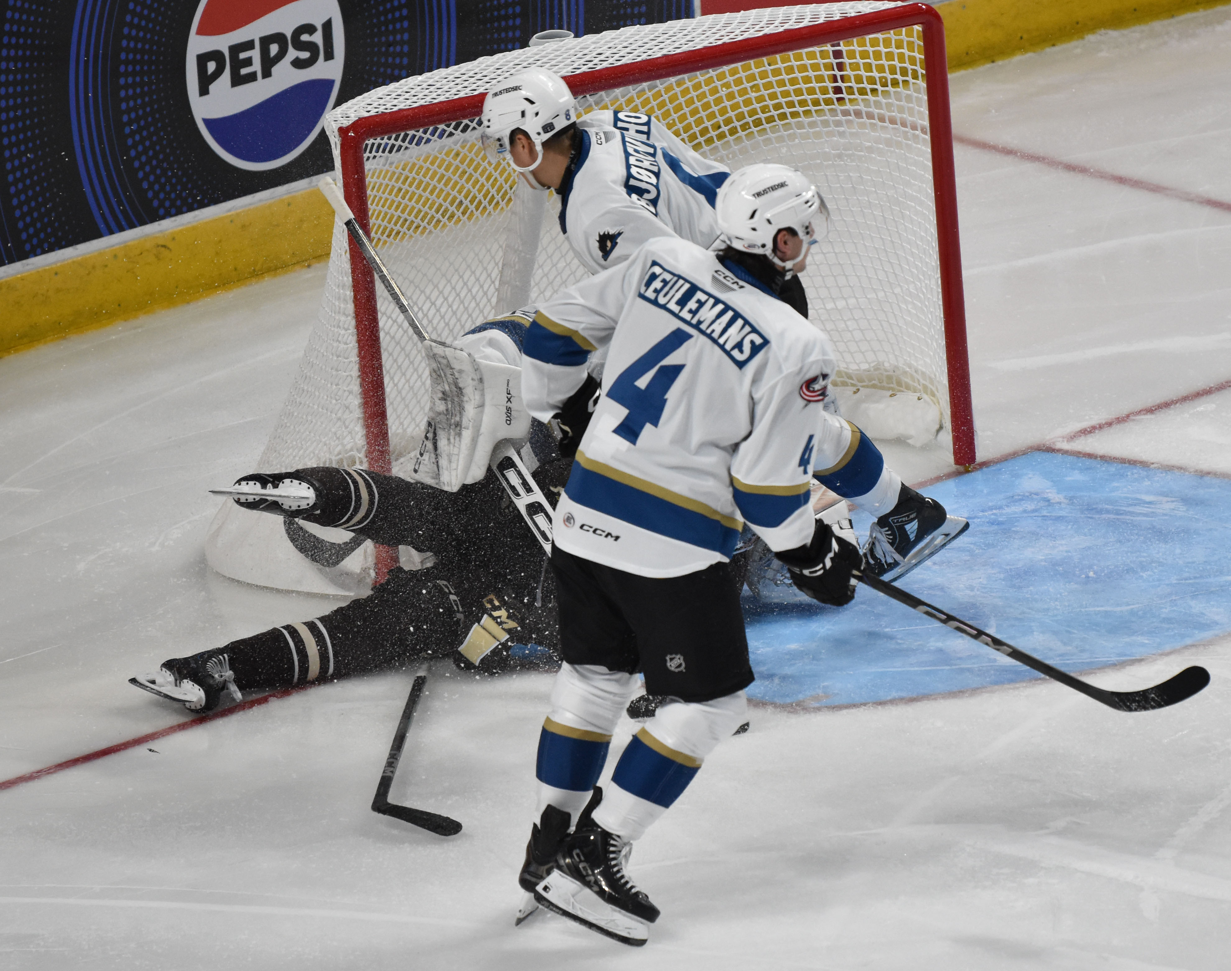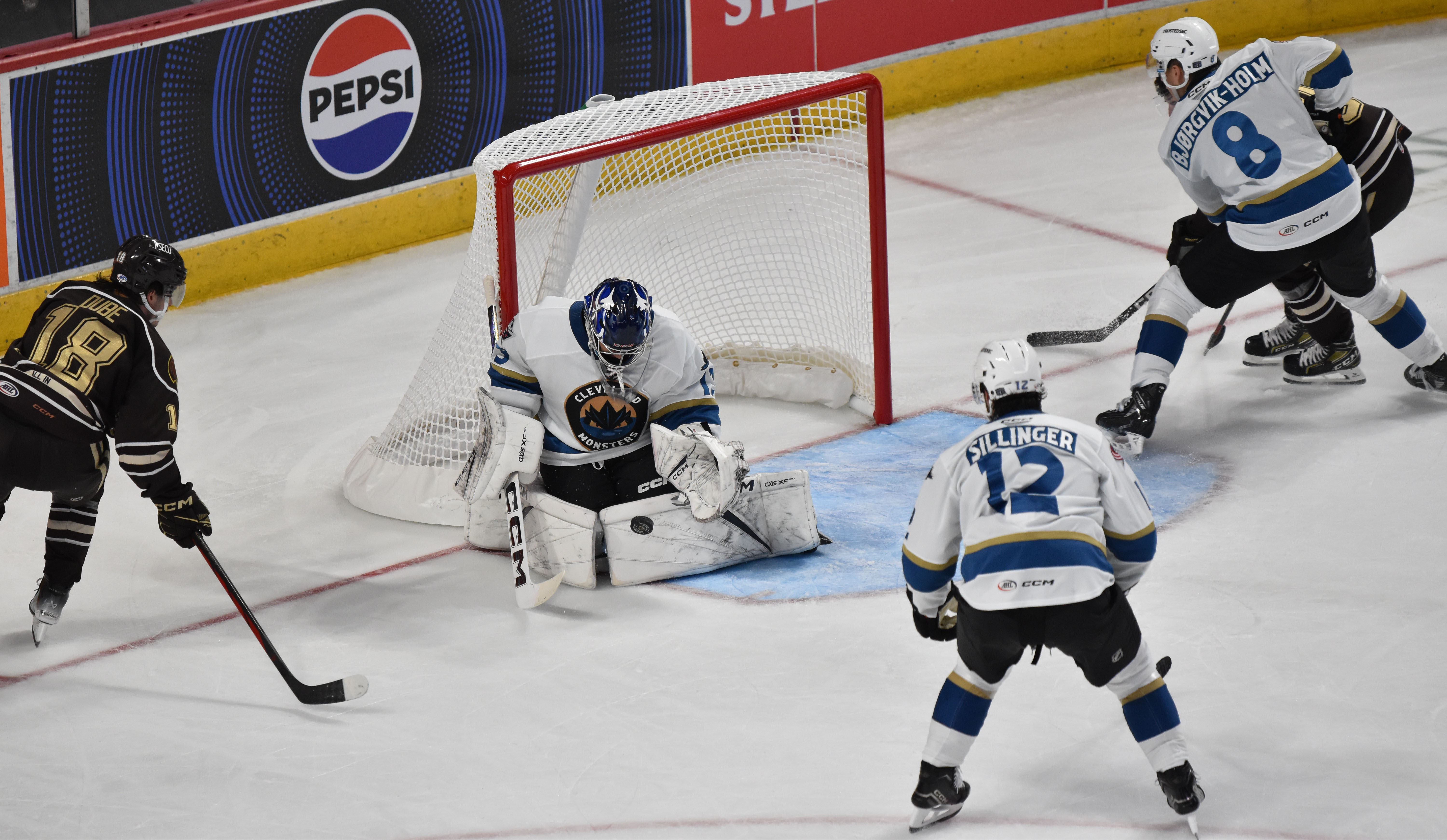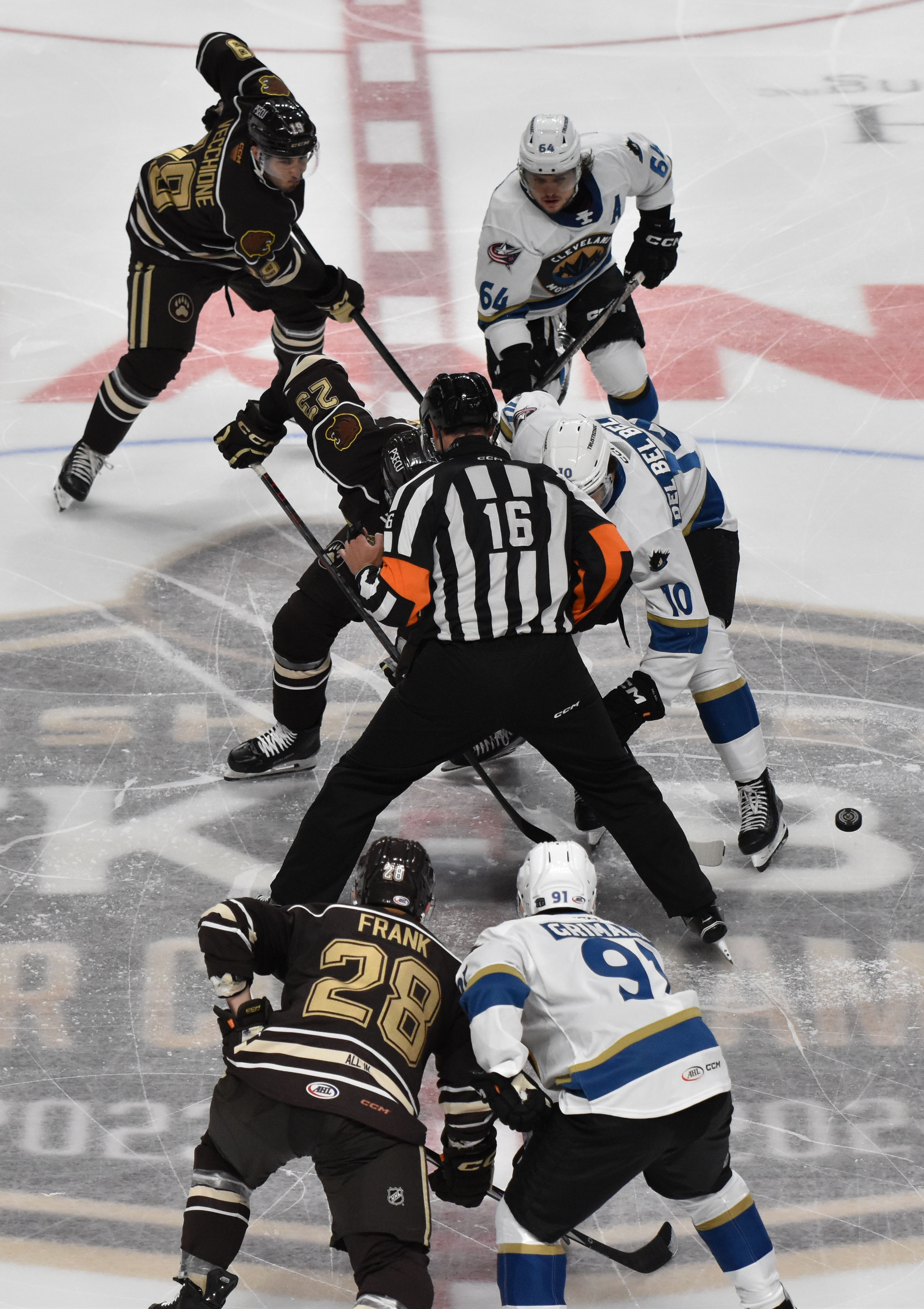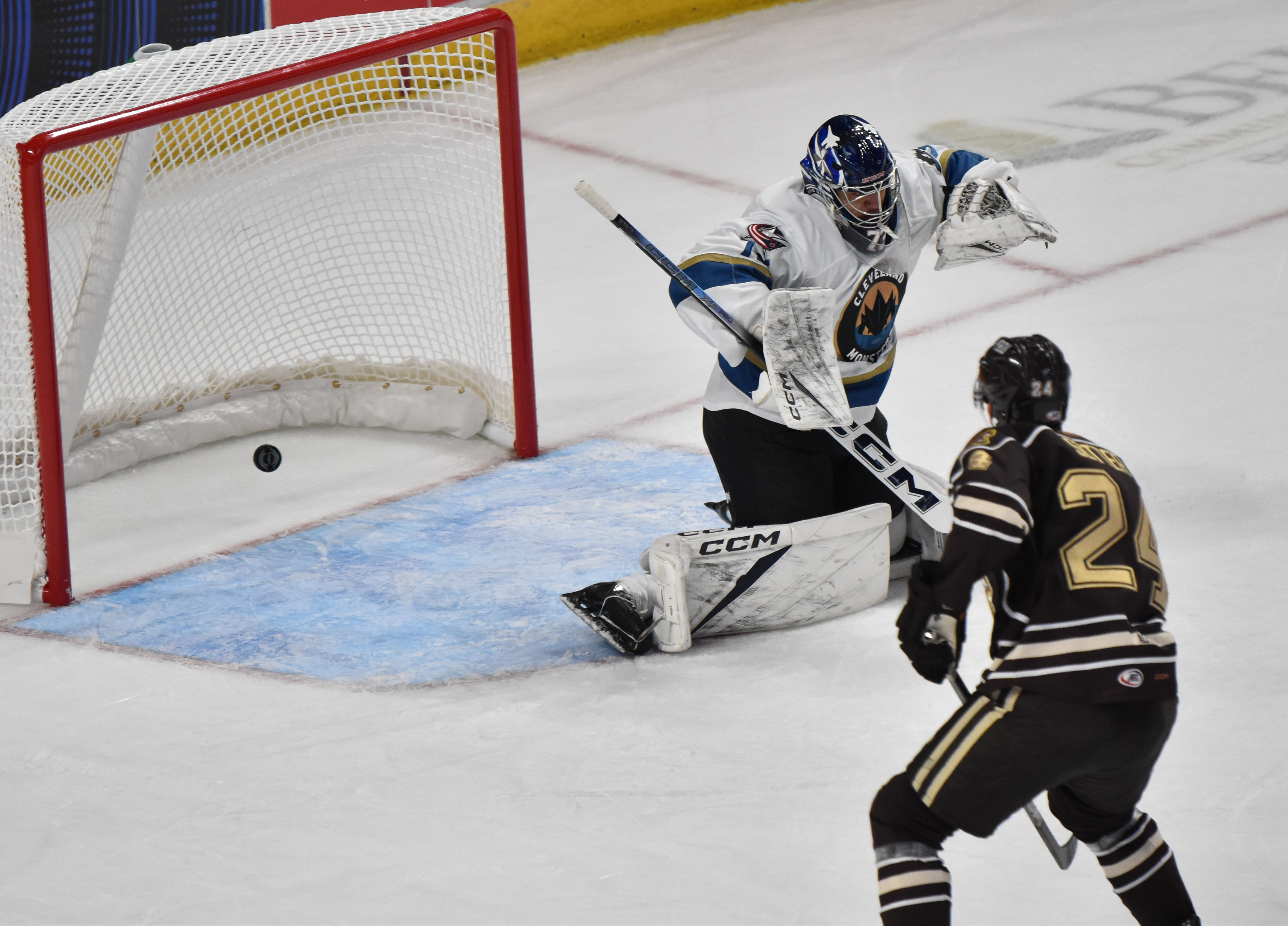 The Bears struck first after a goal from Vincent Iorio at 5:00 of the opening frame leaving the Monsters trailing 1-0 after 20 minutes. Rocco Grimaldi scored his first goal as a Monster at 2:11 of the middle frame assisted by Chris Wilkie and Samuel Knazko to even the score. Roman Ahcan put Cleveland ahead with a marker at 11:50 off feeds from Denton Mateychuk and Joseph LaBate, but Hershey’s Ethen Frank responded with a power-play tally at 13:07. The Bears added two more goals starting with Bogdan Trineyev at 16:55 followed by another from Frank on the man advantage at 17:42 sending the Monsters to the final intermission trailing 4-2. Frank completed his bid for a hat trick at 5:40 of the third period and Ethan Bear followed it up with a goal for the Bears at 6:11. Denton Mateychuk scored his first professional goal at 12:18 on the power play with helpers from Trey Fix-Wolansky and Luca Del Bel Belluz, but Hershey’s Luke Philip notched a tally at 19:03 bringing the final score to 7-3.