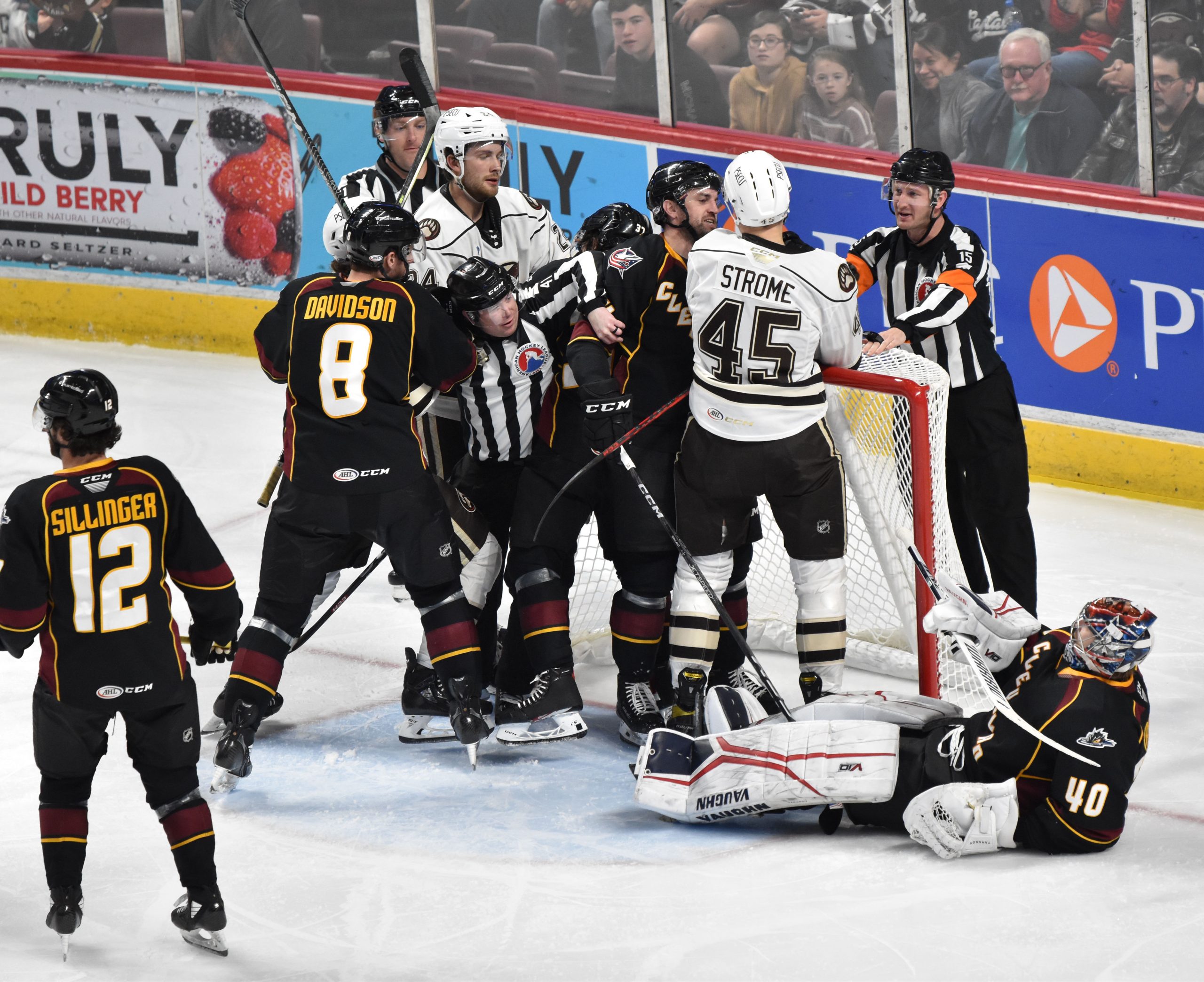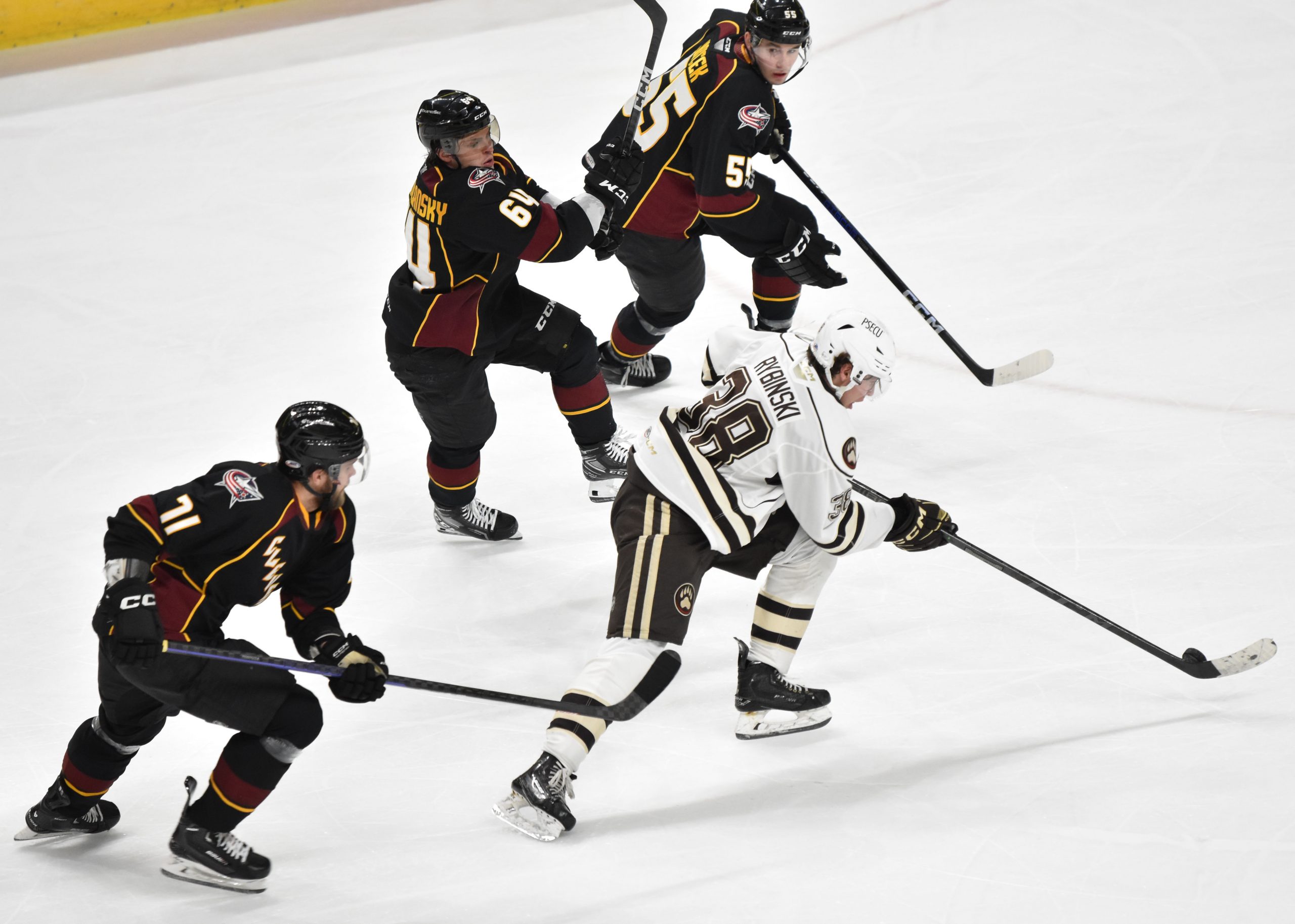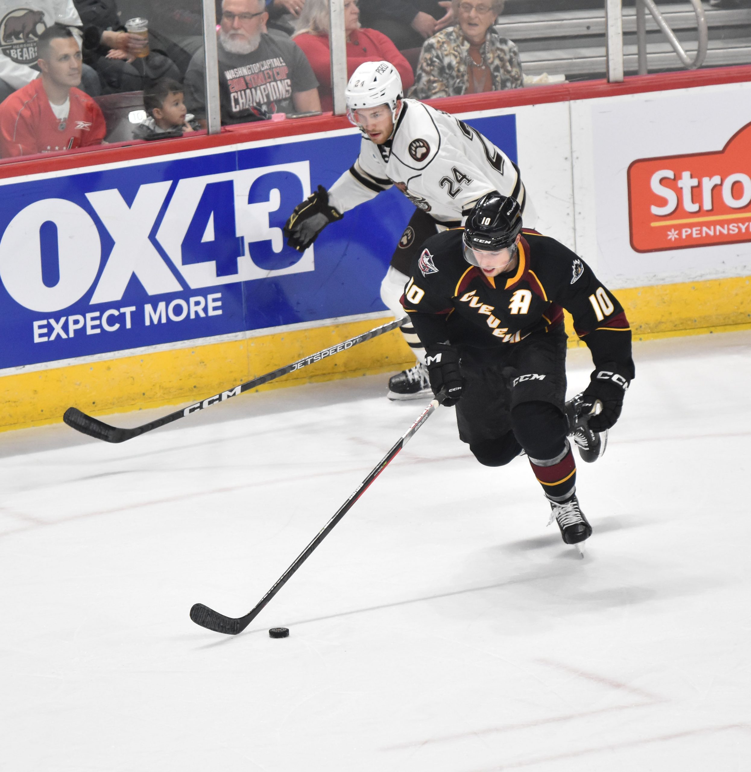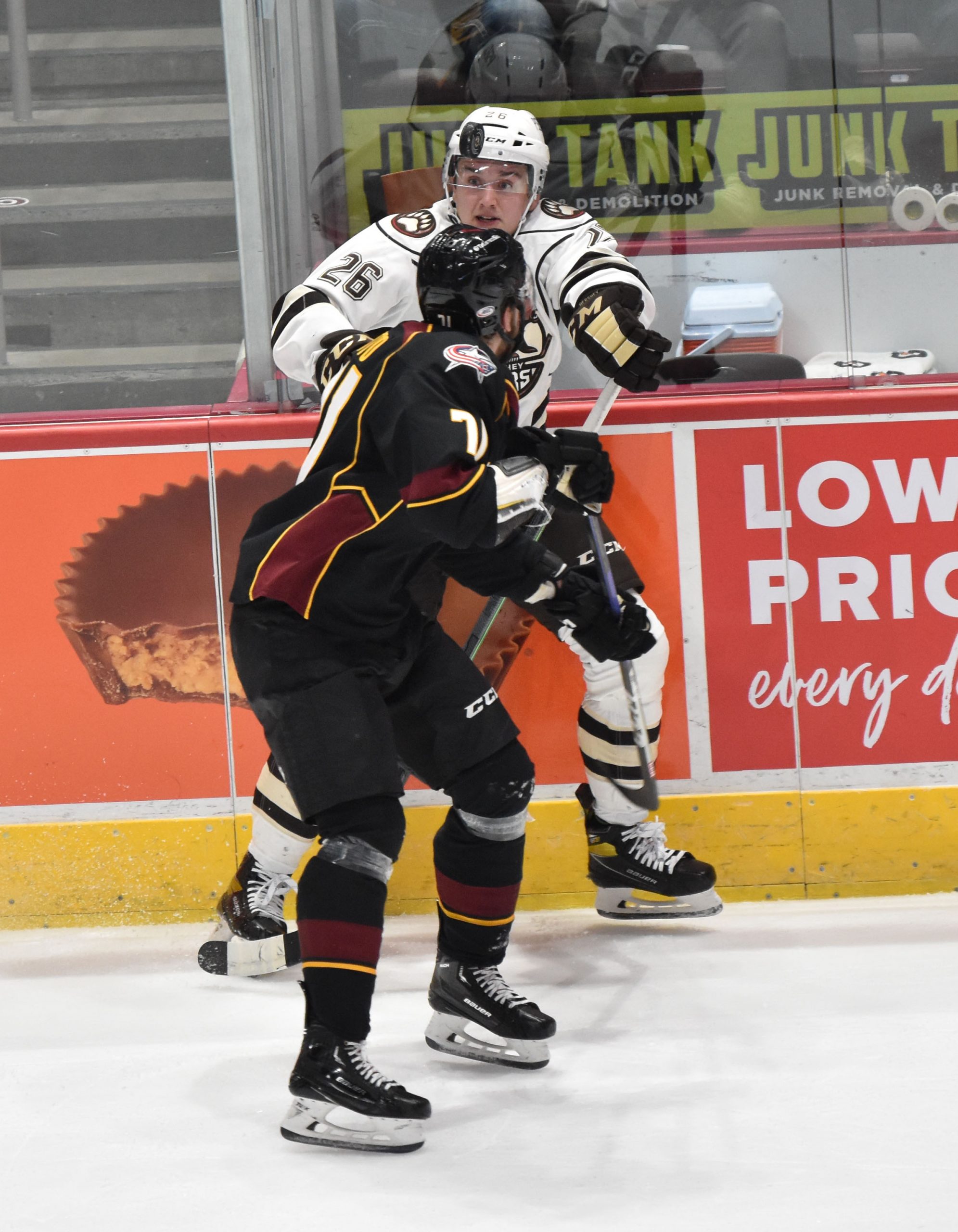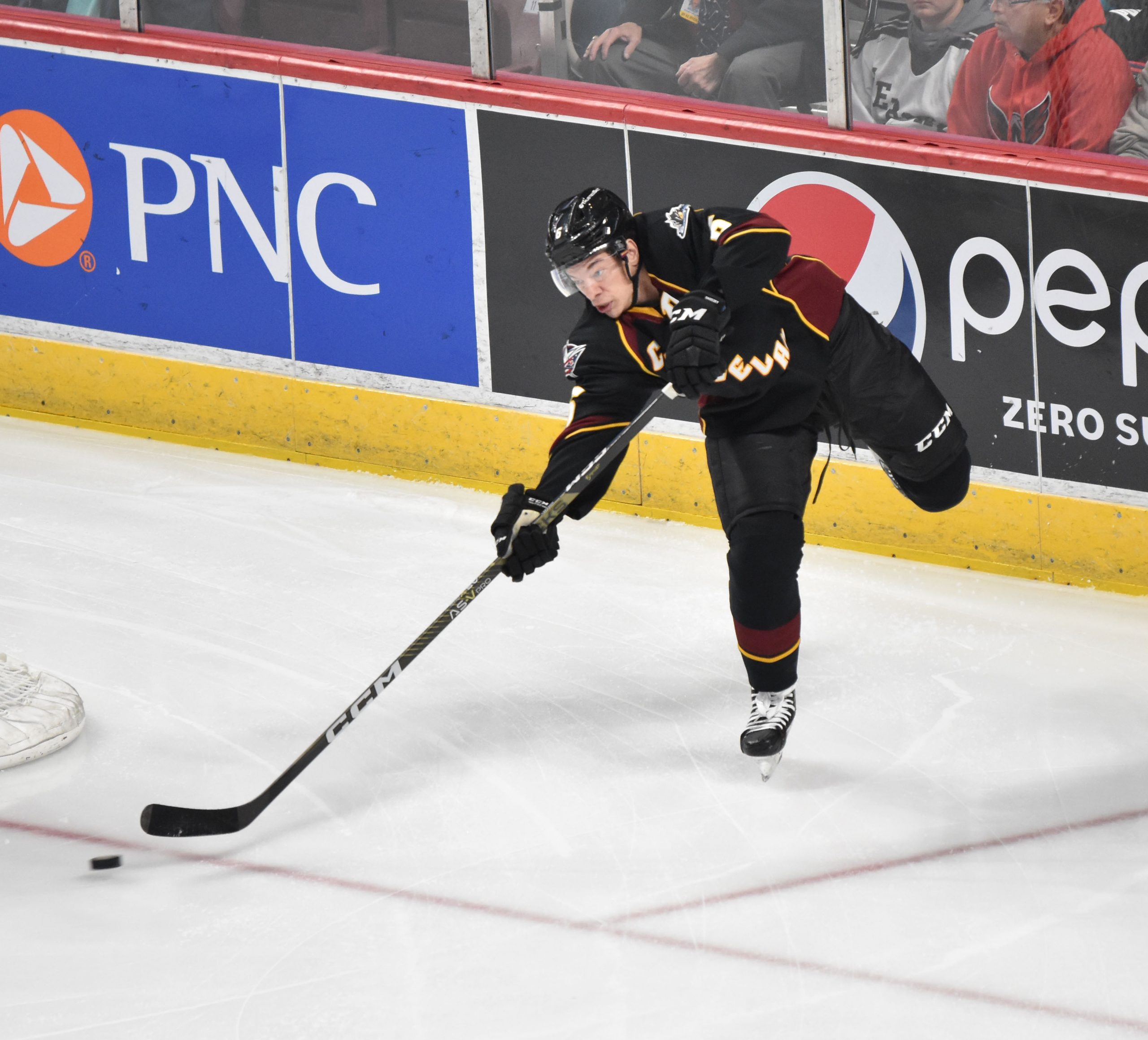 Mike Sgarbossa drew the Chocolate and White level with his seventh of the season at 8:59 when he used his skate at the side of the net to redirect a shot from the top of the left circle by Mason Morelli past Daniil Tarasov to make it 1-1. Bobby Nardella earned a secondary assist on the goal, his 100th career pro point.