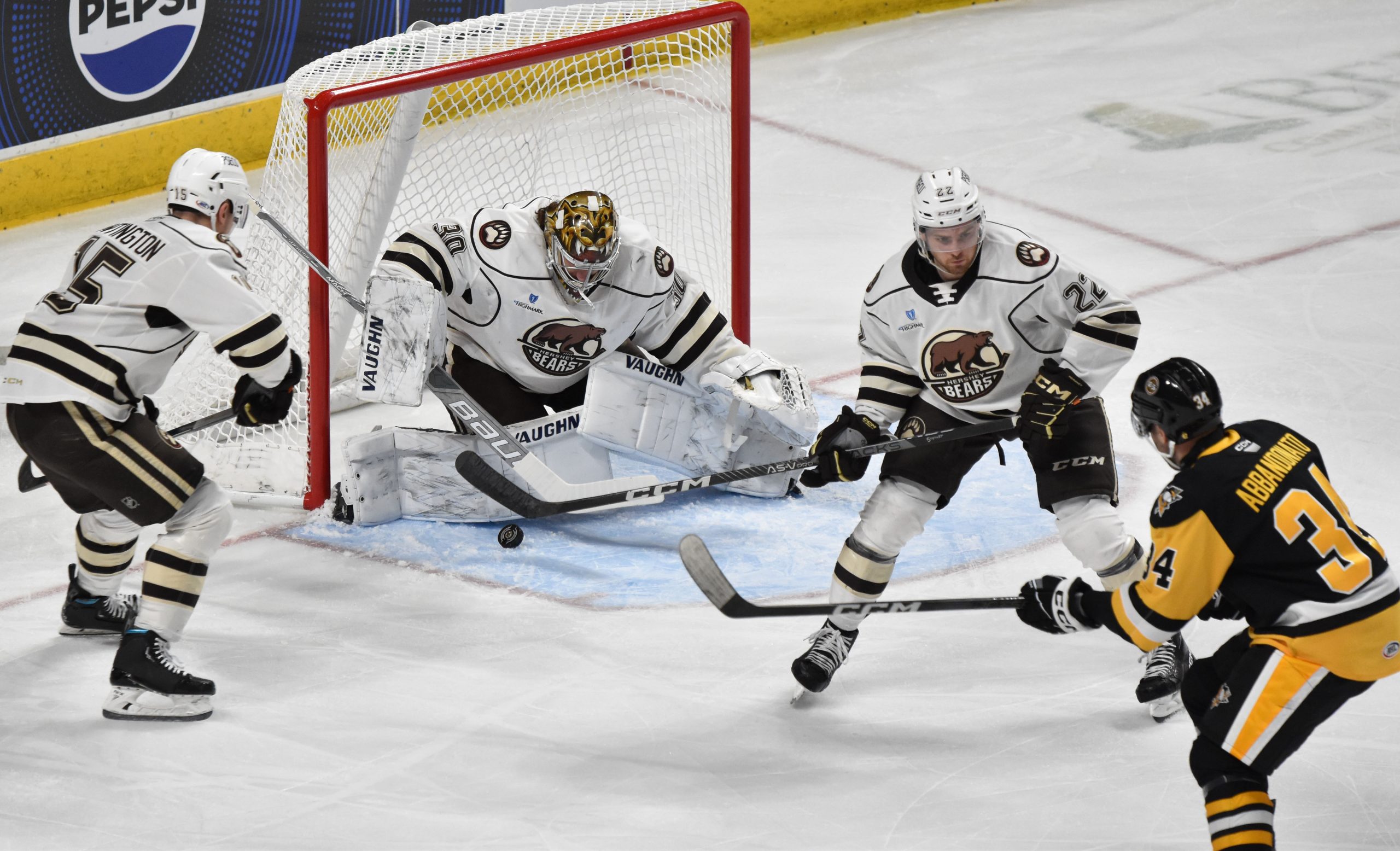 Shots finished 37-21 in favor of the Bears. Shepard went 20-for-21 to earn his fifth consecutive victory and 14th victory of the season, tied for first in the AHL; Hellberg took the loss for Wilkes-Barre/Scranton with a 33-for-26 effort. Hershey went 1-for-2 on the power play; the Penguins went 0-for-2 with the man advantage.