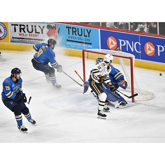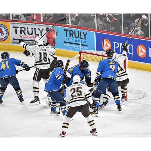 In the third, Ethen Frank continued his scoring ways, as the rookie forward netted his team-leading 16th goal of the season at 4:17 when he deflected a Jake Massie shot from the left point into the cage. Mike Sgarbossa earned a secondary assist.