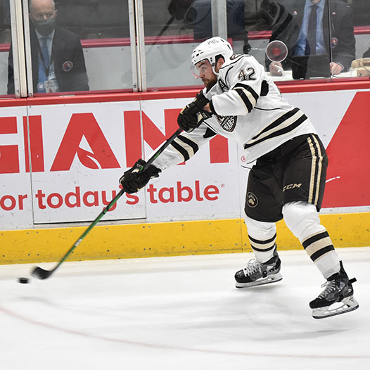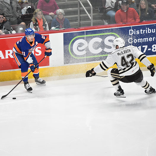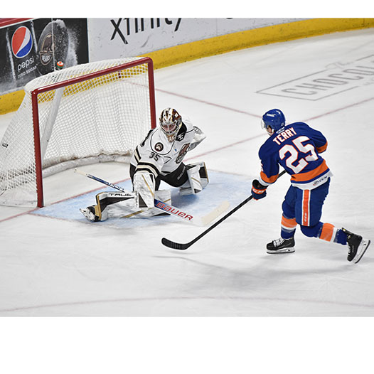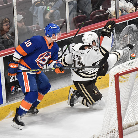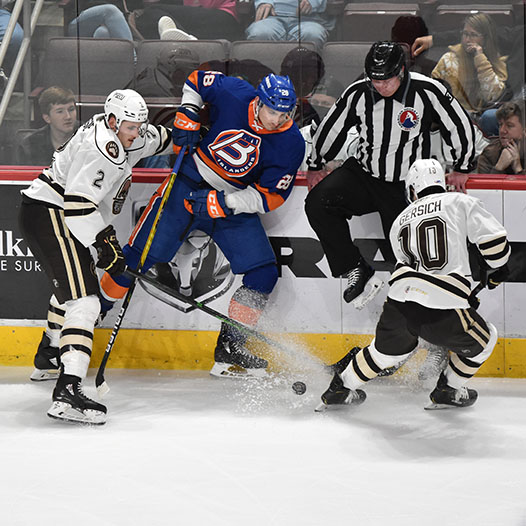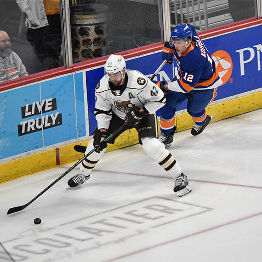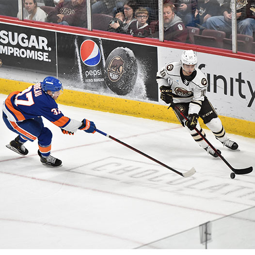 Gersich’s opening marker came at 9:04 after pouncing on a loose puck at the side of the net. Drake Rymsha threw the initial shot on frame, and Mason Morelli recorded the secondary helper. The Chocolate and White held Bridgeport to only one shot on goal in the first period, but the one shot was a breakaway chance buried by Islanders’ veteran forward Chris Terry for the equalizer. At 12:49, Terry snuck behind the Bears defense and potted his team-best 11th goal of the campaign.