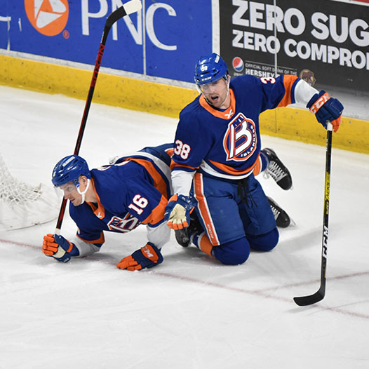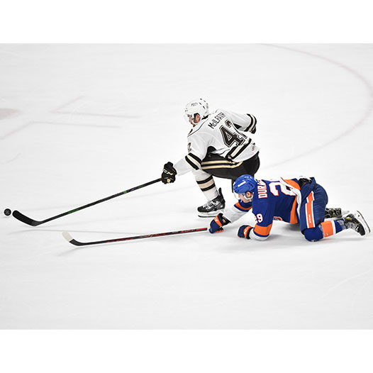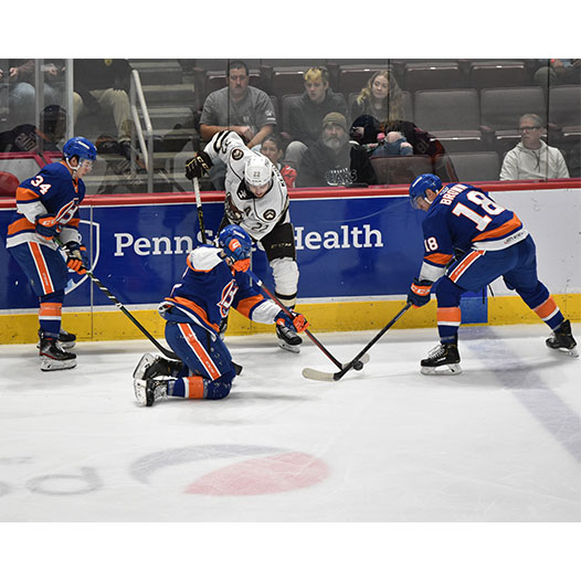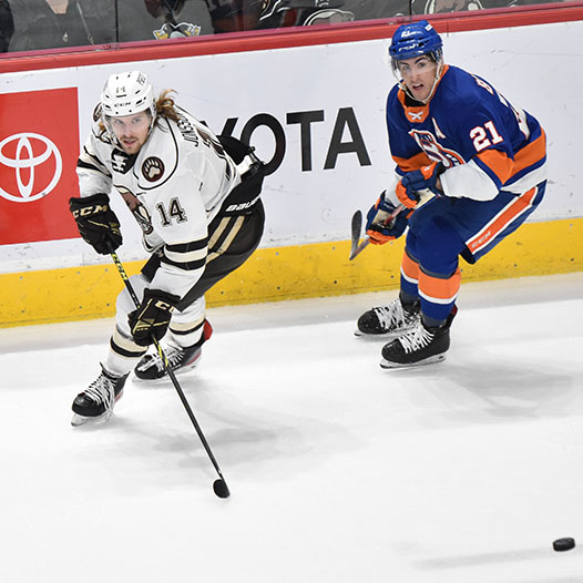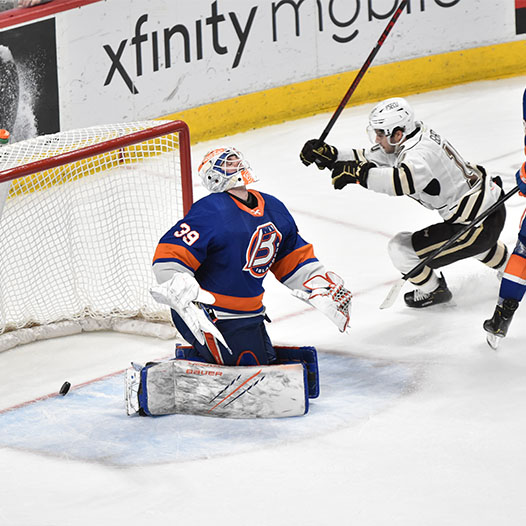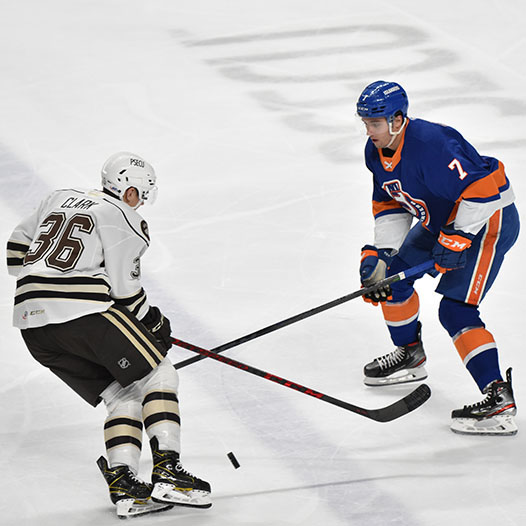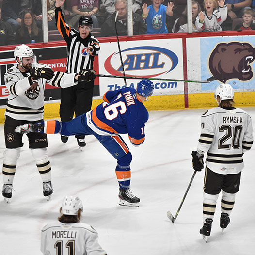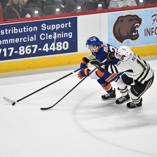 In the second period, Garrett Pilon tallied off the rush to restore Hershey’s one-goal advantage. At 12:40, Pilon received a headman pass from Joe Snively and beat Islanders goaltender Ken Appleby from the right wing. Shots after 40 minutes were 21-10 Hershey with the Bears leading 2-1.