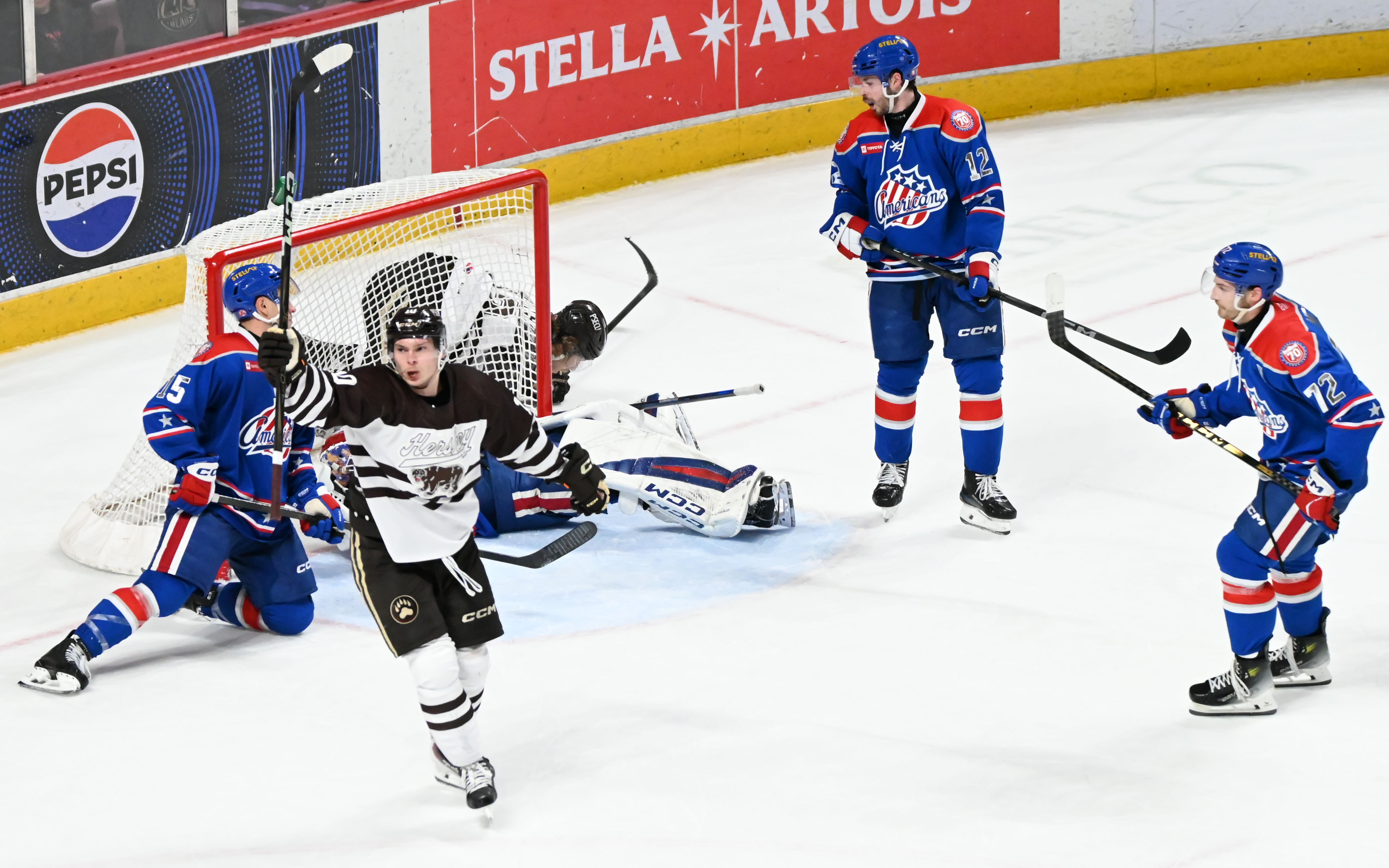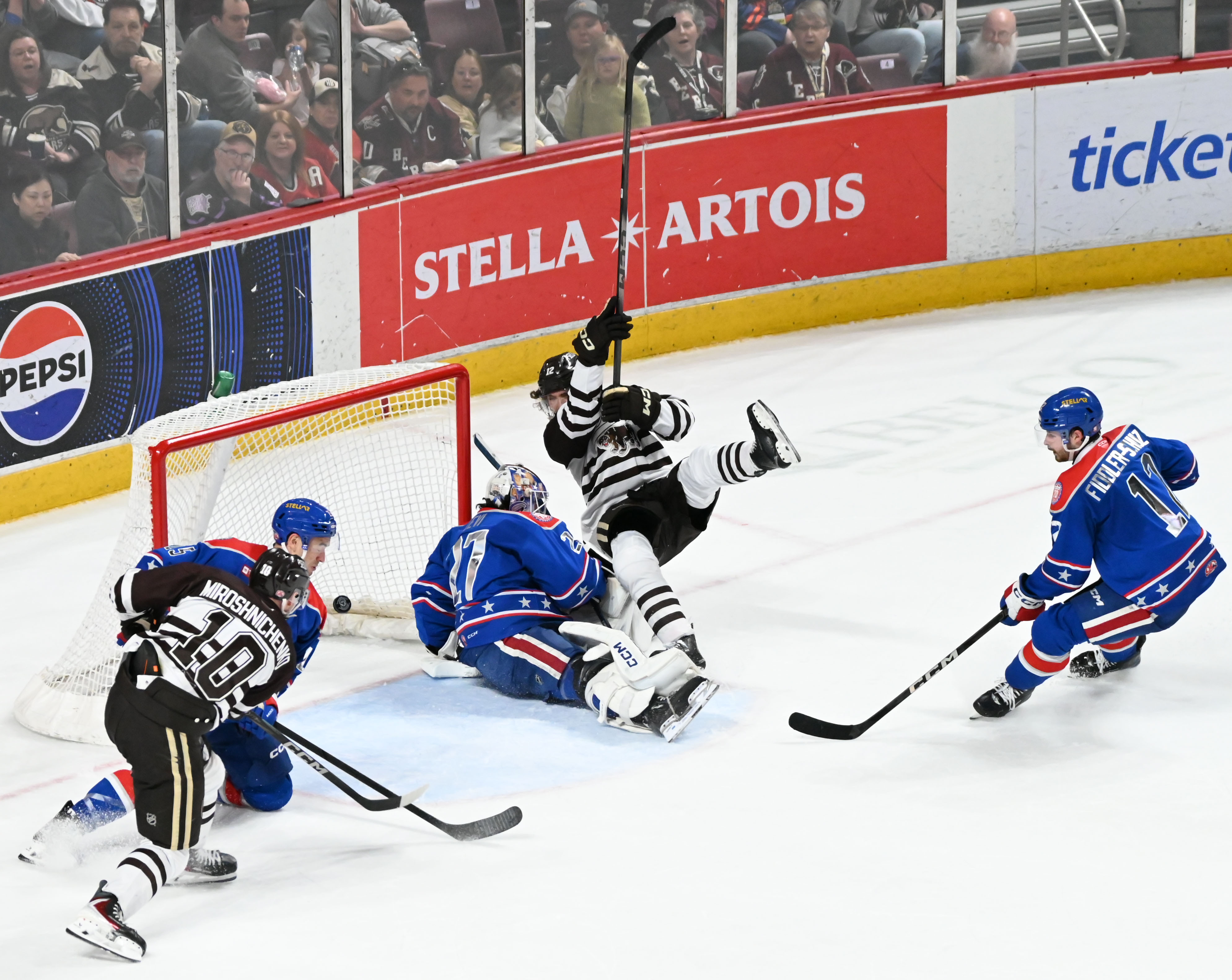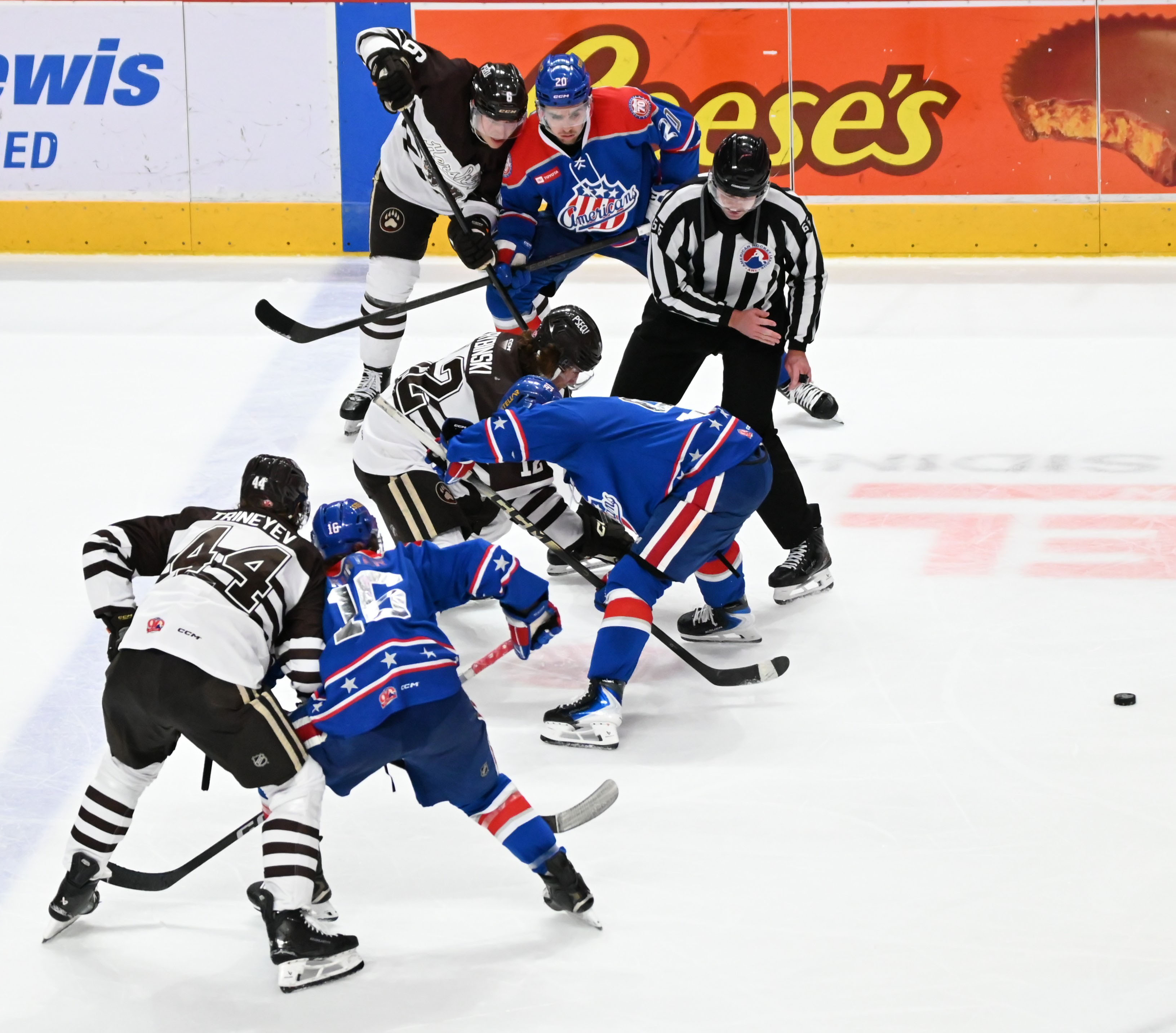 - A potential Amerks goal at 6:02 goal was negated by a double-minor high-sticking penalty from Riley Fiddler-Schultz, giving Hershey a four-minute chance with the man advantage. The Bears capitalized on the opportunity when Bogdan Trineyev netted the tying goal at 9:35 from Brett Leason and Alex Suzdalev for his 17th of the season.
