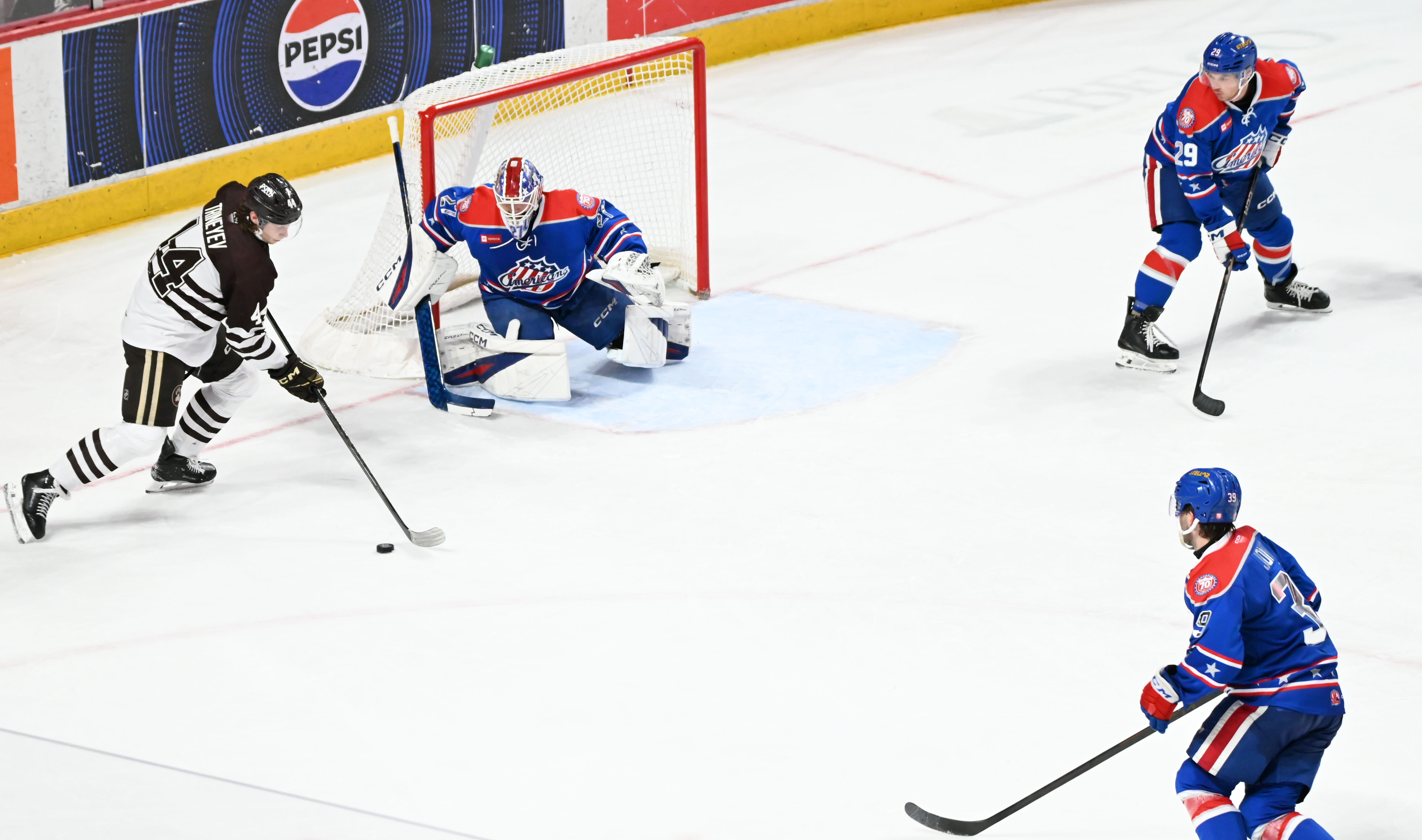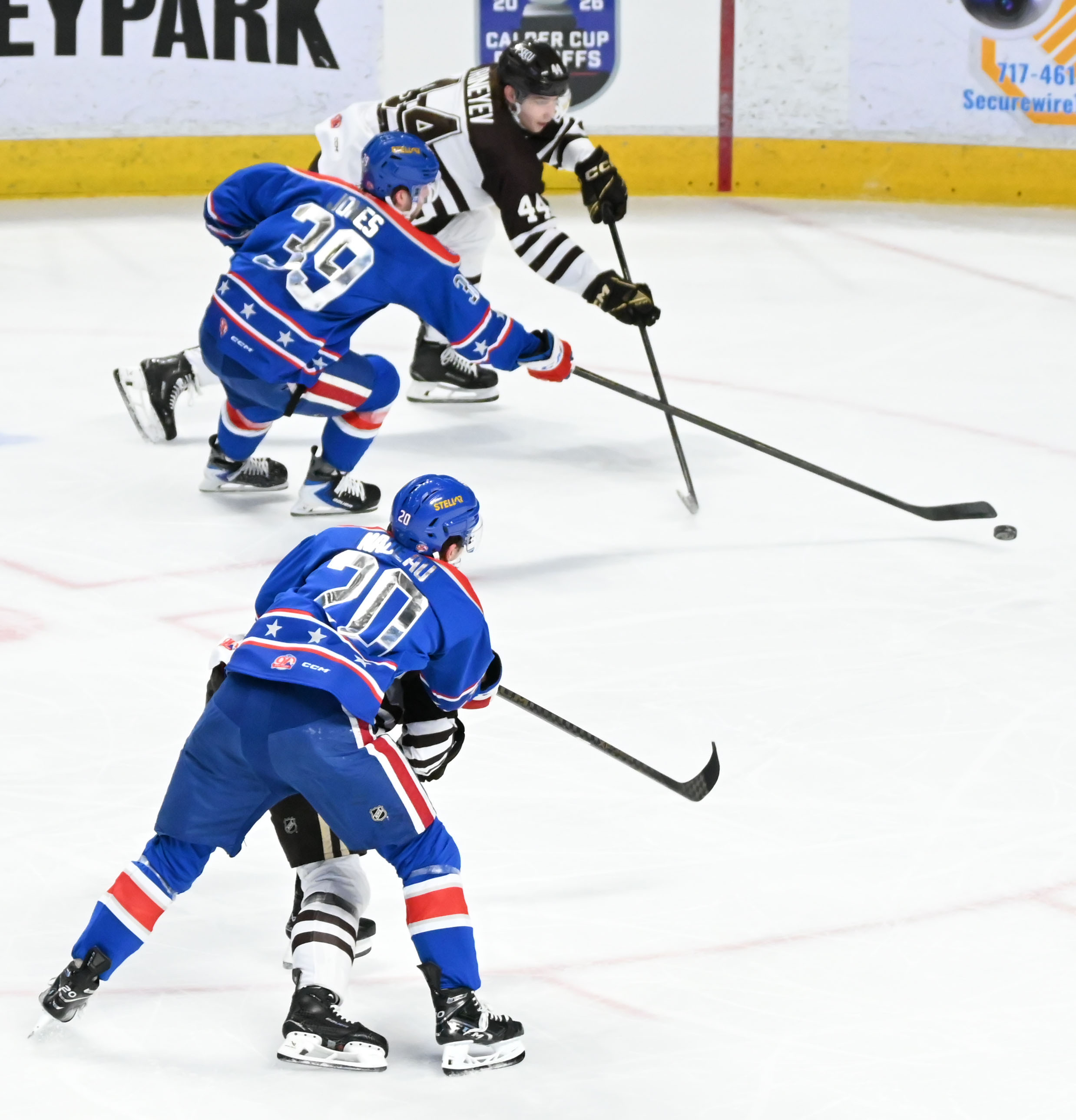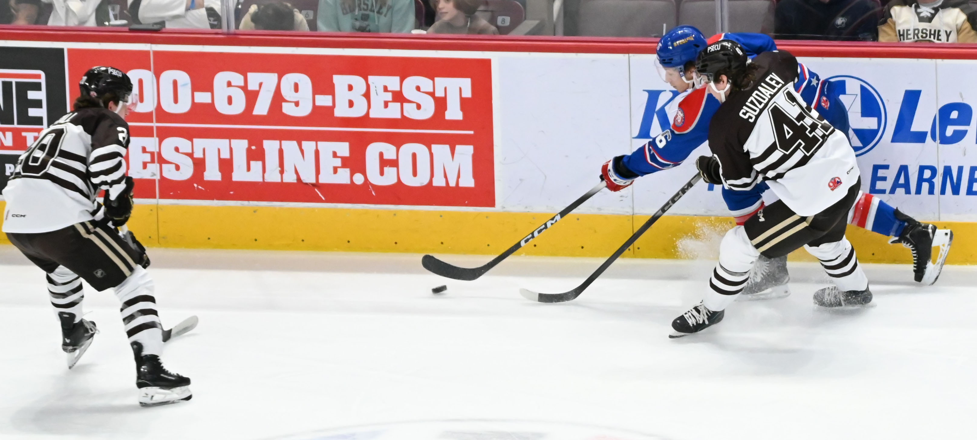 - A potential Amerks goal at 6:02 goal was negated by a double-minor high-sticking penalty from Riley Fiddler-Schultz, giving Hershey a four-minute chance with the man advantage. The Bears capitalized on the opportunity when Bogdan Trineyev netted the tying goal at 9:35 from Brett Leason and Alex Suzdalev for his 17th of the season.