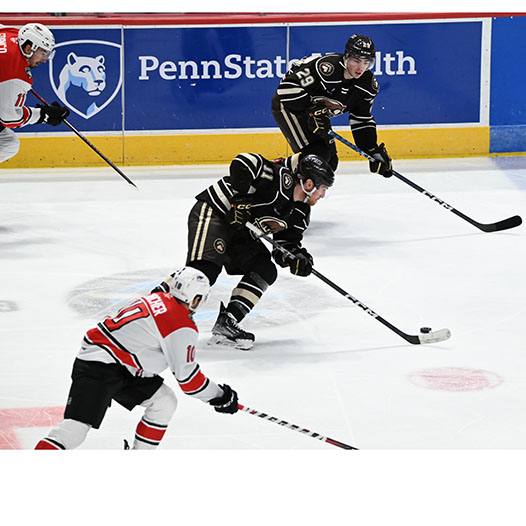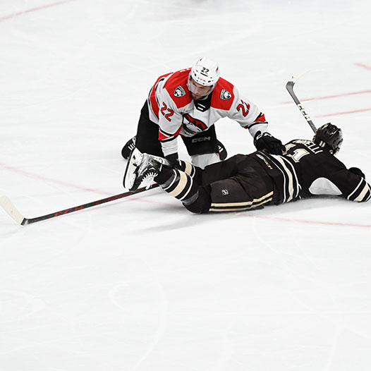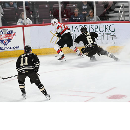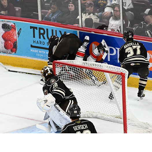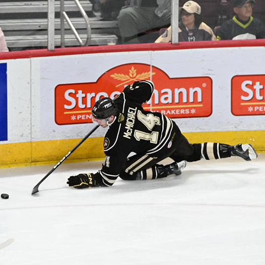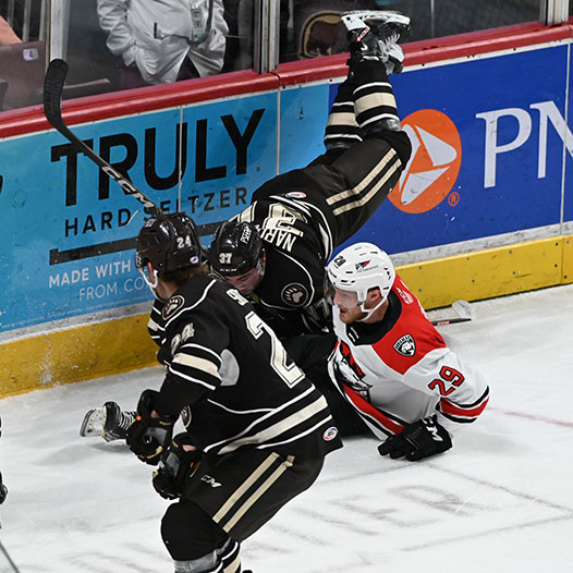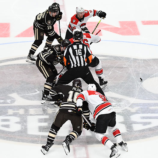 Pilon finished a tic-tac-toe passing play on the man advantage with his 11th of the season at 16:46 from McMichael and Vecchione to bring Hershey back to within a goal.