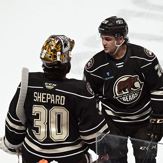 Shots finished 27-24 in favor of the Bears. Shepard went 20-for-24 in the defeat; Guzda was 24-for-27 for Charlotte. The Bears were 2-for-2 on the power play; the Checkers finished 3-for-4 with the man advantage.