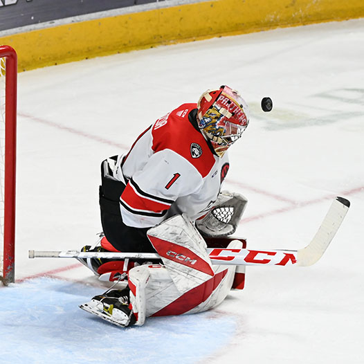 Mike Vecchione tied the game at 2-2 with a power-play strike in the third frame when he snapped a shot from the slot past Guzda at 2:07 for his 23rd of the season from Connor McMichael and Garrett Pilon.