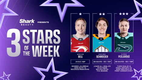 NEW YORK AND TORONTO– Ottawa Charge defender Ashton Bell, New York Sirens goaltender Corinne Schroeder and Boston Fleet goaltender Klára Peslarová have been named the Professional Women’s Hockey League (PWHL) 3 Stars of the Week presented by Shark Beauty Canada following games from April 21-27.