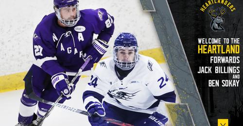 CORALVILLE, IA – Forwards Jack Billings and Ben Sokay have signed their first professional contracts with the Iowa Heartlanders, the team announced Friday. They are the second and third players to join the Heartlanders’ inaugural squad as the team prepares for the season opener at Xtream Arena on Friday, October 22nd.