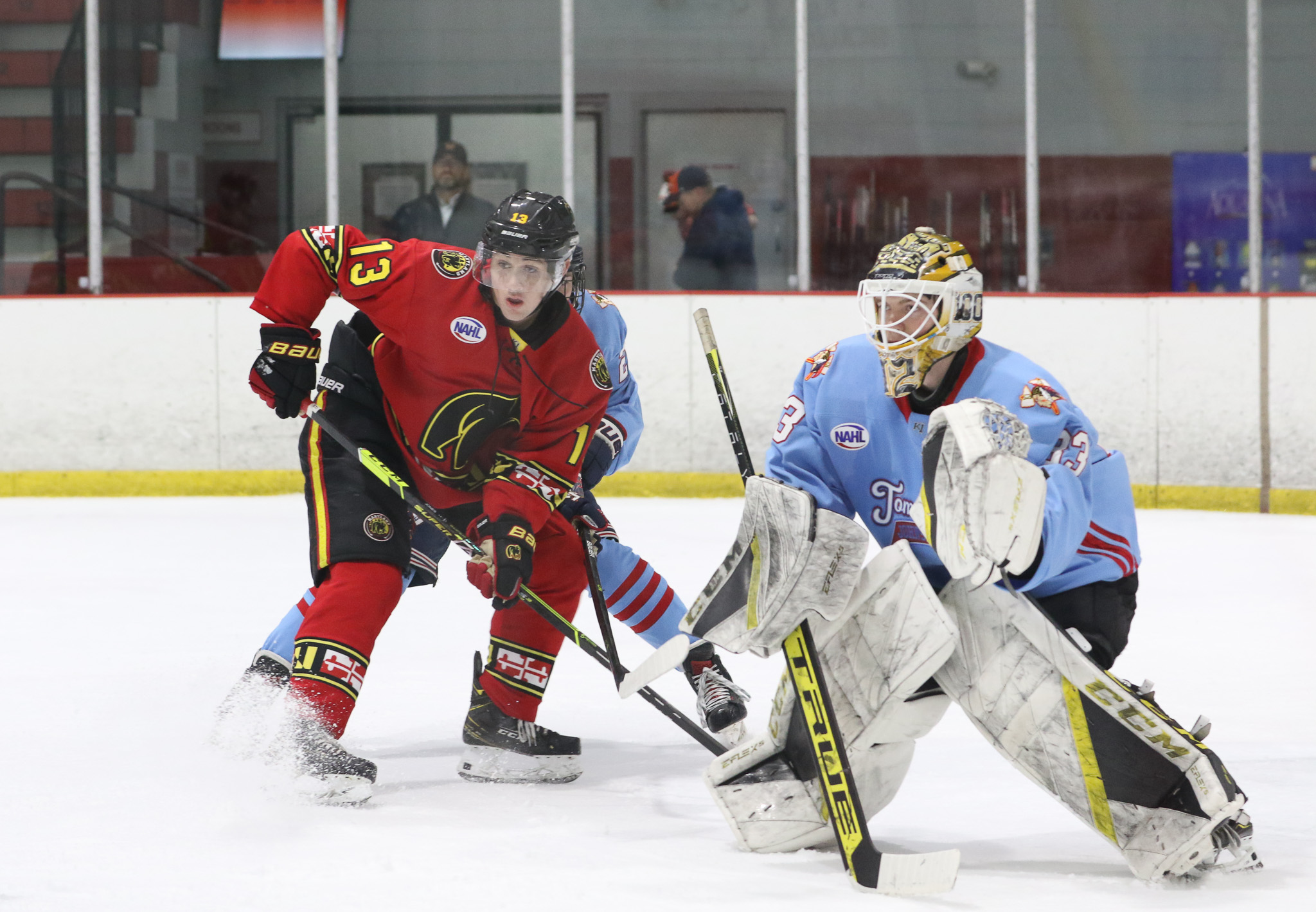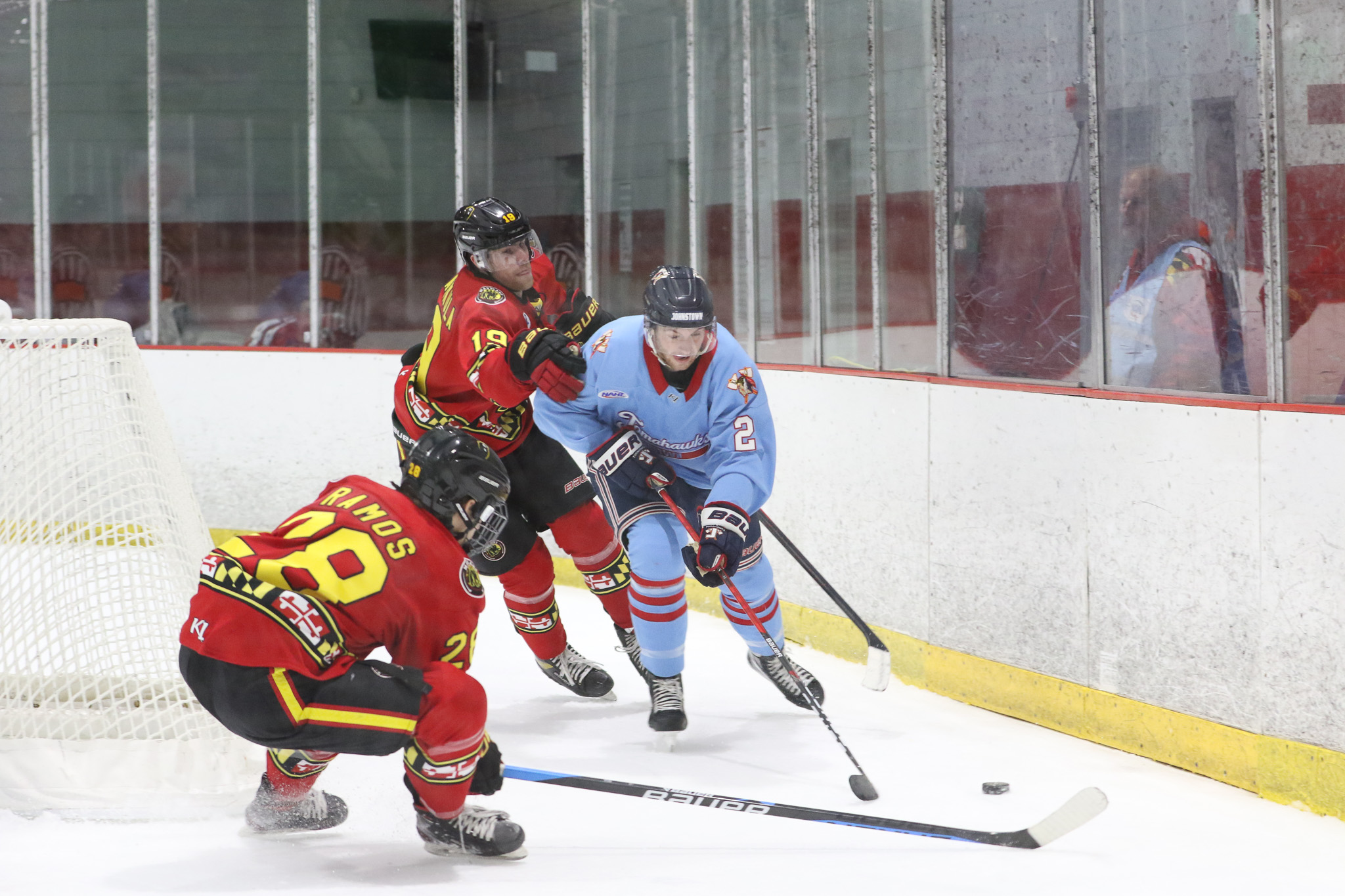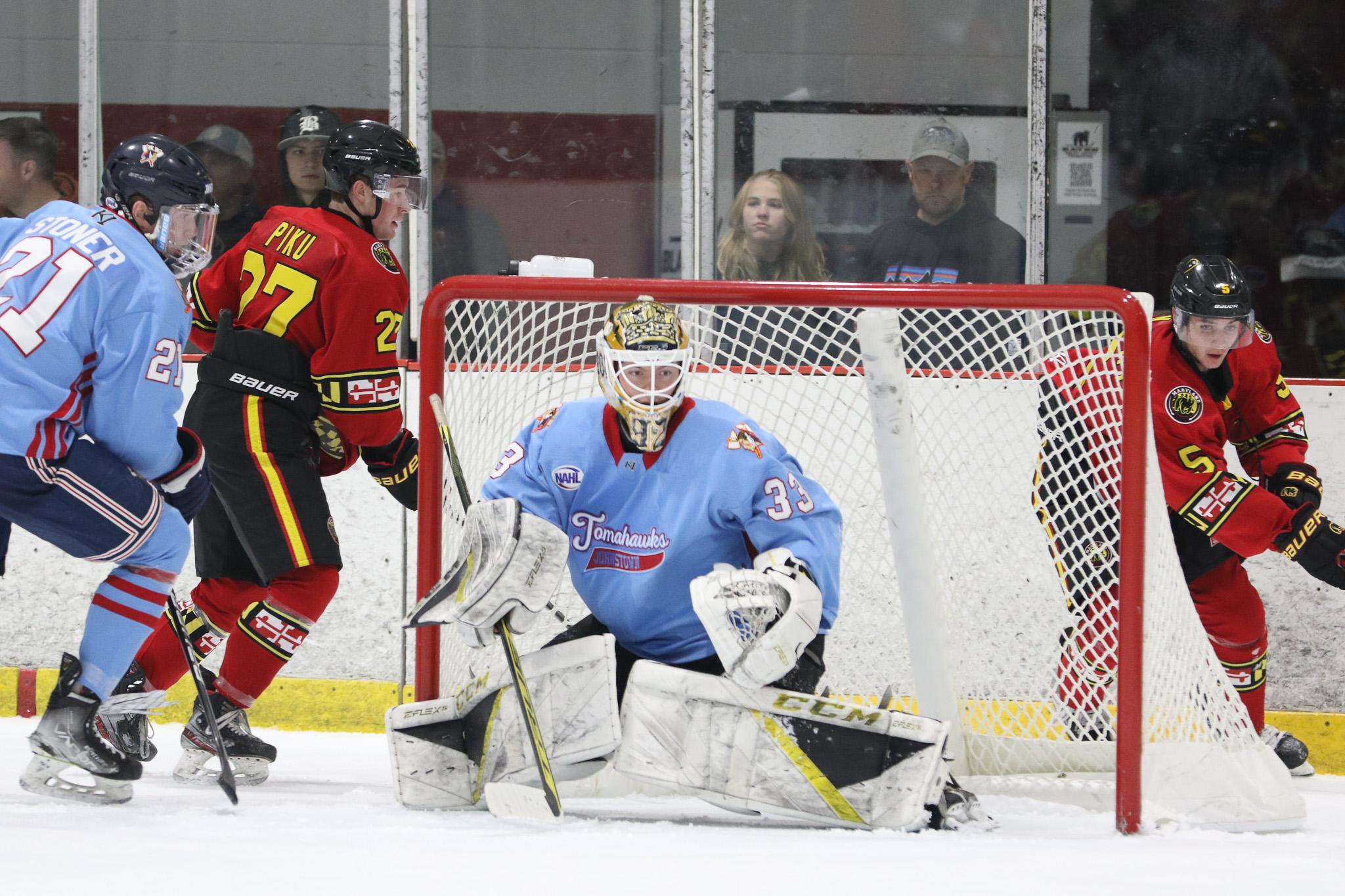 The Tomahawks attacked early in the first period as Anthony Galante scored on the power play 2:23 into the game on Saturday. Maryland responded with a goal from Sean Kilcullen 3:22 later to tie the game at one. Brayden Stannard scored a power play goal then for the Black Bears to quickly give them their first lead of the night. Galante got the equalizer for the Tomahawks on the power play again getting his second goal of the game and sixth of the season with 3:35 remaining, ending the opening period tied at 2.