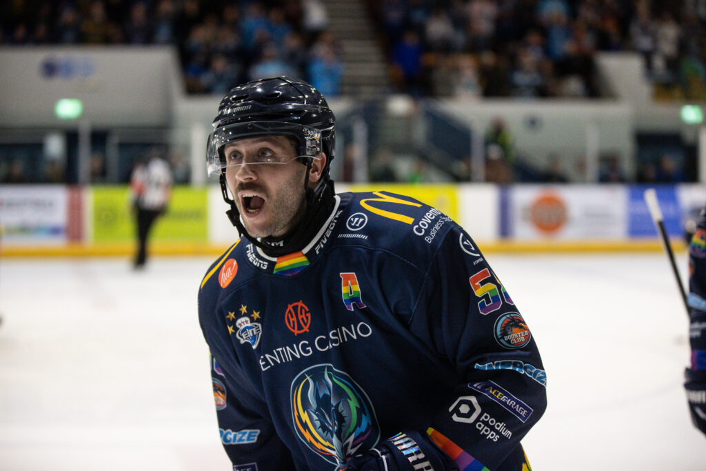 Coventry took full control in the second period. Jere Vertanen unleashed his trademark one-timer during four-on-four play early in the frame to extend the lead to 4-2, marking his impressive 12th goal of the season from the blue line. Matthew Gleason then added a fifth at 28.45, jamming home a loose puck in front, before turning provider just over two minutes later as William Boysen tipped in his pass for his second of the night and Coventry’s sixth.