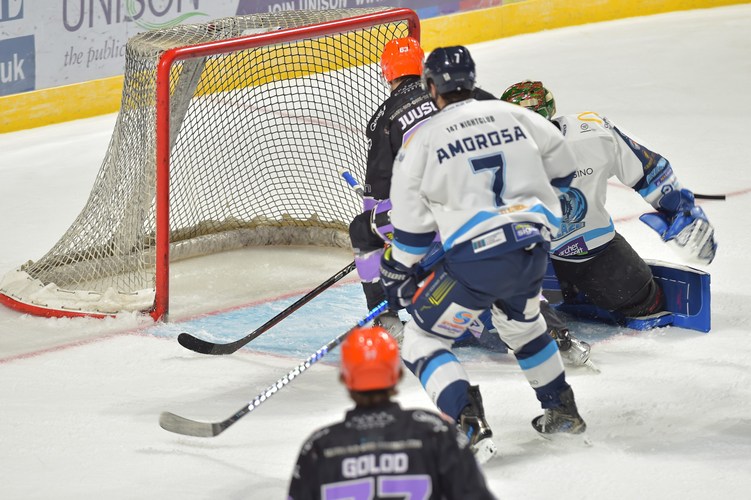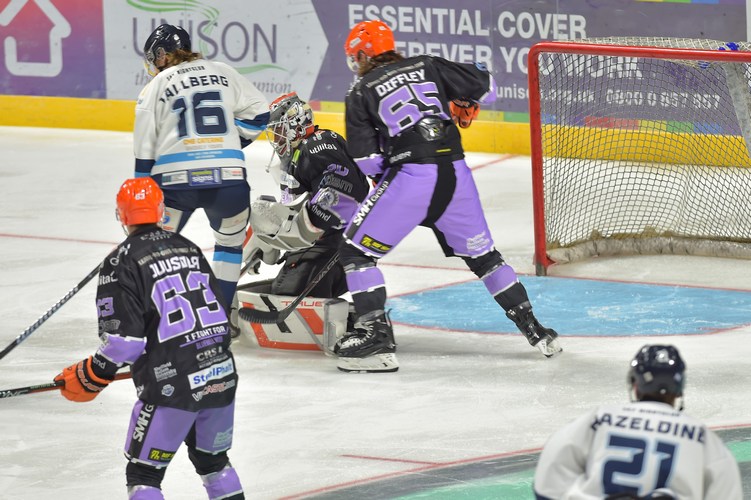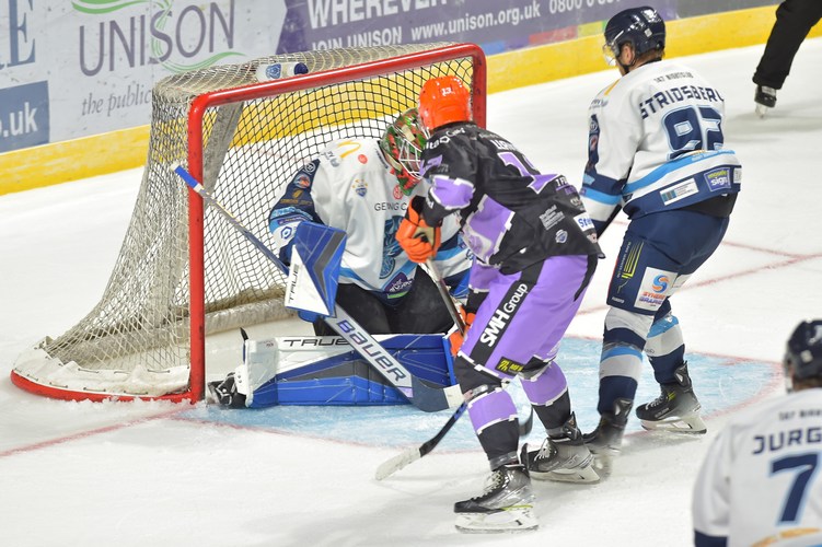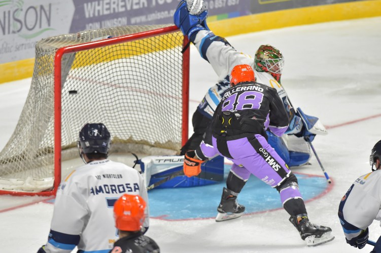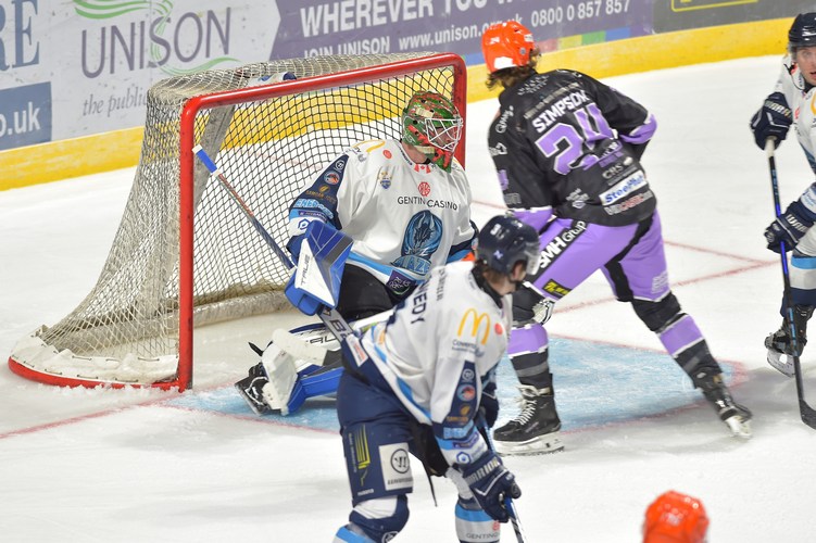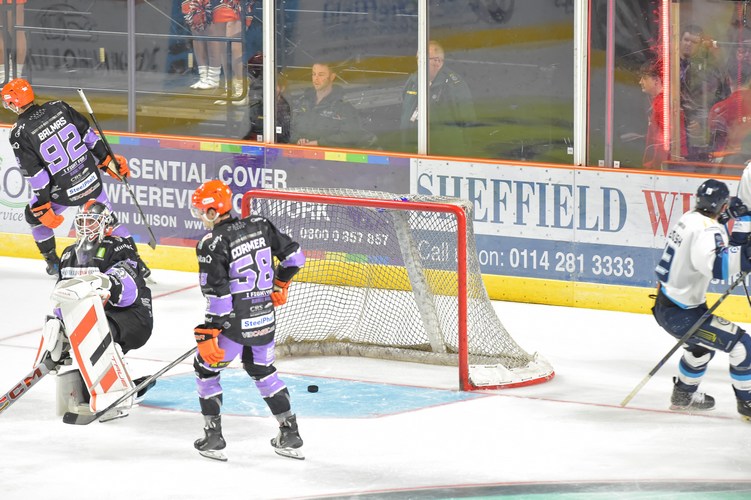 Sheffield start the first period on the front foot with a couple of close chances for Kevin Tansey and then Mark Simpson. Skating 5-on-3, Sacha Guimond put the Steelers ahead with 10:33 played with a blast on a rebound.