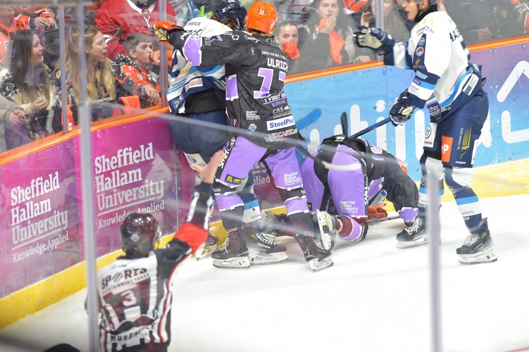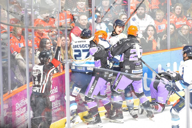 Neither side found a winner in regulation and overtime followed. The Steelers, aware that Belfast had got a point and thus secured top seeding, opted to go with the empty net in overtime with the result no longer important to them. Kim Tallberg found the empty cage from his own zone 3:18 into OT to give the Blaze a vital win.