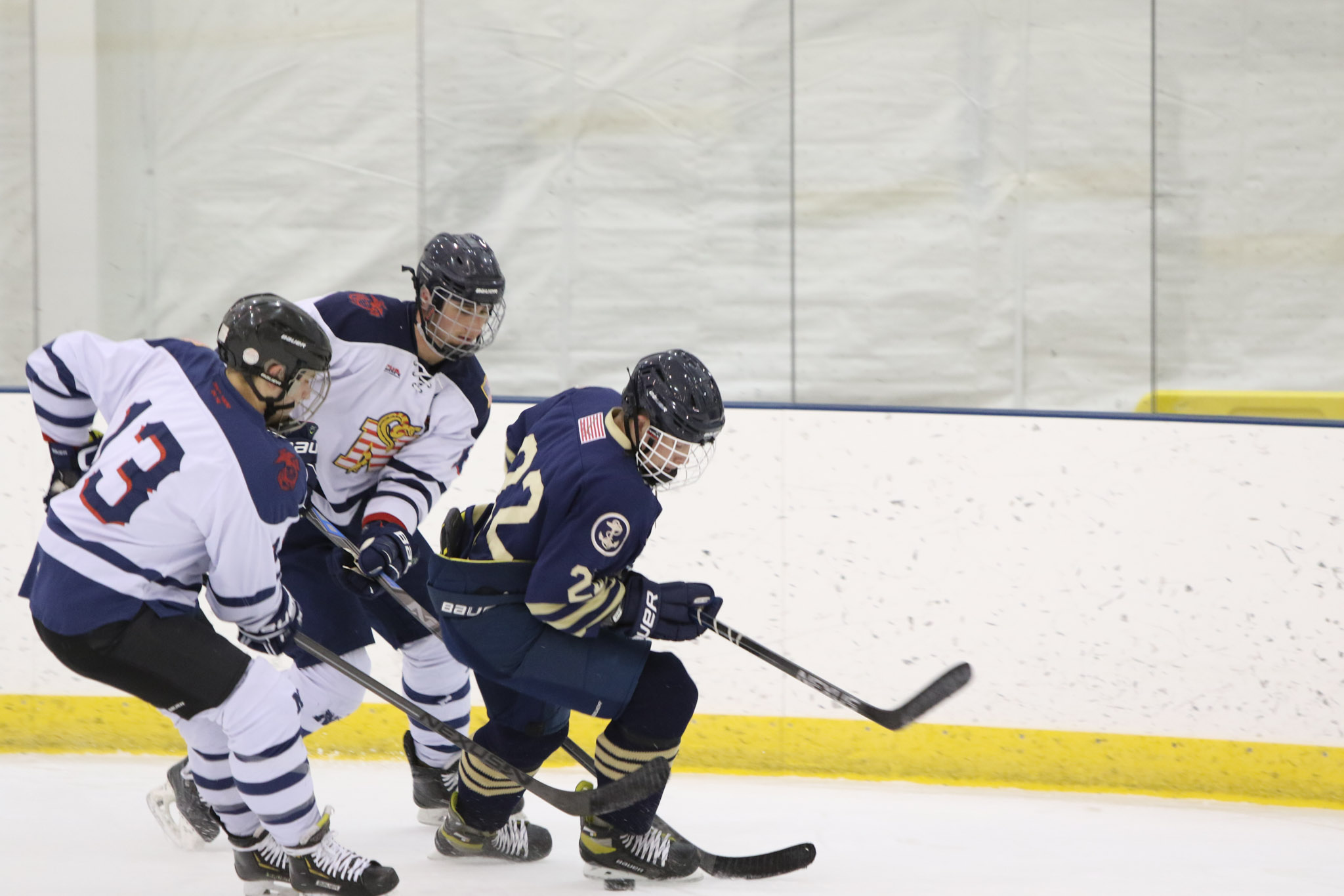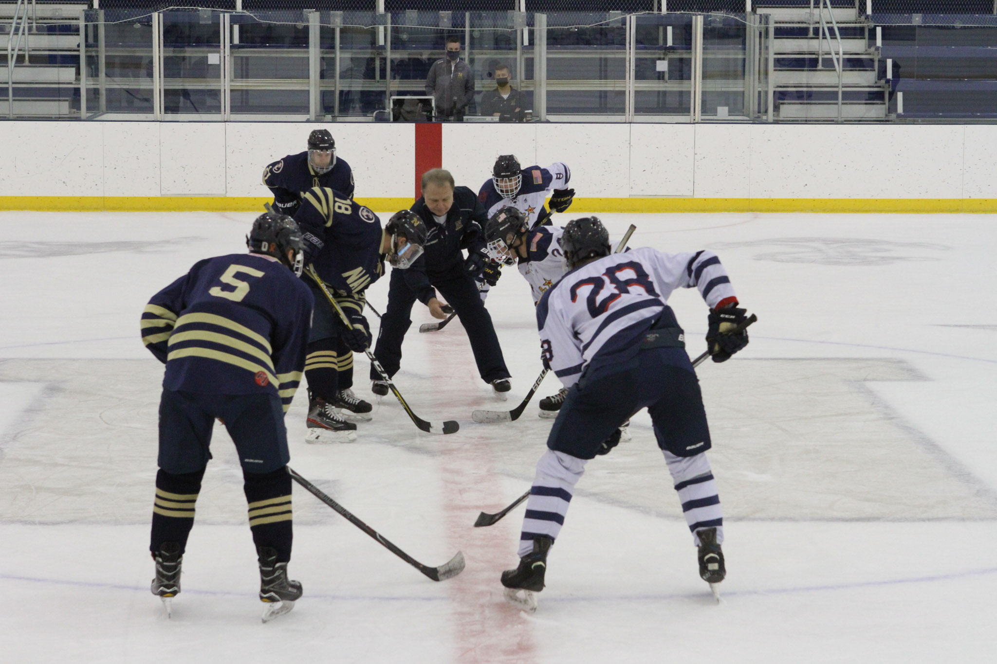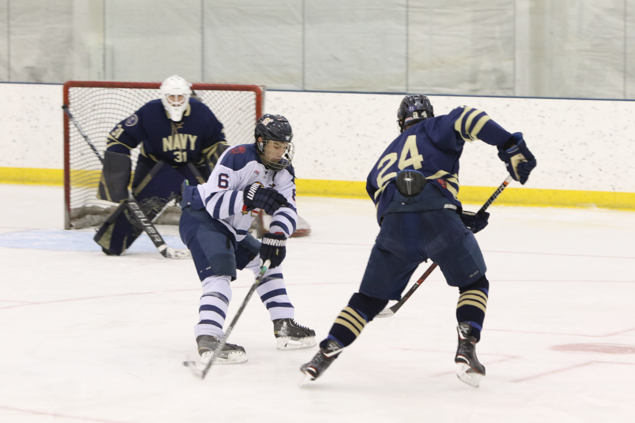 ANNAPOLIS – On Saturday afternoon at McMullen Arena at the Brigade Sports Complex, the Naval Academy’s hockey club teams had one final scrimmage. The game pitted the D1 club against the D3 club team in a spirited event.