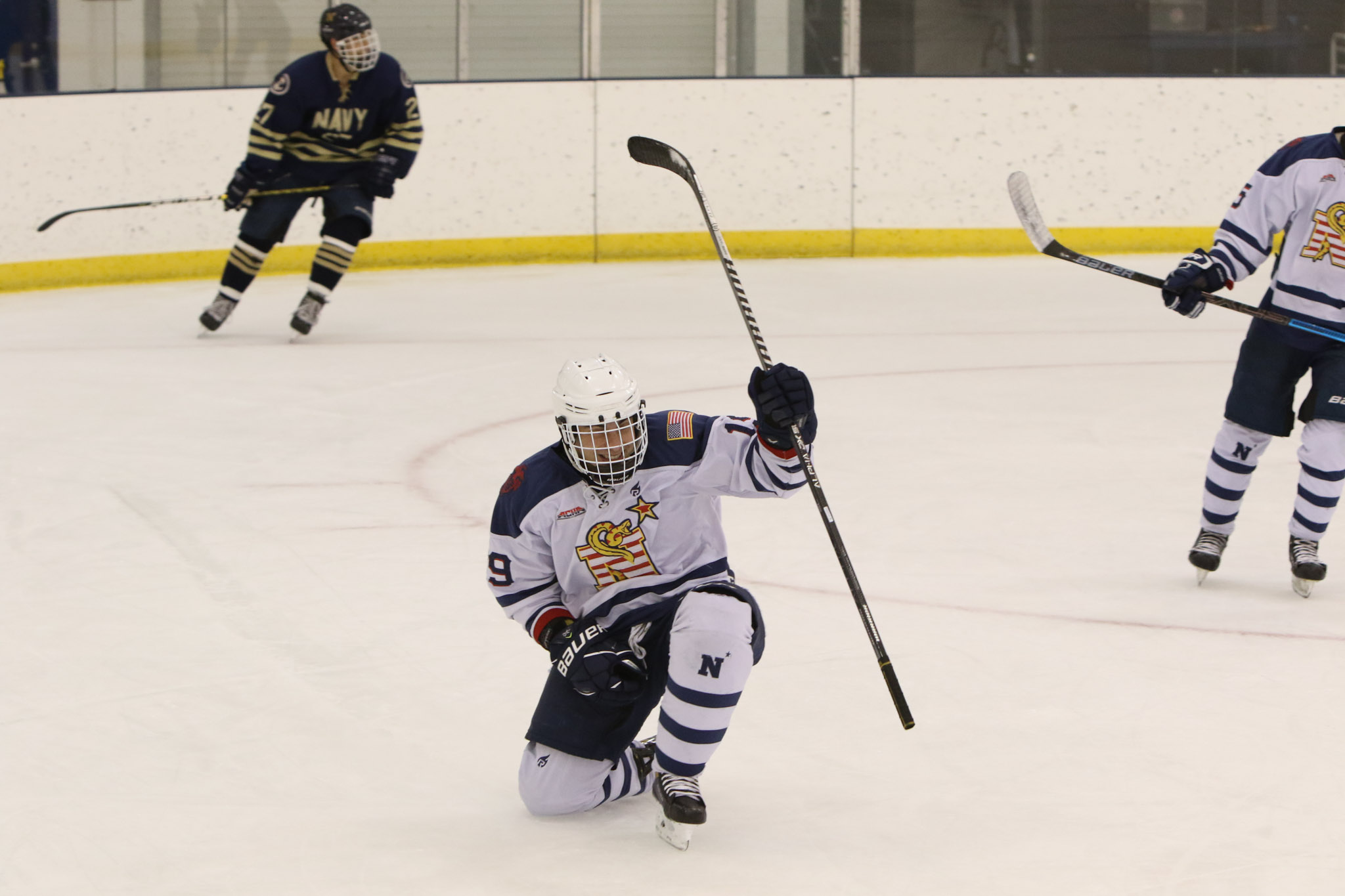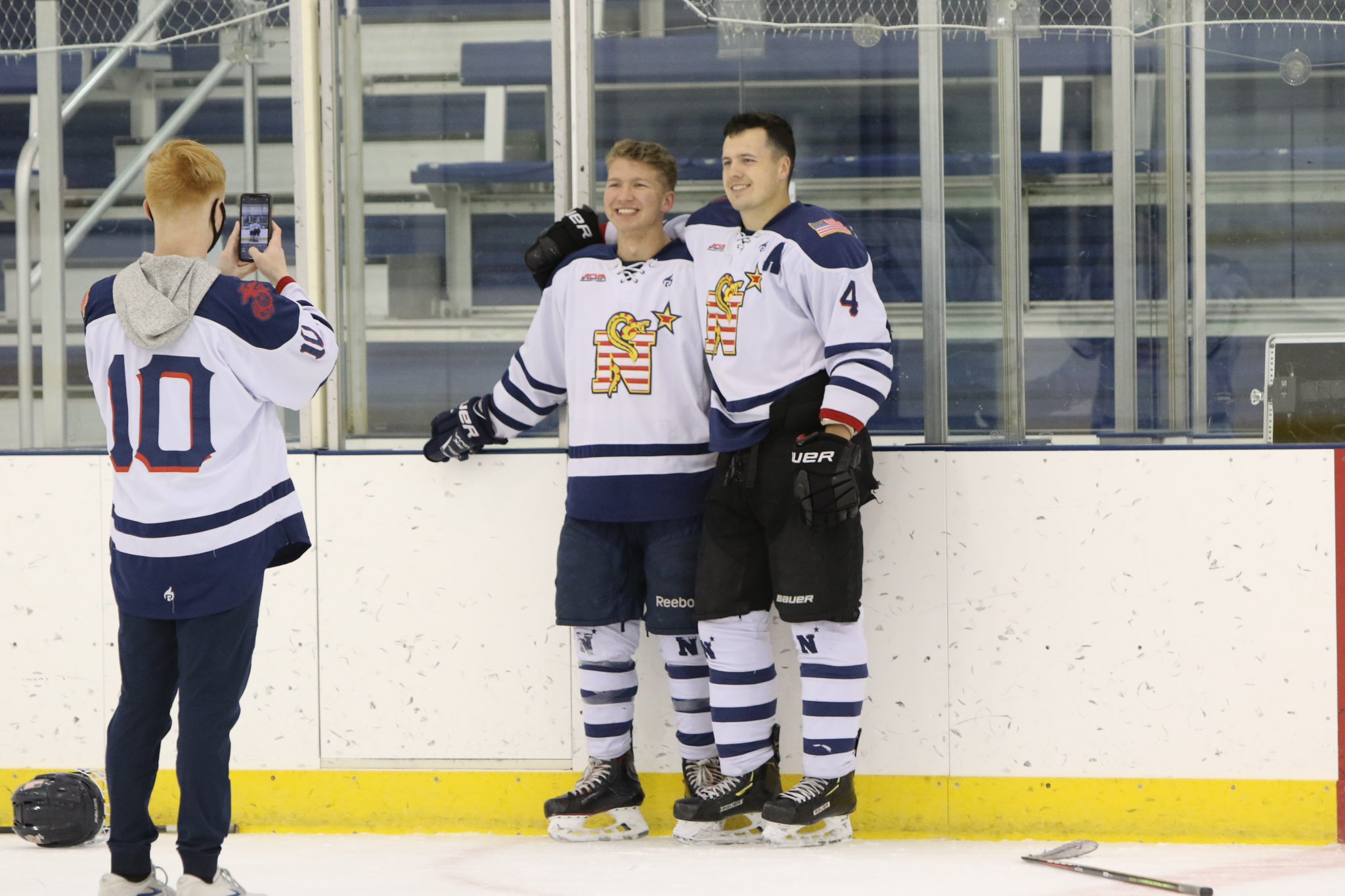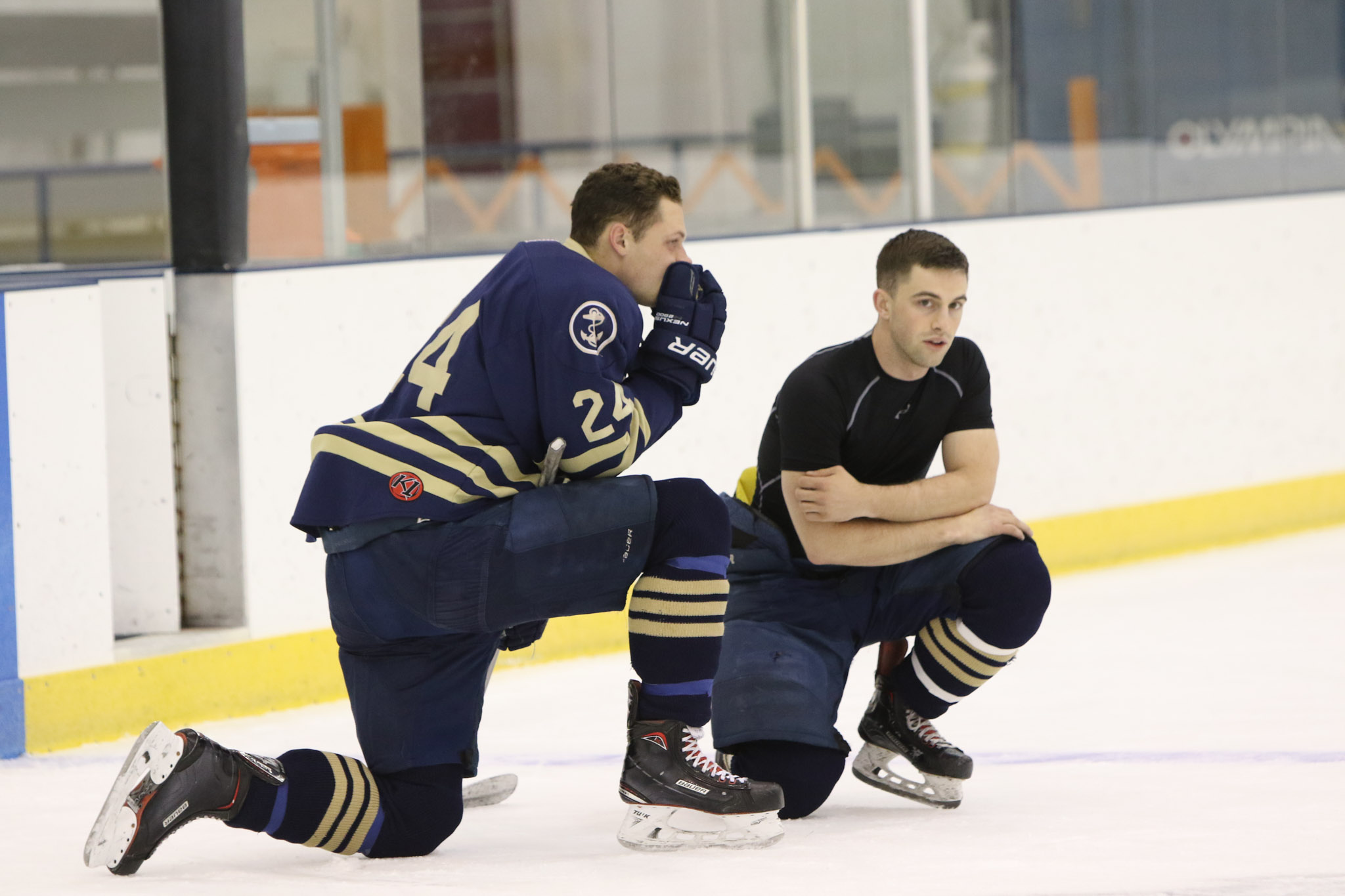 ANNAPOLIS – On Saturday afternoon at McMullen Arena at the Brigade Sports Complex, the Naval Academy’s hockey club teams had one final scrimmage. The game pitted the D1 club against the D3 club team in a spirited event.