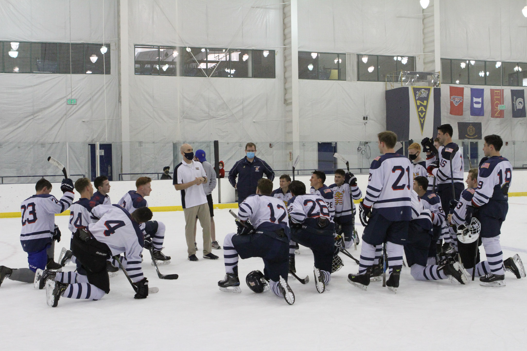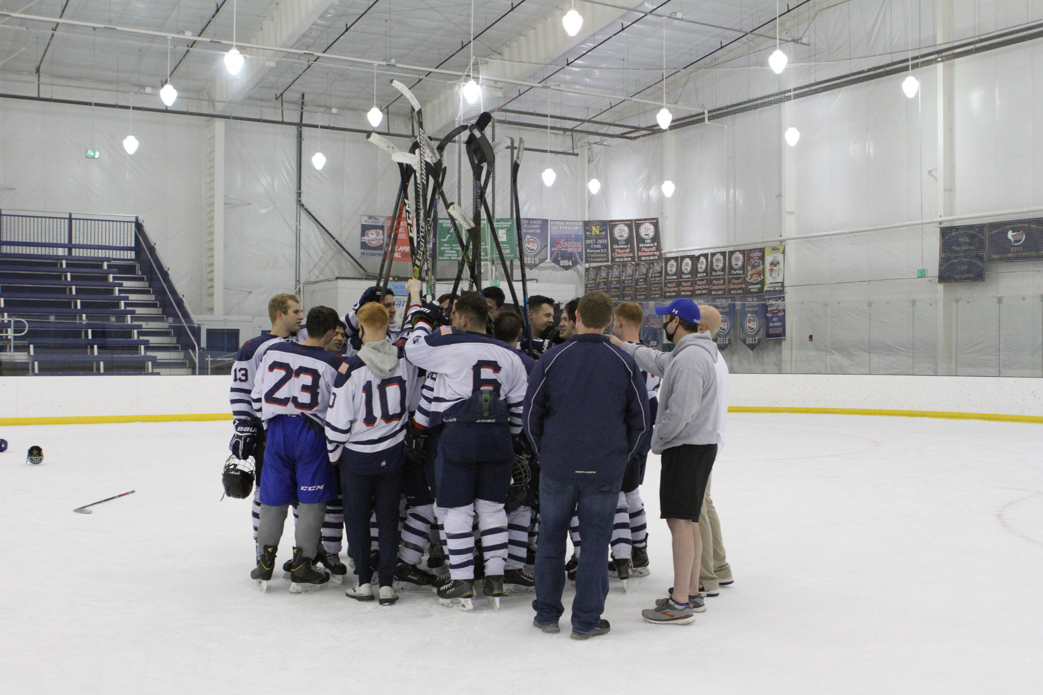 The teams were still in COVID protocols, and not allowed to use their regular locker rooms. There were no spectators allowed, which added to the bitter part, as the seniors were not able to be recognized with family and friends present. After the game had been played and team photos were taken, the D3 players remained on the ice for one last pep talk from the coaches and senior players.