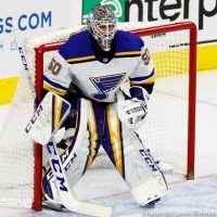 Goalie Jordan Binnington (#50) of the St Louis Blues