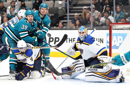 SAN JOSE, Calif. – The St. Louis Blues scored four straight goals in the second period and ended a six-game skid with a 6-3 win against the San Jose Sharks at SAP Center on Thursday.