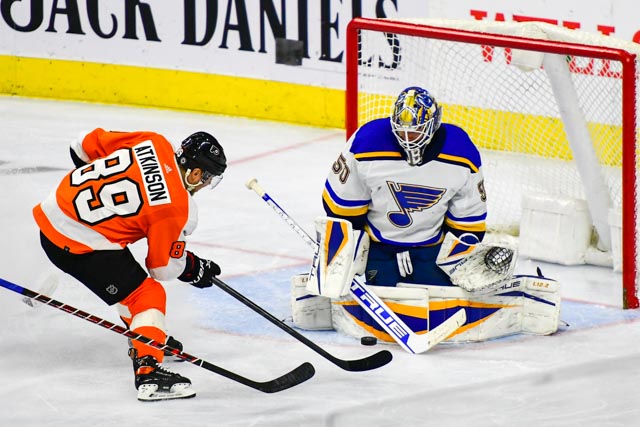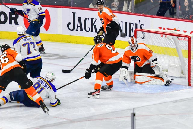 PHILADELPHIA – The St Louis Blues scored three straight goals in the third period on Tuesday night, to snap a 1-1 tie and go on to a 4-1 win over the Flyers. Jordan Binnington got his first start in six week and made 25 saves in the St Louis win.