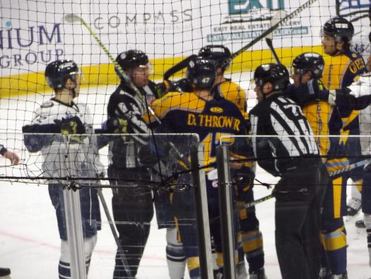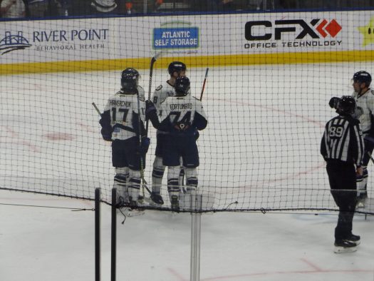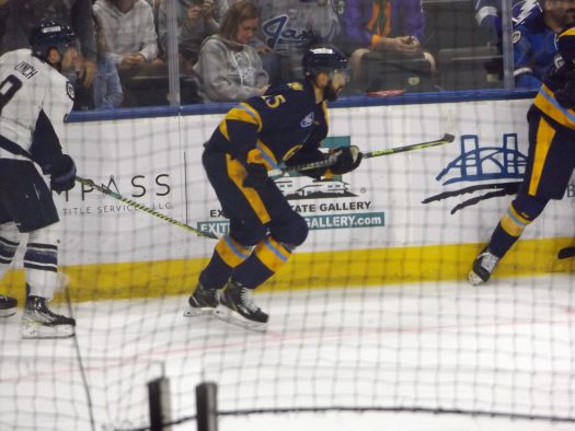 Each team had a powerplay prior to the halfway mark of the period but neither team could capitalize on the man advantage. Late in the period Atlanta pulled their goaltender and Jacksonville made them pay as forward Craig Martin corralled a pass from forward Ben Hawerchuk to take a two-goal lead.