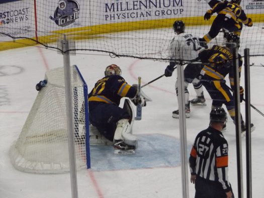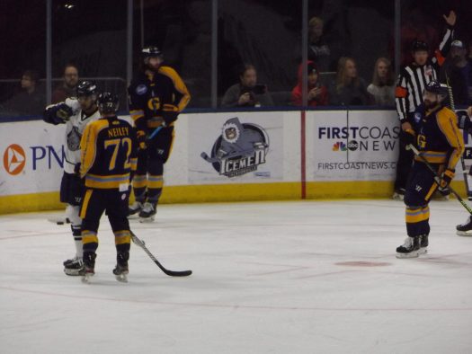 With just a second left in the game, Icemen forward Vladislav Mikhalchuk went on a breakaway and scored on a wrist shot from the slot to go up by three goals. Jacksonville won the game 4-1 while being slightly outshot 32-28.