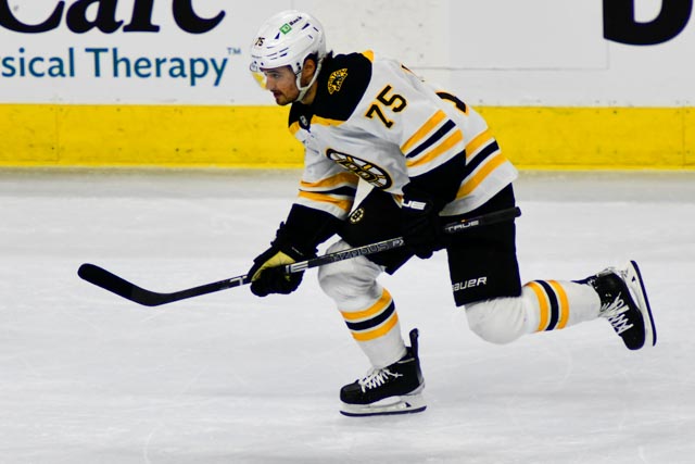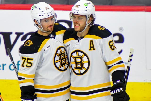 Pavel Zacha put home a shot from the high slot for the 5-3 final with three minutes left on the game clock.