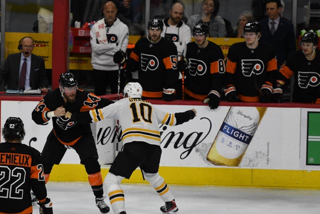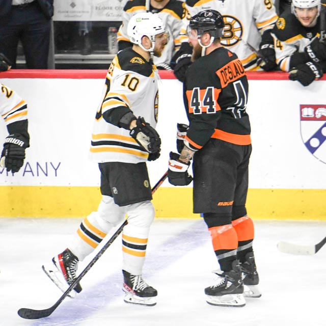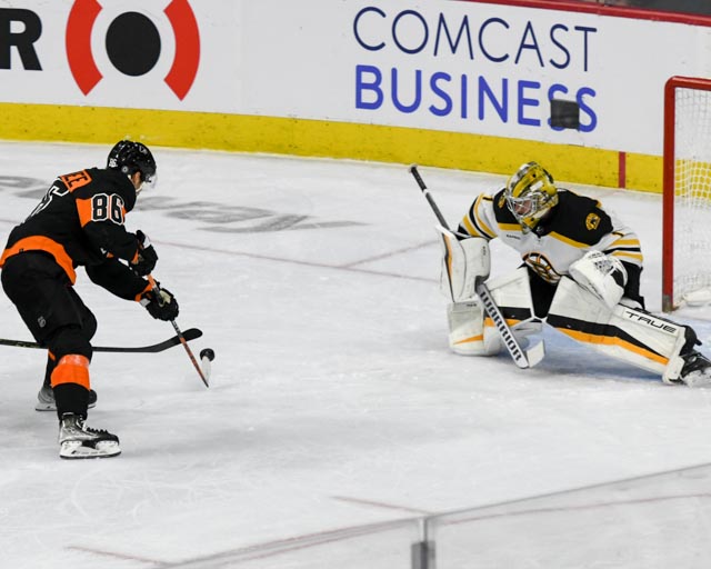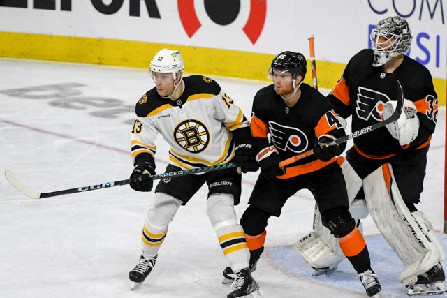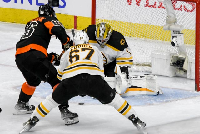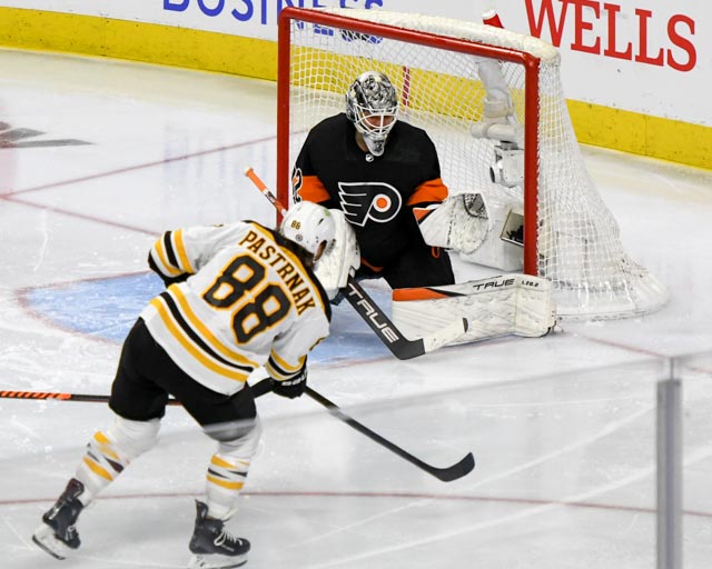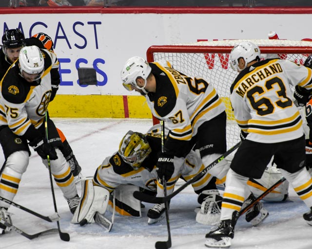 PHILADELPHIA – David Pastrnak hit for a hat trick on Sunday as the Boston Bruins set a new NHL record with their 63rd win of the season in a 5-3 decision over the Flyers. Jeremy Swayman made 34 saves to get the win.