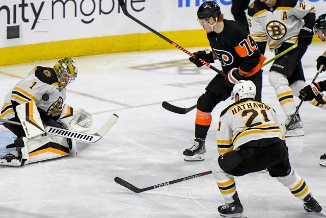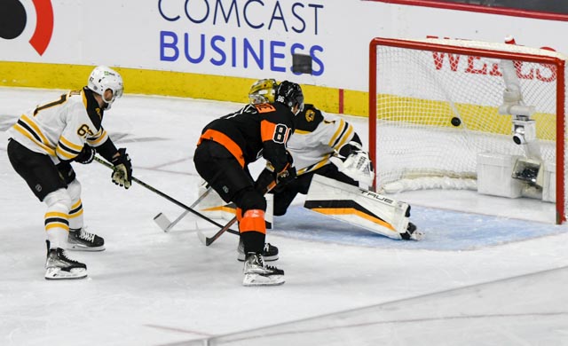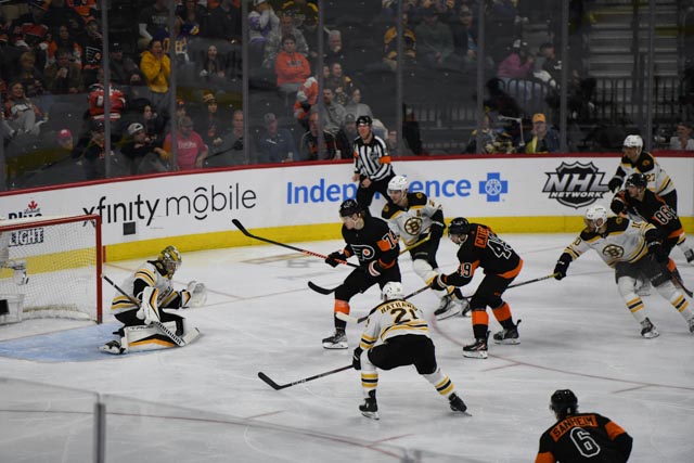 Joel Farabee scored with six minutes left in the second when the Boston defense flubbed a rest pass back to the defensive zone. Farabee picked up the puck and beat Swayman cleanly.