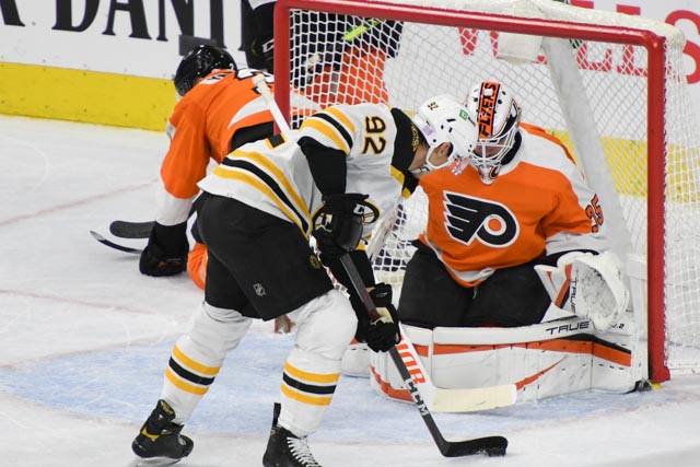 “They made some real good plays, and we got some great saves by ‘Jonesy,'” Flyers head coach Alain Vigneault said. “Unfortunately, they got that one at the end of the first and then they got one on the first shift in the second, we got a little bit unfortunate there, went off Braun’s stick. But we found a way to tie the second period, made it a game. They scored right away in the beginning of the third coming down the wing. … When you’re down by two goals to the Bruins, that’s a tough team to come back, and we weren’t able to get the job done.”
