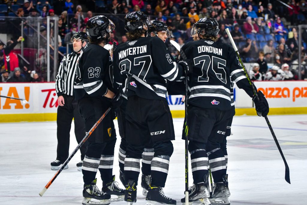 Opening the final frame, the Bulldogs found their insurance with Gavin White recording his 10th goal of the season sliding the puck passed Rosenzweig at 2:20 from the pass of Mason McTavish to give the Bulldogs a 4-1 lead. The IceDogs just wouldn’t quit however piling up 13 third period shots, the best coming from former Bulldog Liam Van Loon coming out of the penalty box and breaking through with Matteo Drobac once more keeping his former teammate off the board. As the final horn sounded on the final home game of the regular season, the Bulldogs recorded their historic 50th win of the year with Matteo Drobac turning aside 34 of 35 IceDogs shot in the victory.