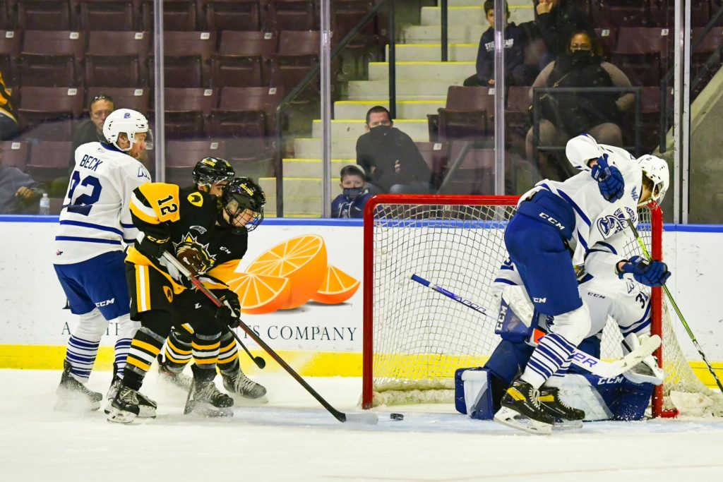 George Diaco would appear to put the Hamilton Bulldogs up 5-1 in the third after a spectacular Marco Costantini save but the goal would be taken away for offside. Mississauga would make things interesting late, at 15:16 Ethan Del Mastro would tip a Luke Visa pass past Costantini but that’s as close as they would get. Thanks to 43 Marco Costantini saves the Bulldogs would win a determined effort by a 4-2 final.