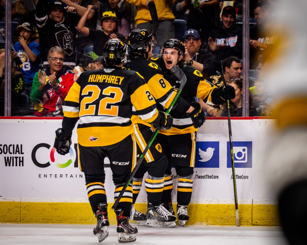 Starting off the opening frame strong the Bulldogs struck first in the Conference Final off a back-door goal for his 4th of the playoffs with Colton Kammerer stepping down from the right point and feeding Avery Hayes who found Humphrey all by his lonesome at 1:15. Looking to get even the Battalion looked to go backdoor on Marco Costantini who came up big finding the puck while laying on his stomach, stealing what looked like a sure goal from Brandon Coe to keep the Bulldogs ahead. The Troops took full advantage of their first power-play of the series with Brandon Coe walking in from the blue line on the left wing and squeezing a shot past Costantini to tie the game 1-1 at 17:50. Answering right back with the Bulldogs on a power-play of their own Nathan Staios moved the puck to Logan Morrison on the left who saw an open Hayes below the goal-line, his no look pass to Mason McTavish connected for the initial shot and Ryan Winterton, stationed the doorstep, picked up the loose puck to put the Bulldogs up 2-1 at 19:12 and to send the Bulldogs down the tunnel with the lead.